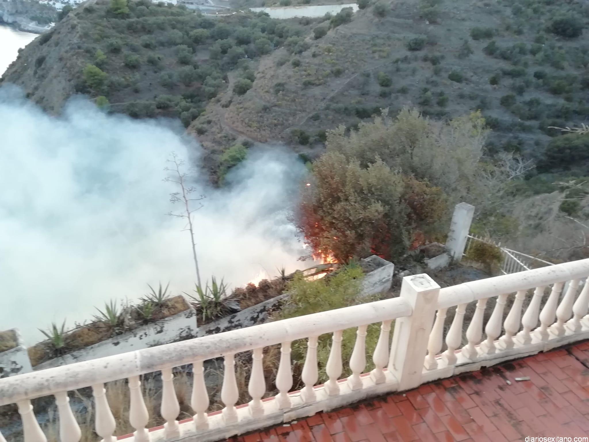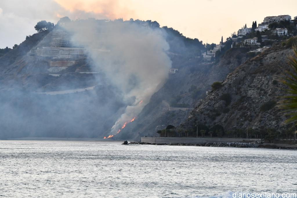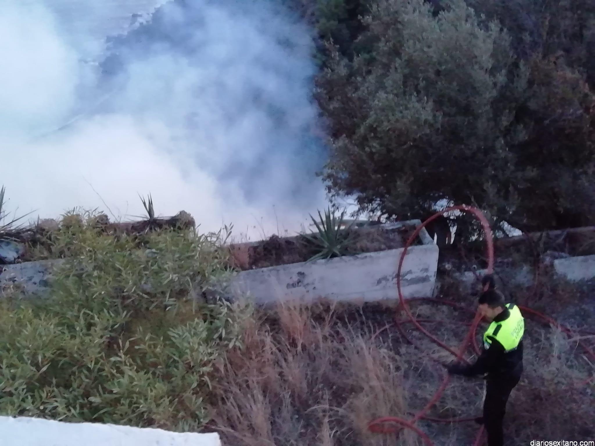 Los Bomberos de Almuñécar, junto a Policía Local y Guardia Civil se afanan por controlar un incendio de monte bajo que se ha originado antes de las 18 horas en la zona de la playa El Muerto, situada cerca de la urbanización Cotobro, entre Almuñécar y La Herradura, en el municipio sexitano y por causas que se desconocen.