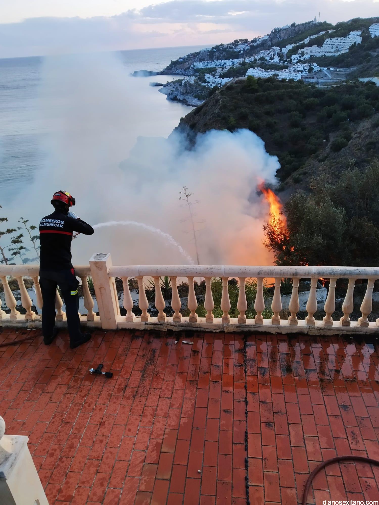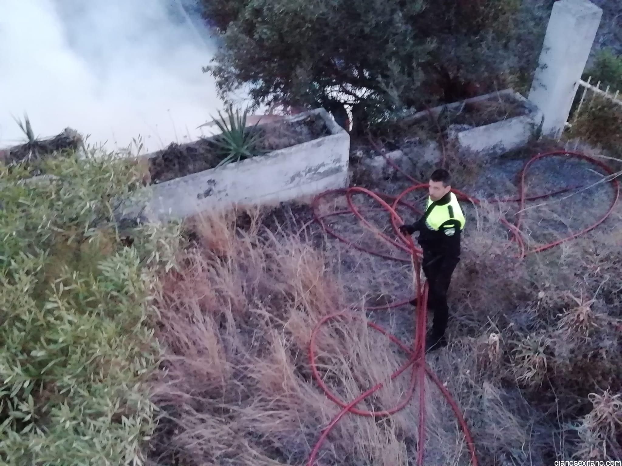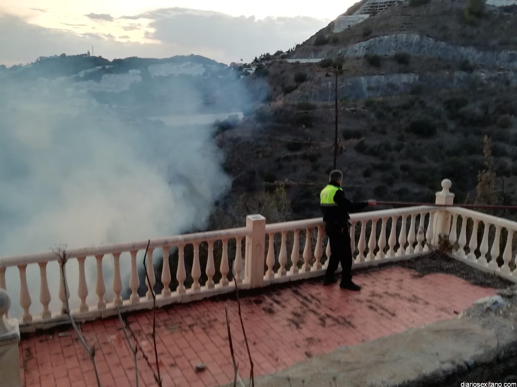 Los Bomberos de Almuñécar, junto a Policía Local y Guardia Civil se afanan por controlar un incendio de monte bajo que se ha originado antes de las 18 horas en la zona de la playa El Muerto, situada cerca de la urbanización Cotobro, entre Almuñécar y La Herradura, en el municipio sexitano y por causas que se desconocen.
