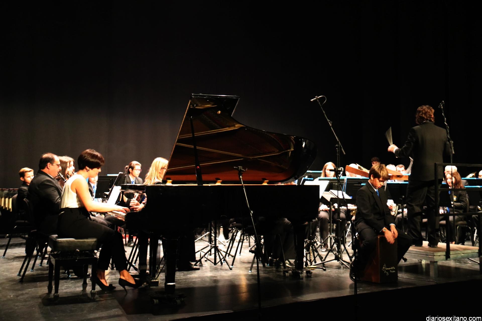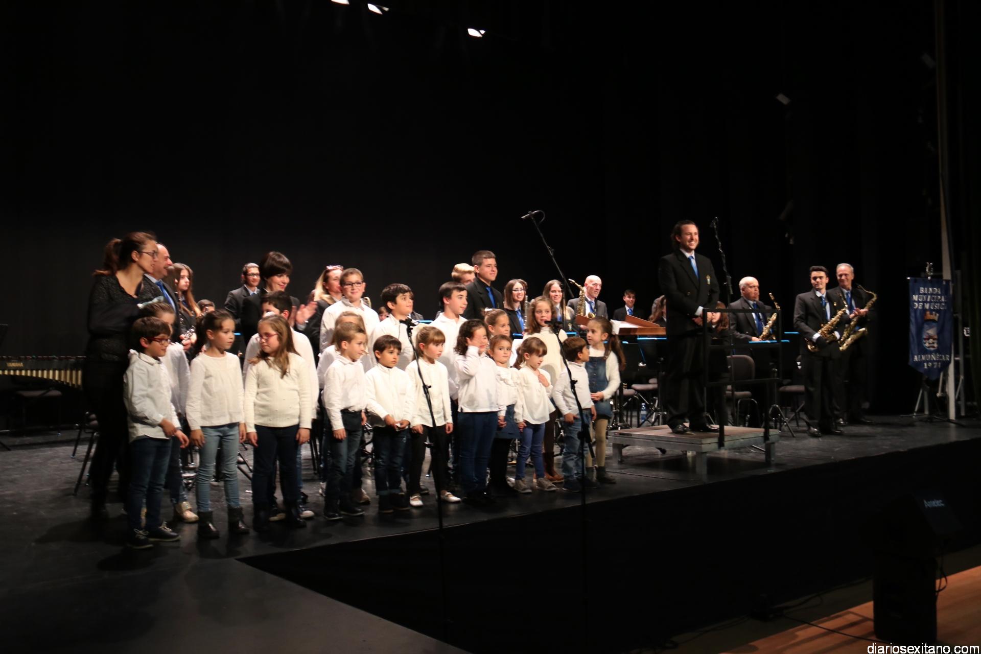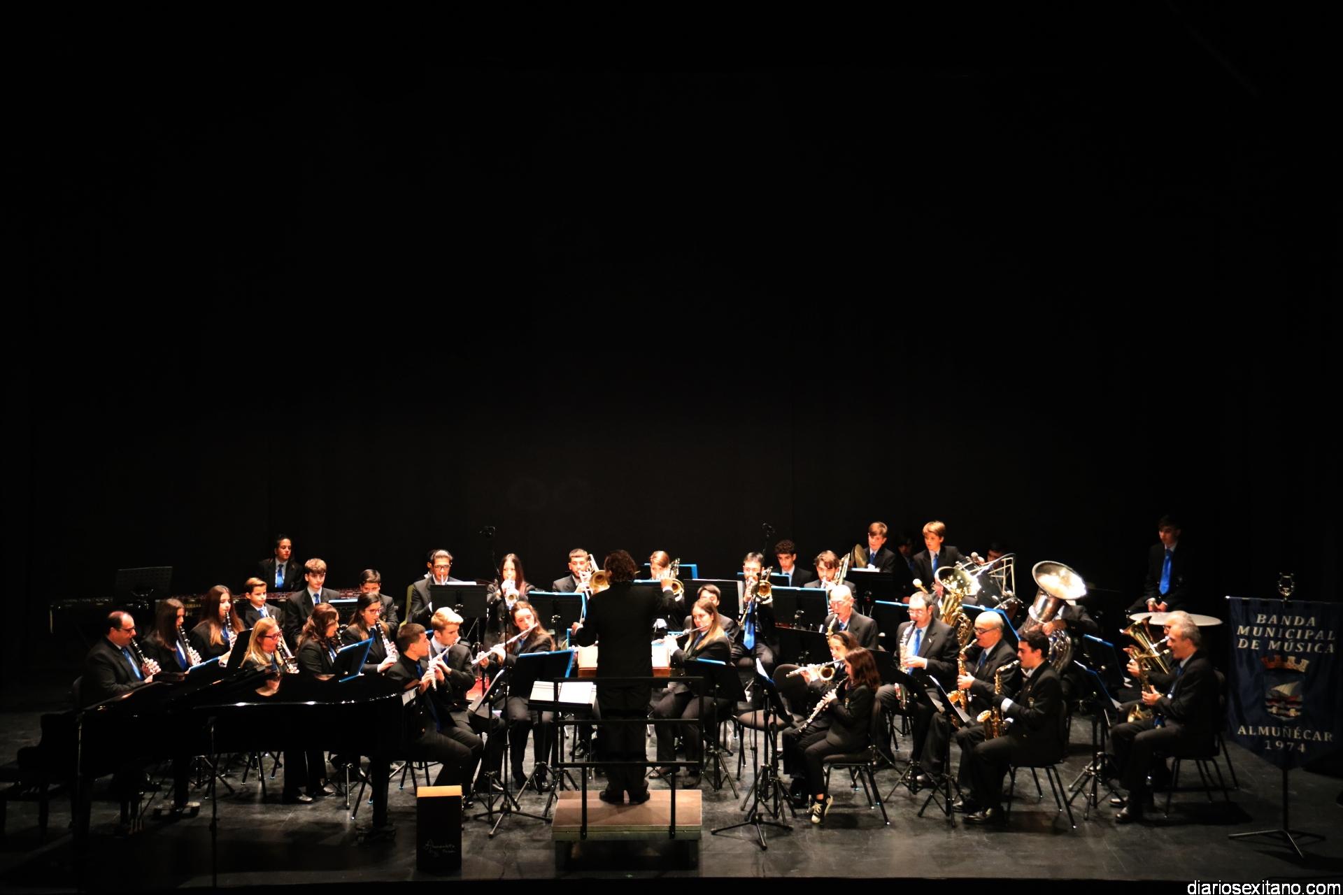 Para este concierto la Banda Municipal, bajo la dirección de David Pino Campos, ofreció un programa selecto de media docena de composiciones que arrancó con el “Pasodoble del Graná y con arte”, de Aniceto Giner, para seguir con la “Orobroy” , de Dorantes con arreglos de J. María Gómez, en un guiño al flamenco contando para ello con una gran interpretación de la pianista, Paloma Herrero Ocaña, y el joven Curro Joyas Castillo, en la caja. La tercera obra interpretada en el concierto tuvo otro momento especial al contar con el Coro de la Escuela Municipal de Música de Almuñécar interpretando “La escala Sido”, de Ferrer Ferrán. Para ello los pequeños estuvieron dirigidos por sus profesoras: Sole Aguado y Paloma Herrero.