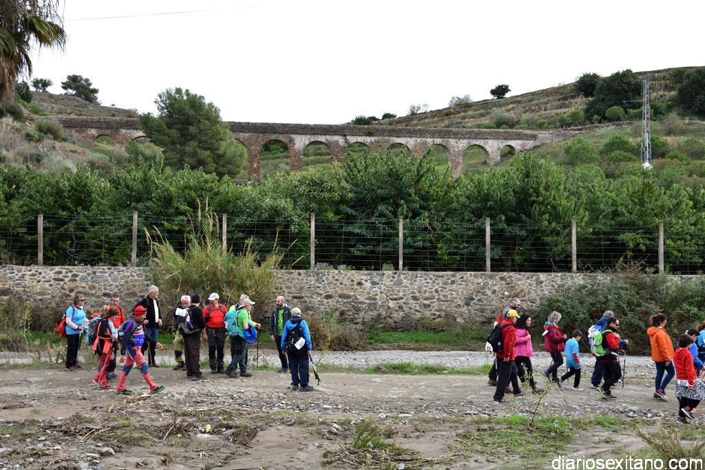 Después de “recargar pilas” el grupo puso rumbo por El Zahonado y tras cruzar el Río Verde, tomó la Rambla de Torrecuevas, donde realizaron el segundo control de avituallamiento. A su entrada conocieron y disfrutaron del Acueducto Romano, posteriormente, y tras cruzar por el camino que va a Peña Escrita se desviaron por Río Seco para llegar al centro de Almuñécar, pasear por las calles y alcanzar al estadio municipal de deportes “Francisco Bonet”. Donde estaba previsto el final de la prueba, comida y clausura con entrega de trofeos.