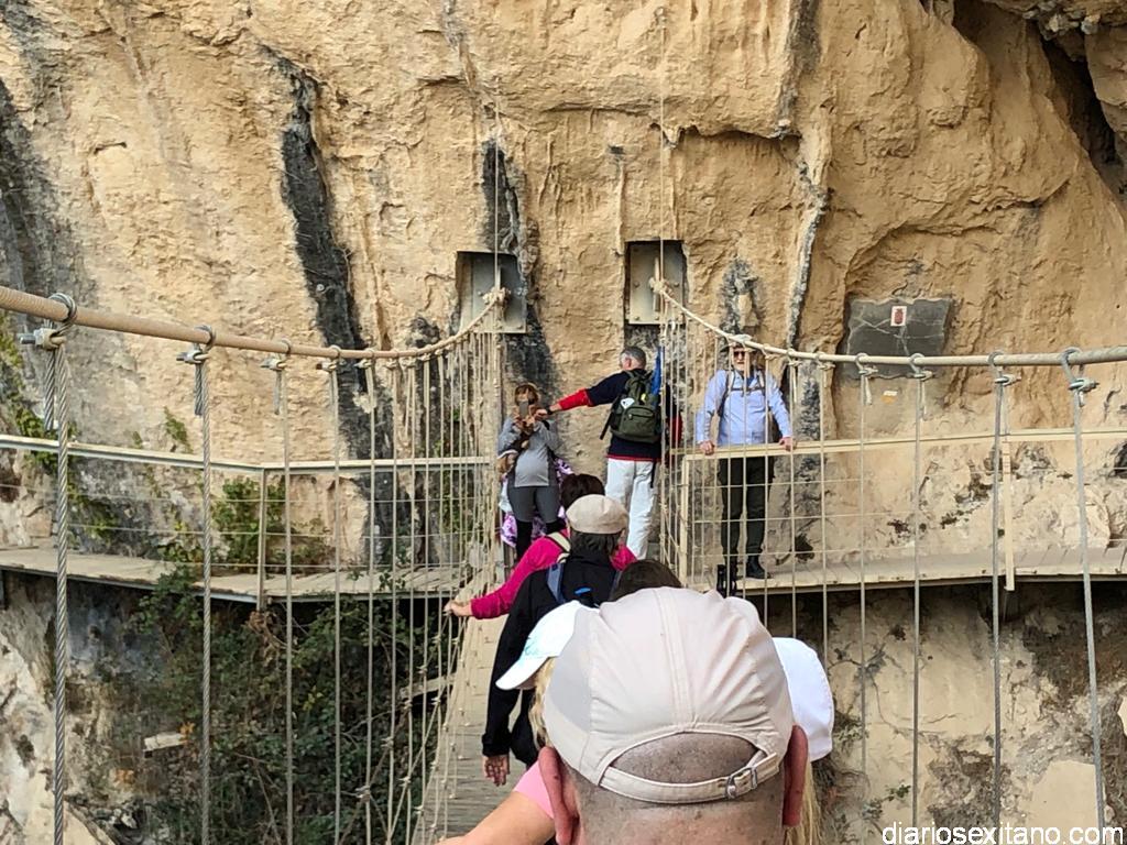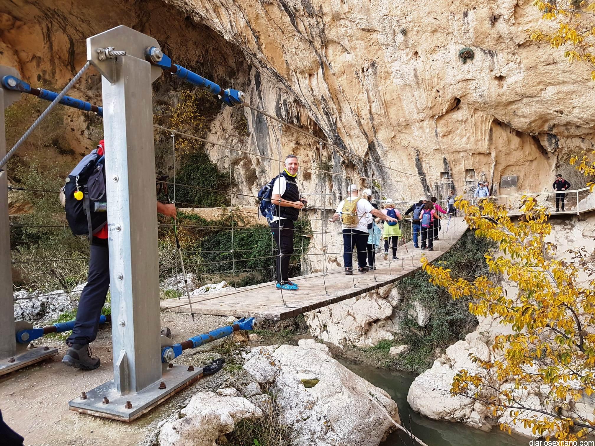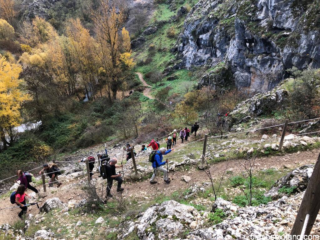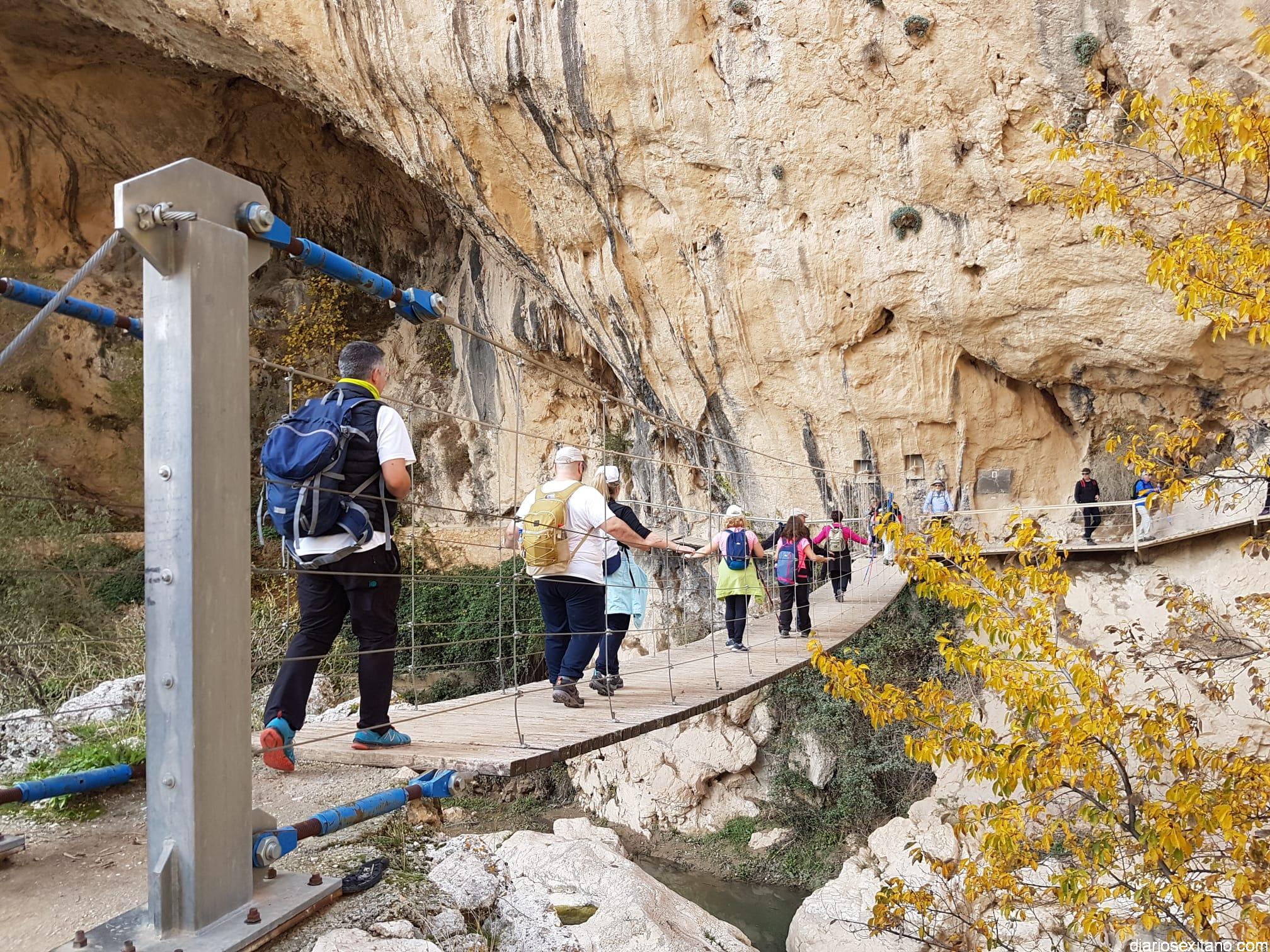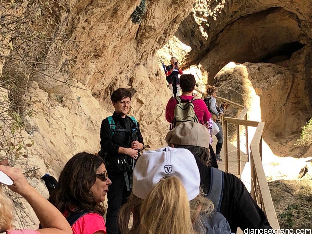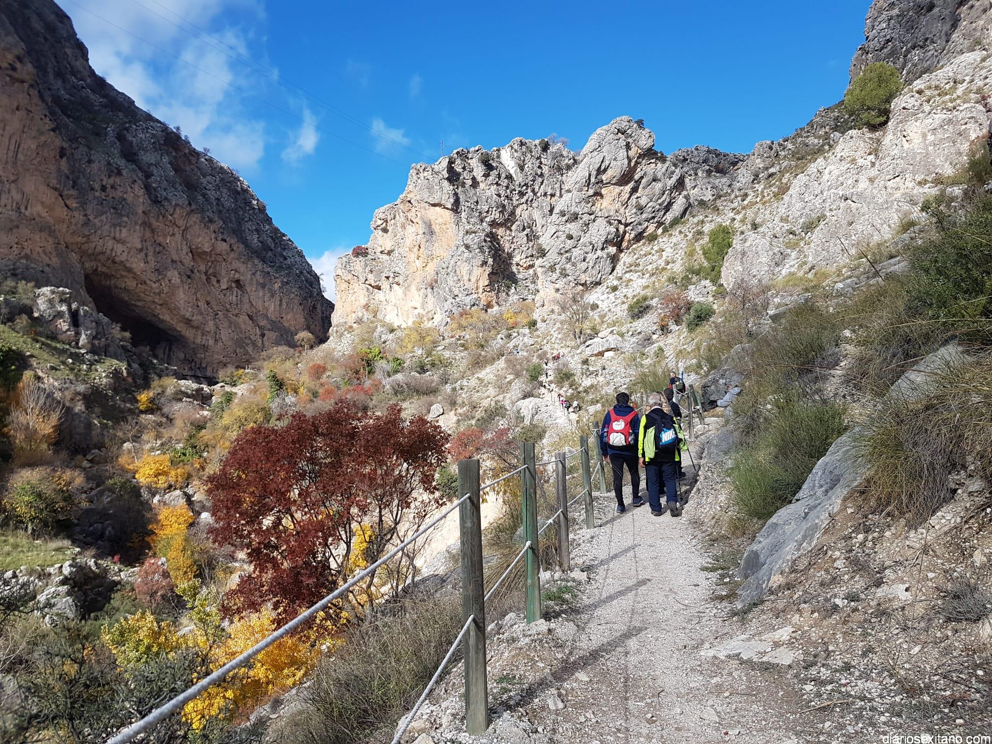 Los participantes, bajo la coordinación guía de Javier del Castillo y Rubén García, disfrutaron de los coloridos otoñales y los suelos alfombrados de hojas. No faltó la visita al Castillo-Alcazaba o al Cristo del Paño. A continuación los senderistas cruzaron el río Velillos y antes de alcanzar Olivares pasar por el sendero colgante para ver pinturas rupestres.