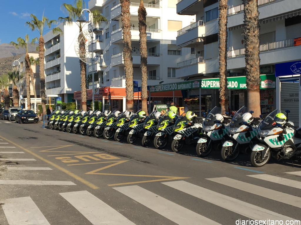 Medio centenar de agentes de la Benemérita, que están realizando un curso como motoristas en la Escuela de Tráfico de la Guardia Civil de Mérida (Badajoz), han hecho esta mañana una parada en La Herradura, dentro del proceso de formación que están manteniendo por las carreteras andaluzas.