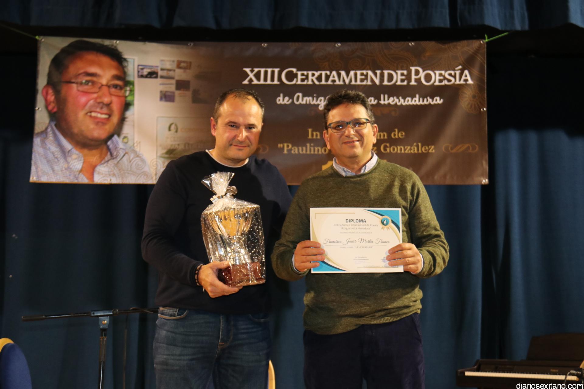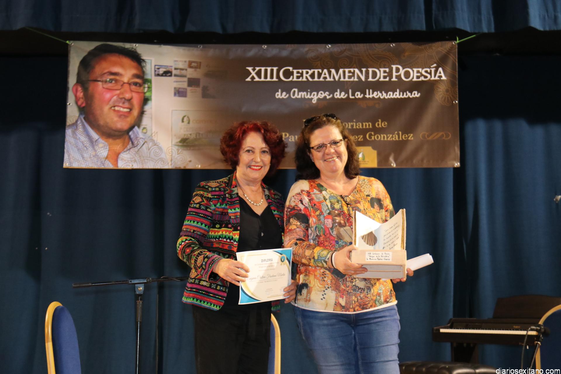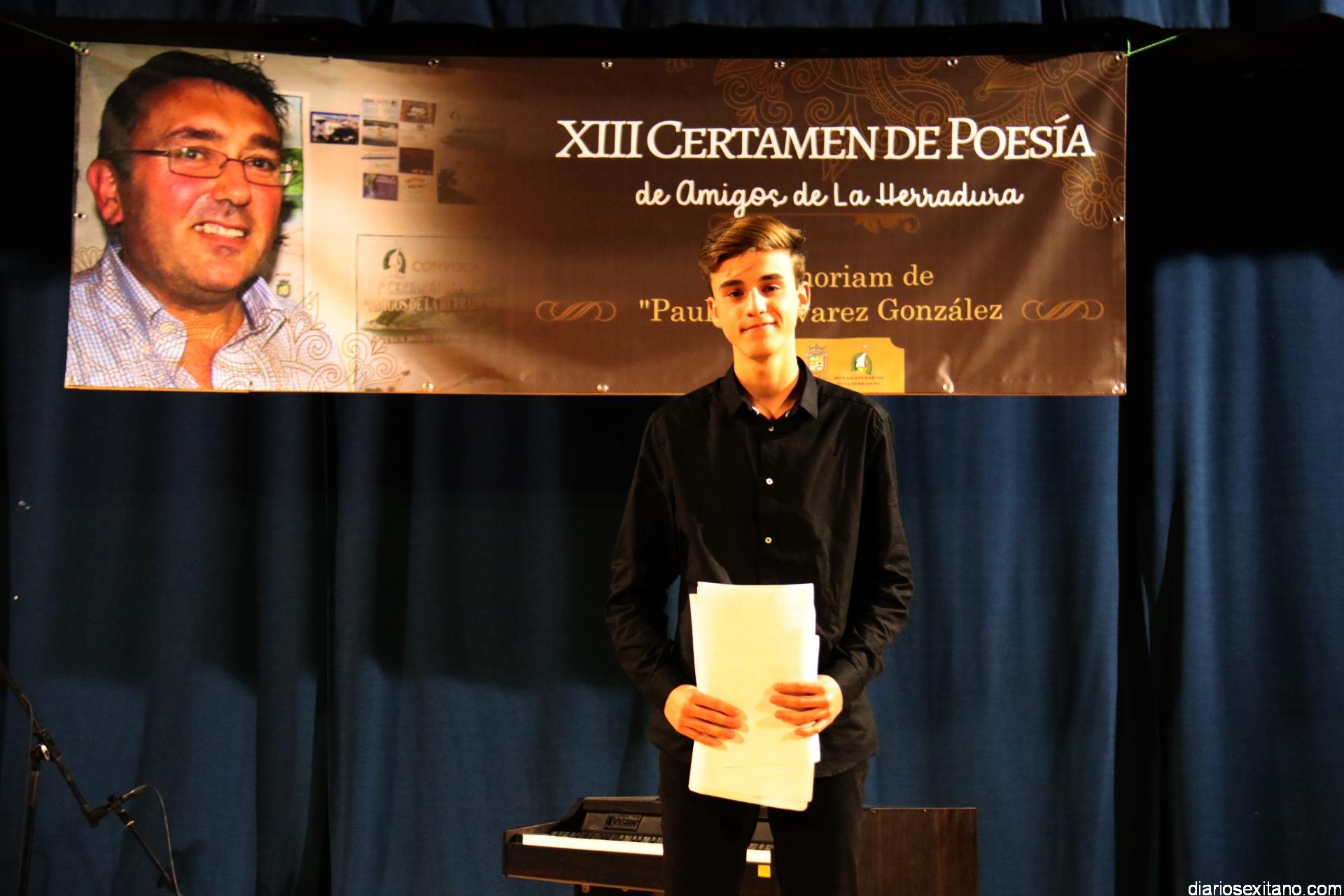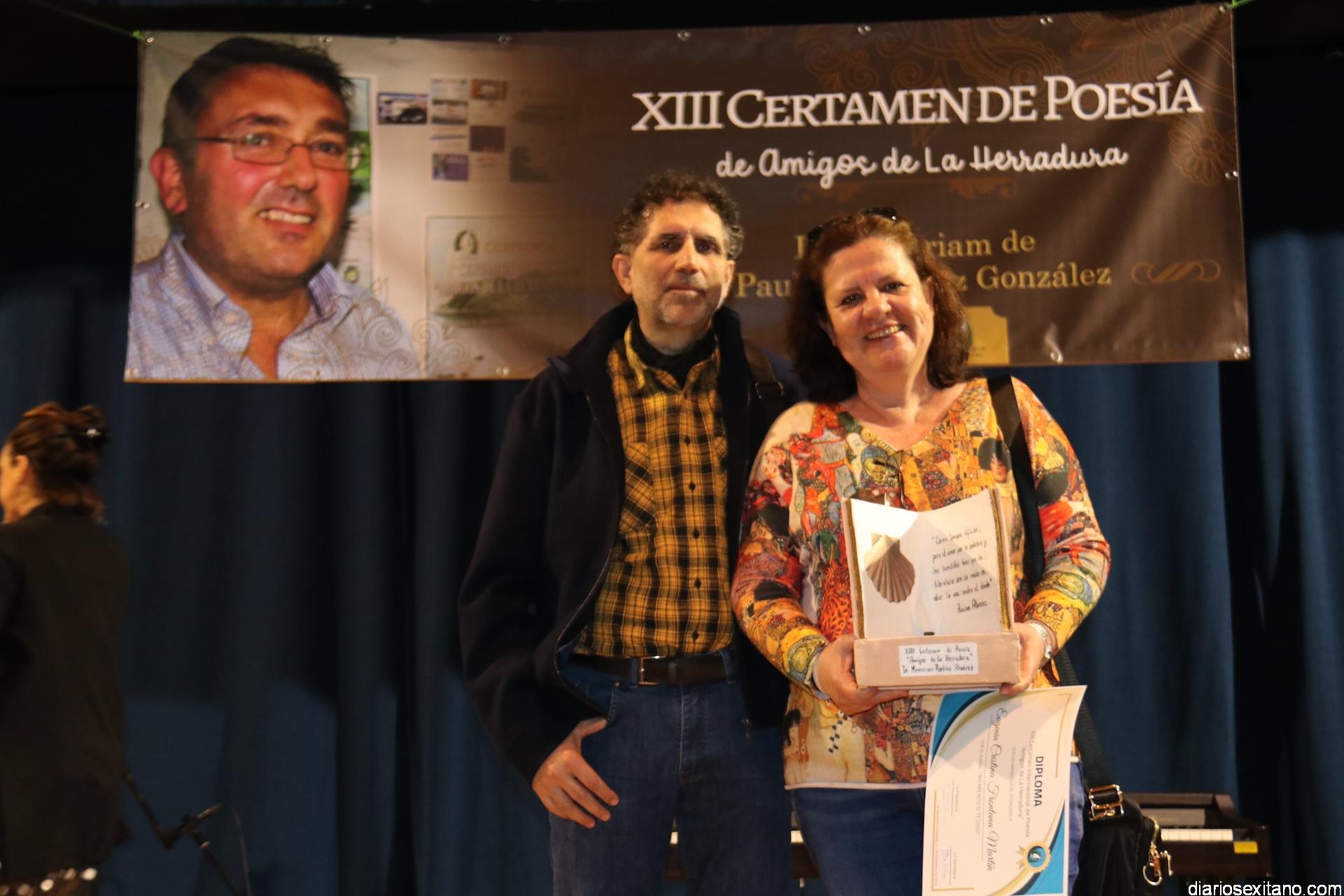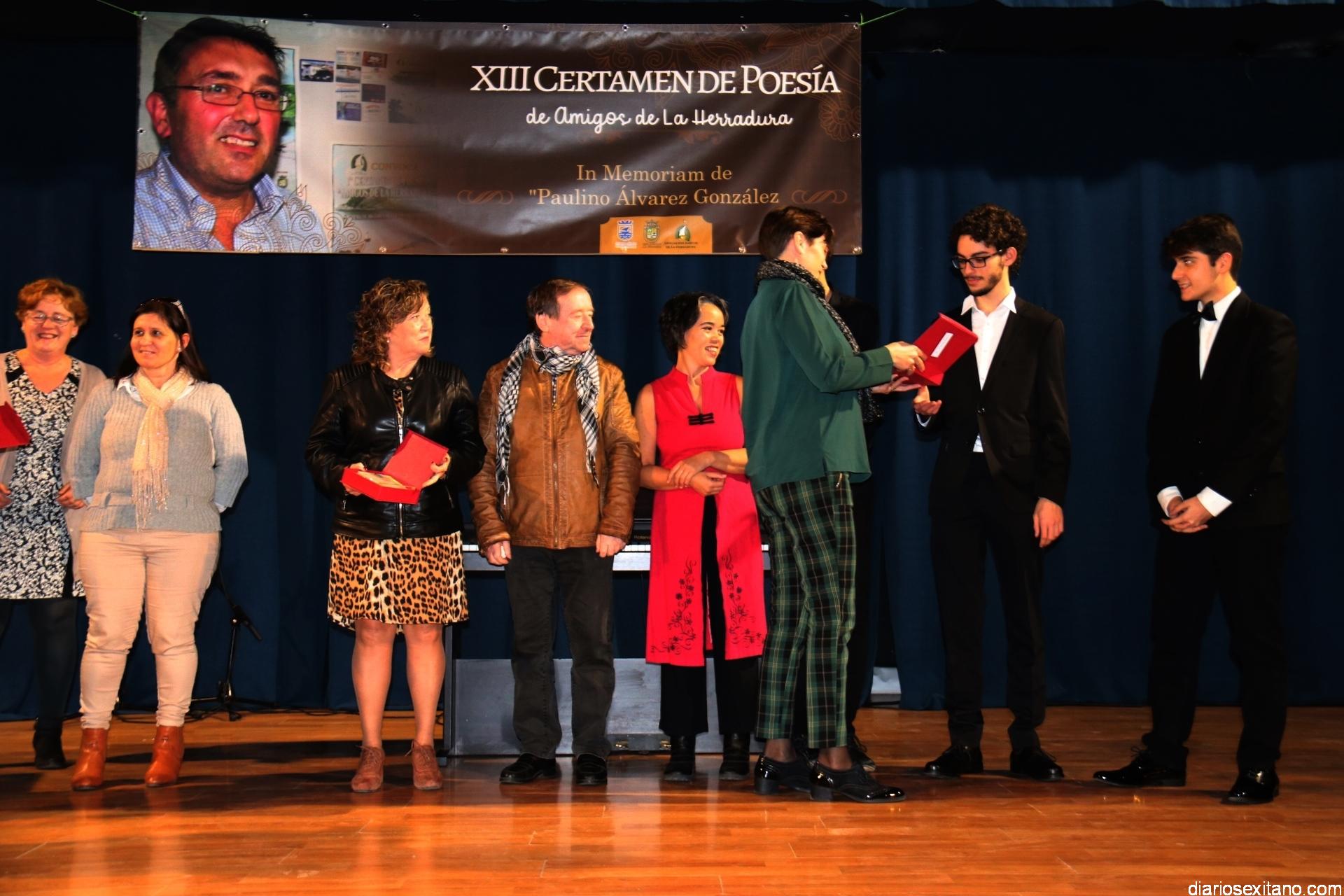 En cuanto al apartado de la categoría local, abierta a poetas procedentes de los distintos municipios de la Costa Tropical. El primer premio, dotado con 200 euros y diploma fue para Moisés Navarro Fernández (Motril) que lo recibió de manos de Estefanía Ramirez; el segundo fue para el sexitano, Francisco Javier Martín Franco, que recibió un trofeo de Librería Coral por parte de su propietario, Santiago Sevilla; mientras que el tercero recayó en la también almuñequera, Eugenia Cristina Frontana, que se hizo con una escultura realizada especialmente por la ceramista, Rosario González, que este año recoge unas palabras de Paulino Álvarez en homenaje a su memoria y que la propia escultora herradureña hizo entrega