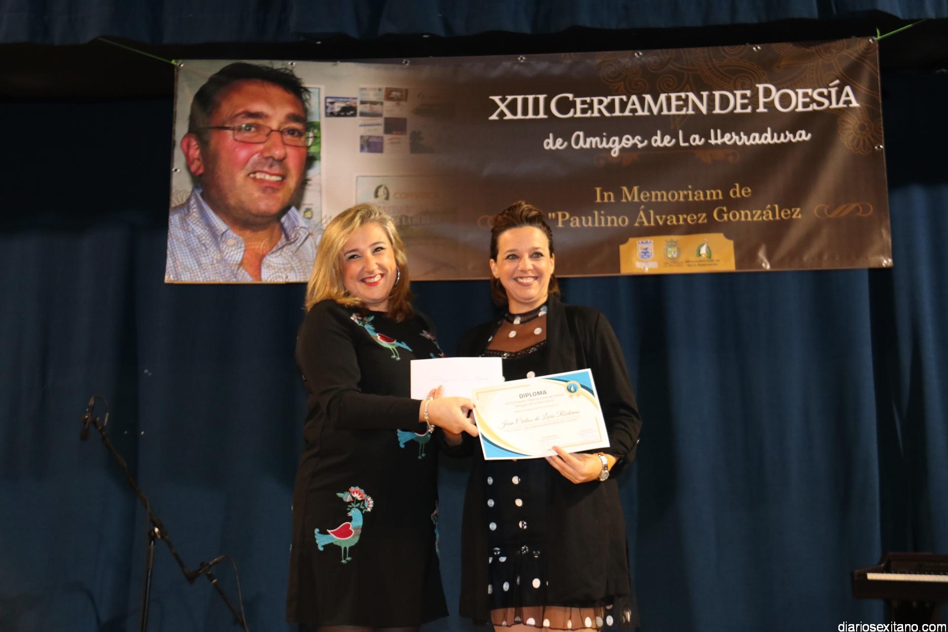 En esta edición el premio único en el apartado general dotado de 1400 euros y diploma, recayó en el poeta onubense, Juan Carlos de Lara Ródenas (Huelva, 1965), por su poema, “En la mitad profunda del olvido”. El poeta onubense no pudo asistir al acto al estar convaleciente por un problema de salud y en su nombre lo recibió la edil sexitana, Beatriz González, de mano de la representante de la Mancomunidad y edil herradureña, Rocío Palacios. De Lara Ródenas sí manifestó, tras conocer el fallo del jurado, que el premio concedido “es un estímulo que le hacen a uno mantener encendida la llama de la vocación por la poesía”,