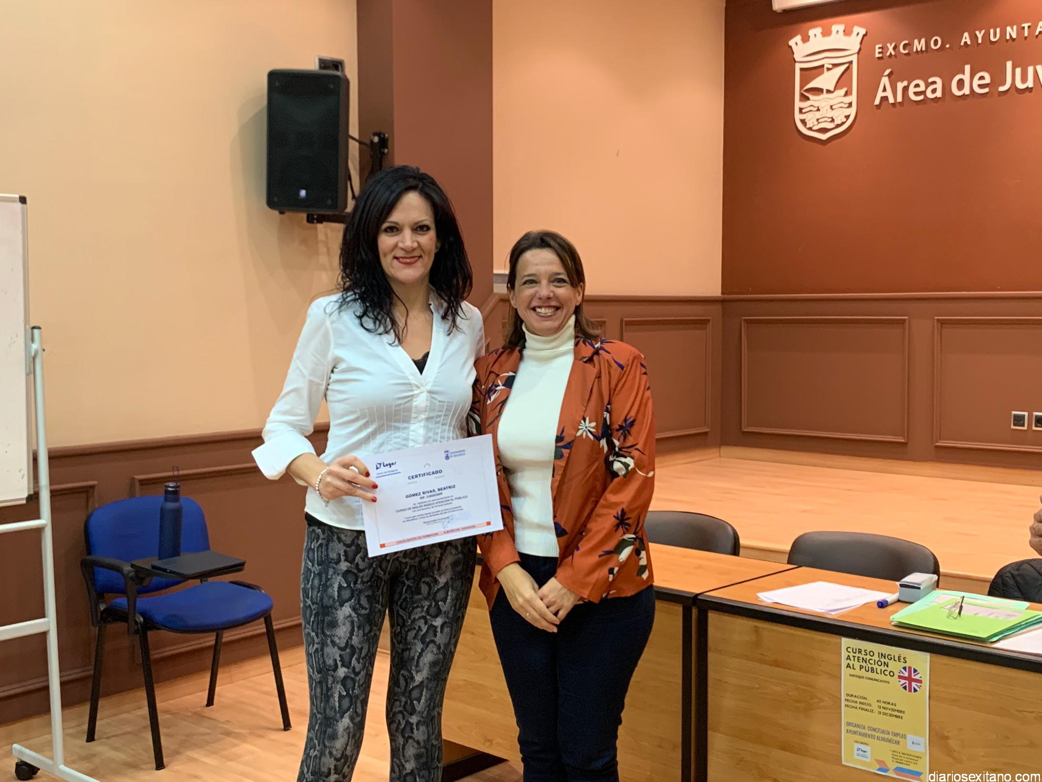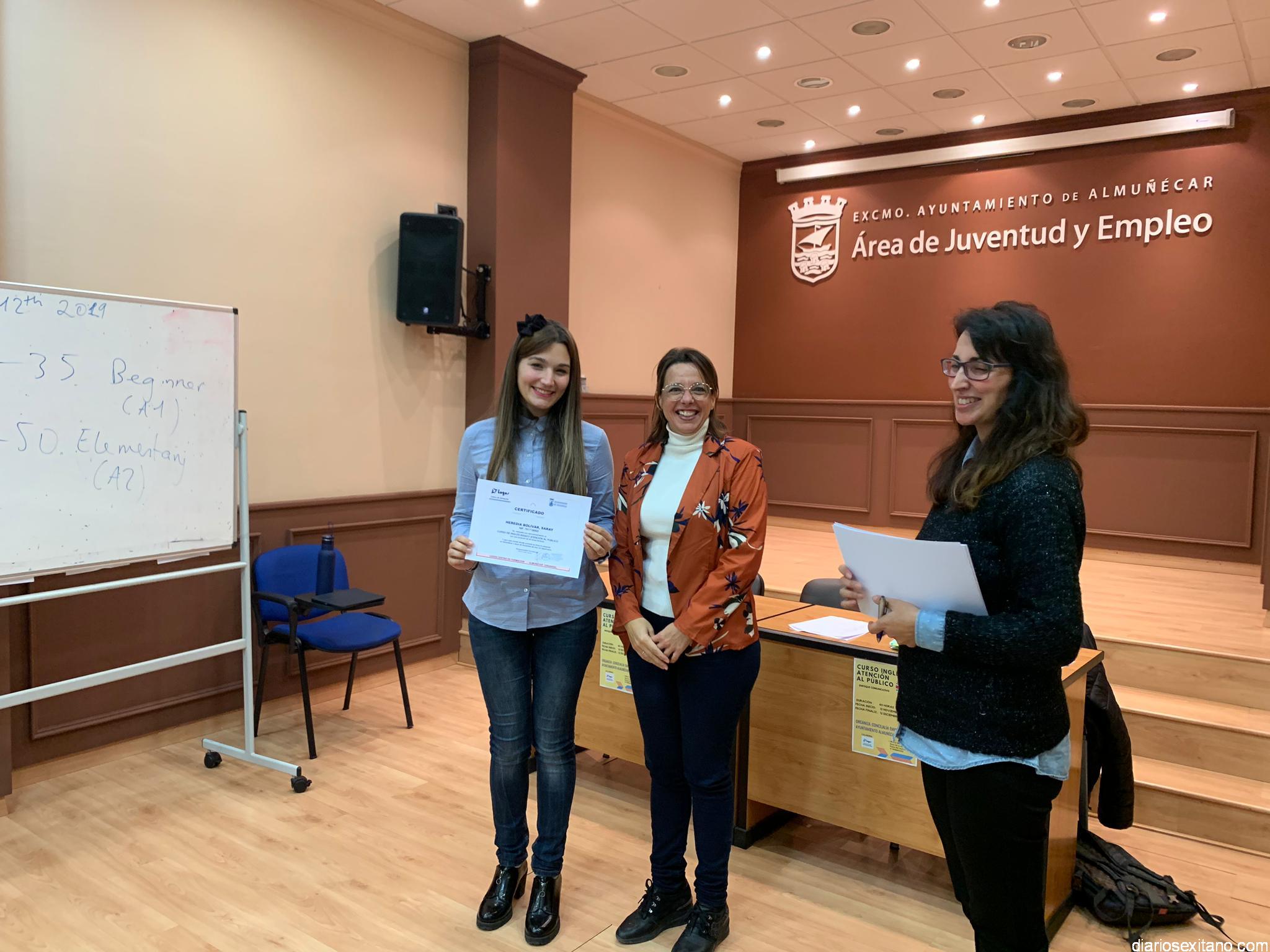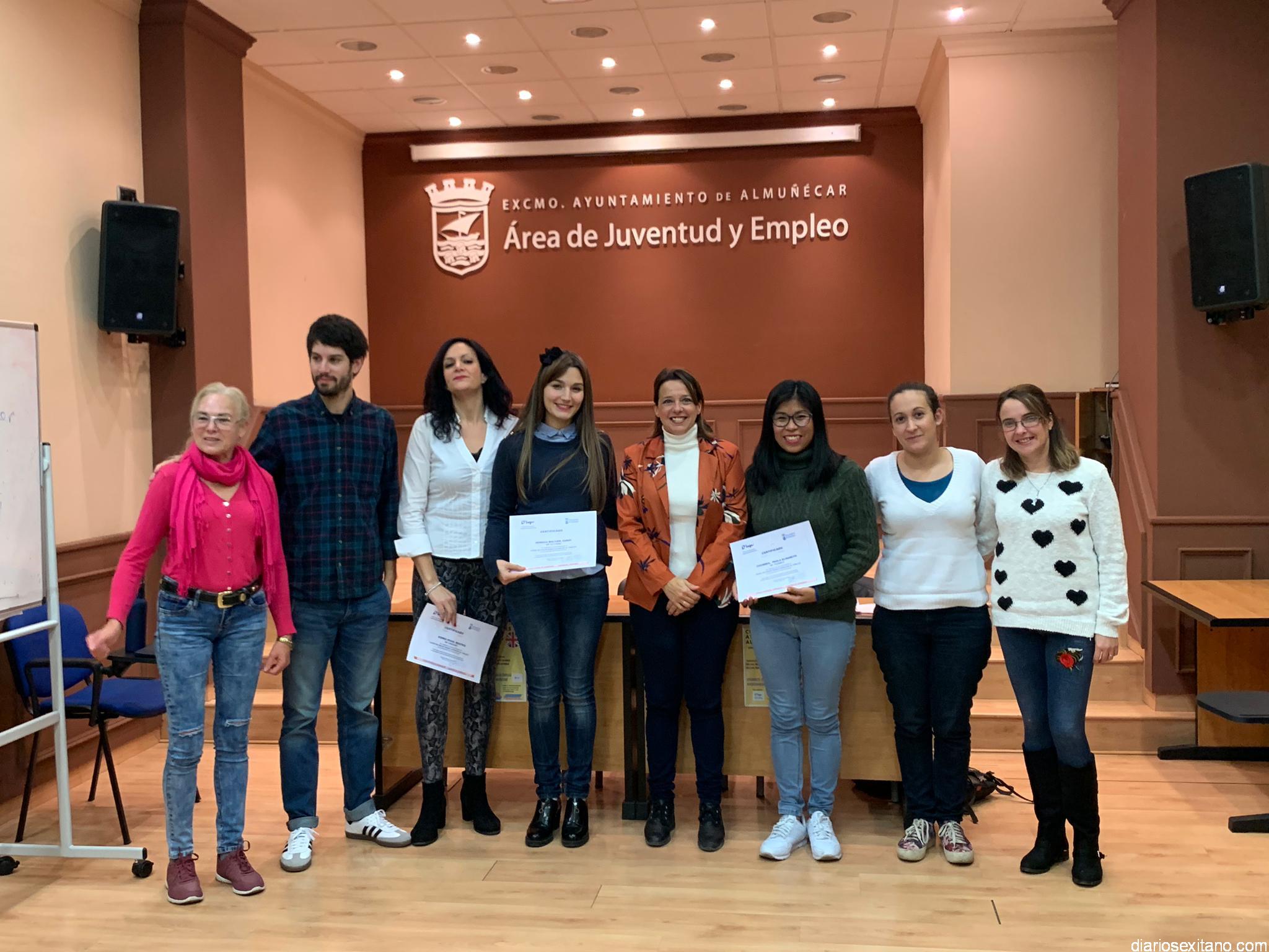 Con la entrega de diplomas a algunas de las personas participantes, la concejal de Fomento y Empleo del Ayuntamiento de Almuñécar, Beatriz González Orce, ha clausurado el curso de inglés denominado de “Atención al público”, que ha venido impartiéndose en la Casa de la Juventud sexitana dirigido a desempleados y personal de comercio y hostelería, interesados para el desarrollo de su actividad laboral.