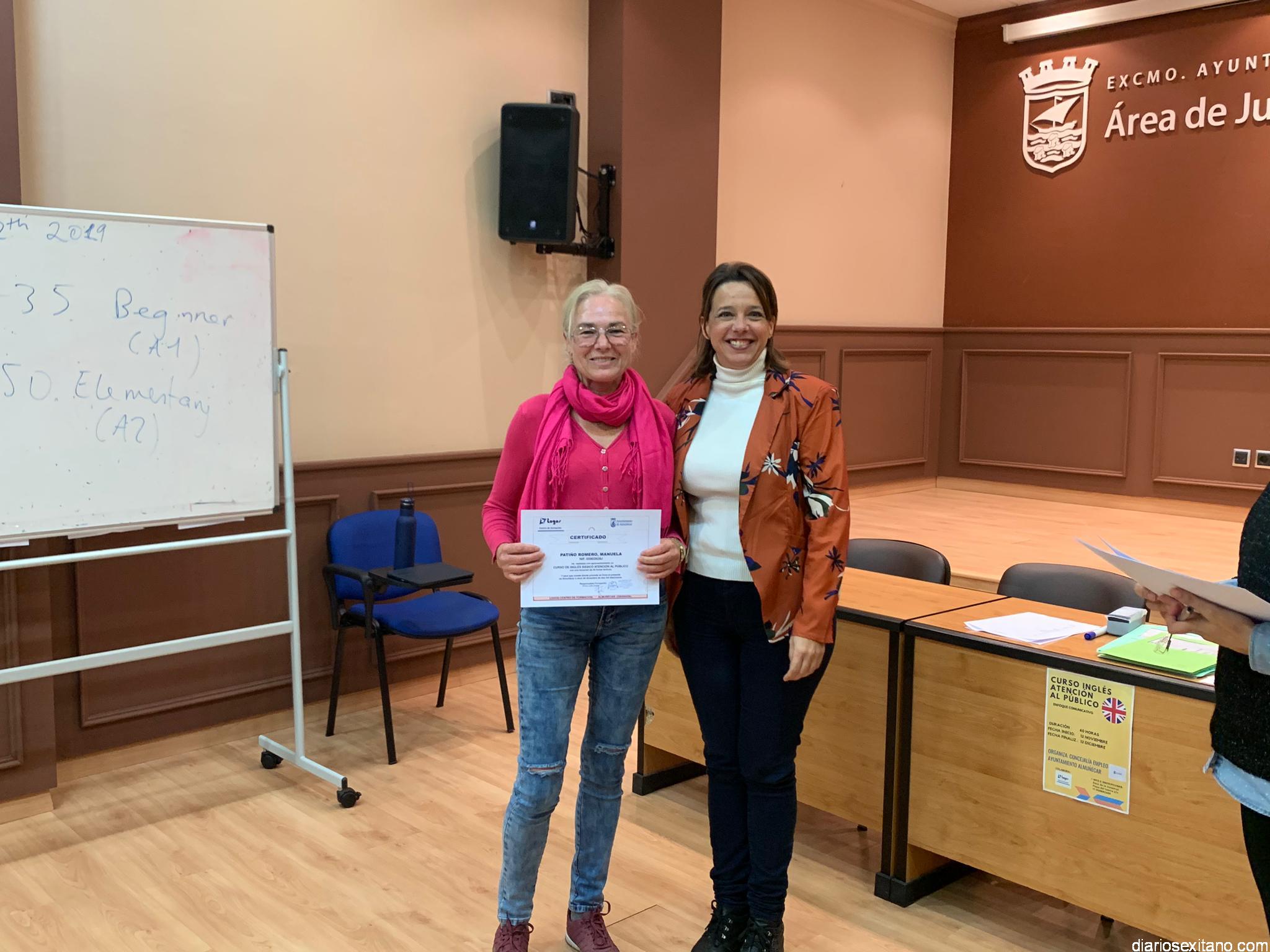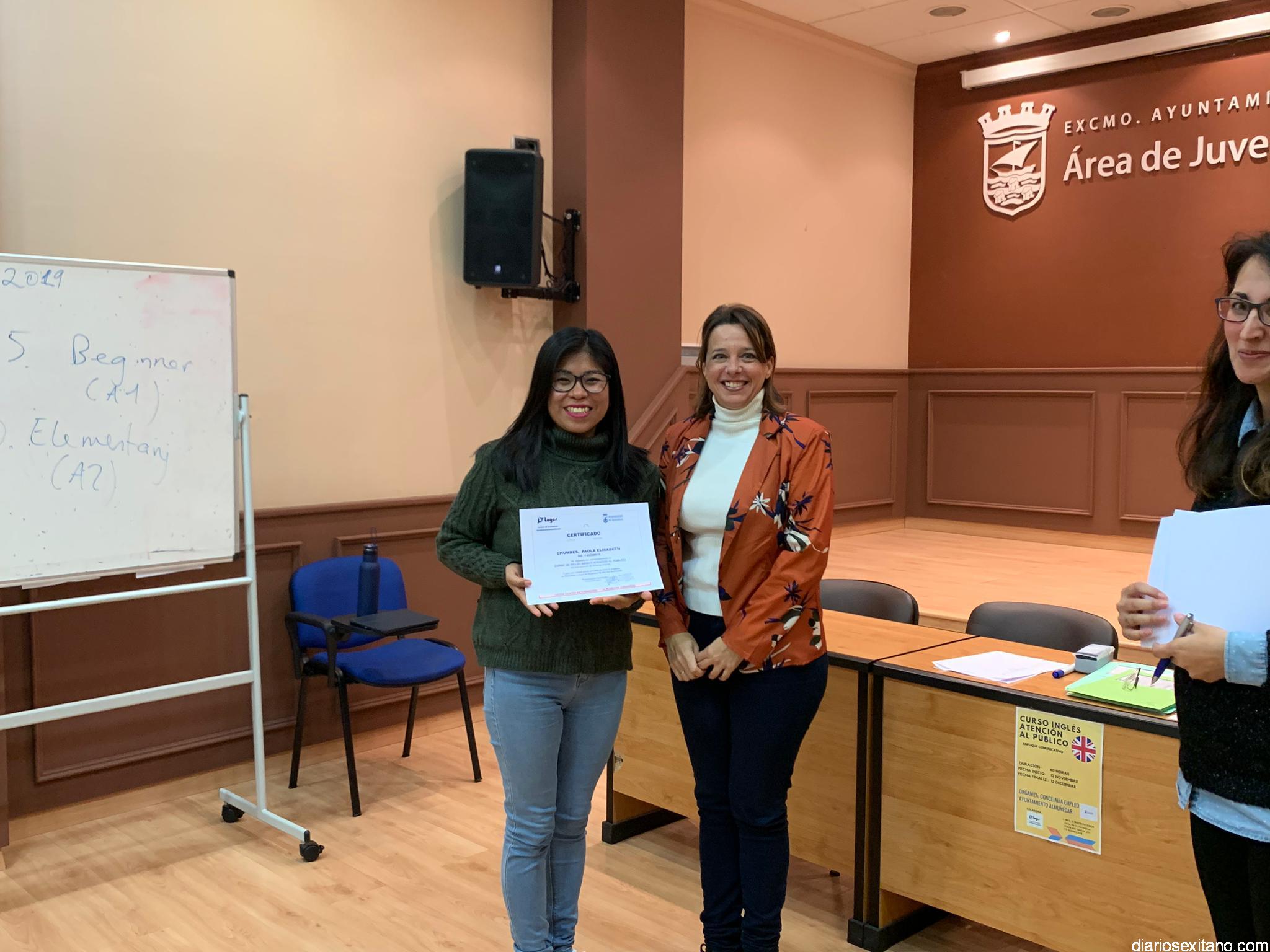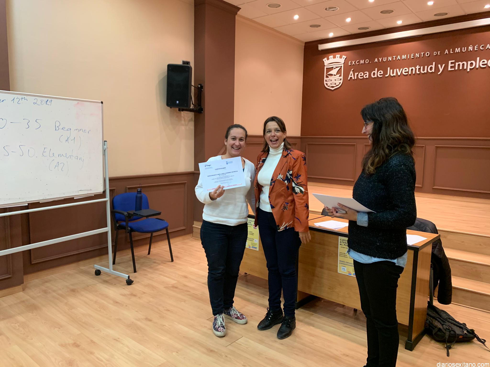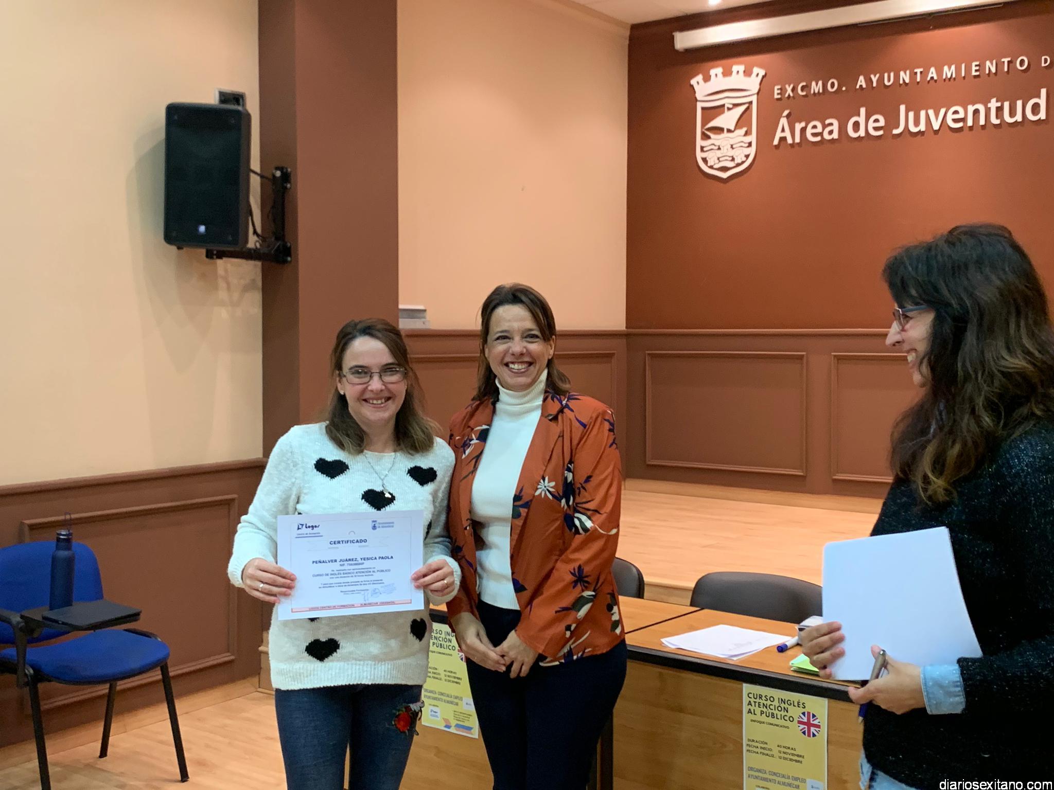 Con la entrega de diplomas a algunas de las personas participantes, la concejal de Fomento y Empleo del Ayuntamiento de Almuñécar, Beatriz González Orce, ha clausurado el curso de inglés denominado de “Atención al público”, que ha venido impartiéndose en la Casa de la Juventud sexitana dirigido a desempleados y personal de comercio y hostelería, interesados para el desarrollo de su actividad laboral.