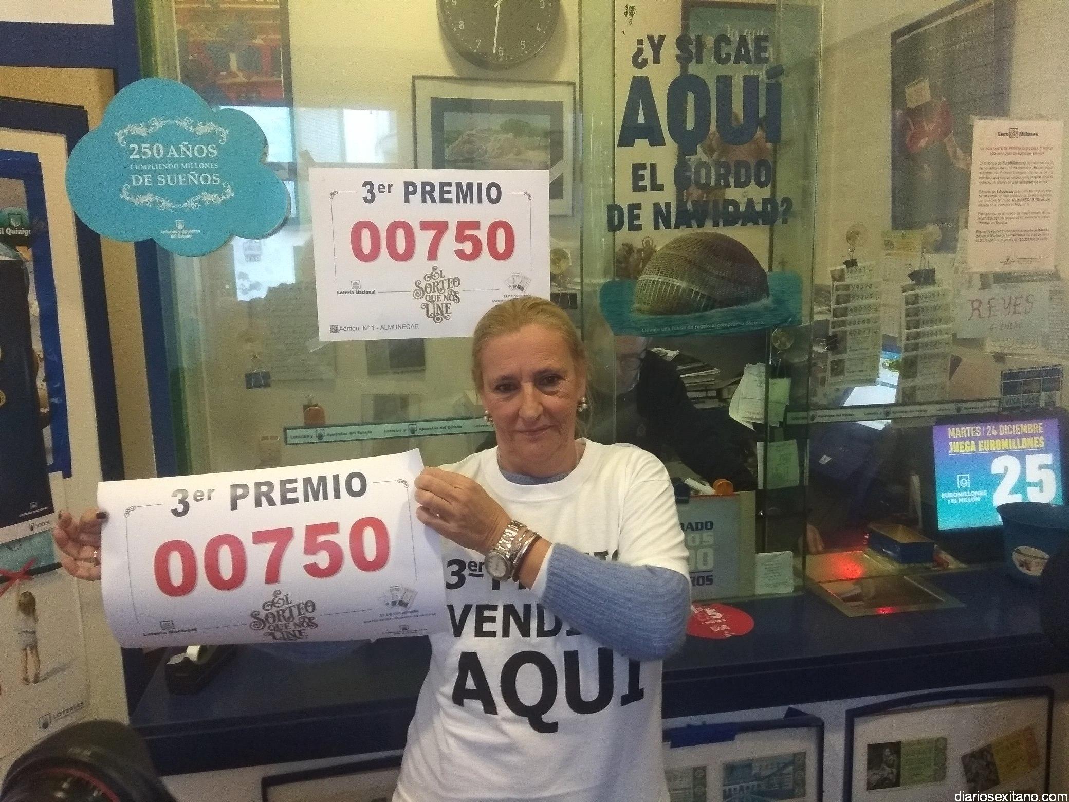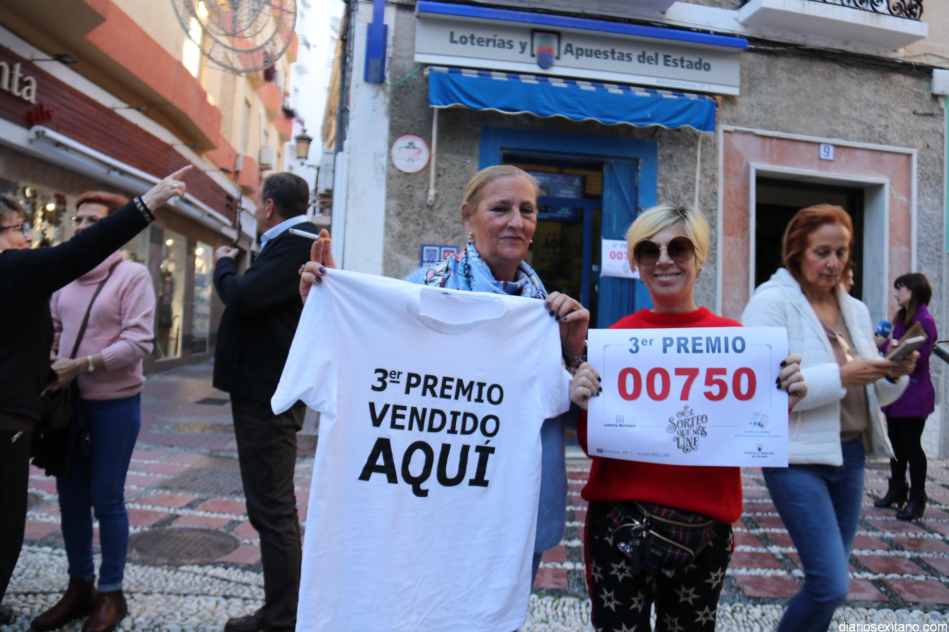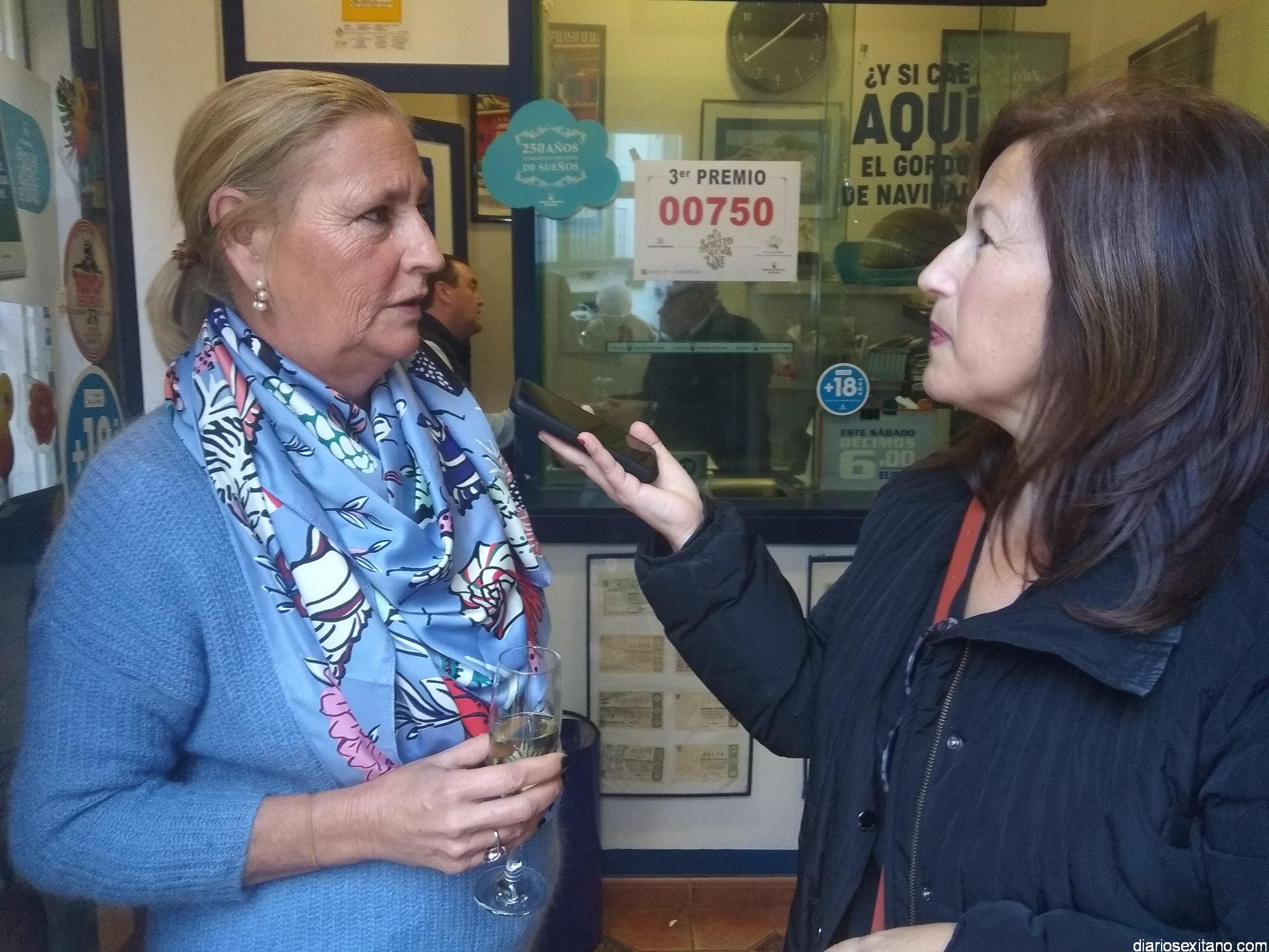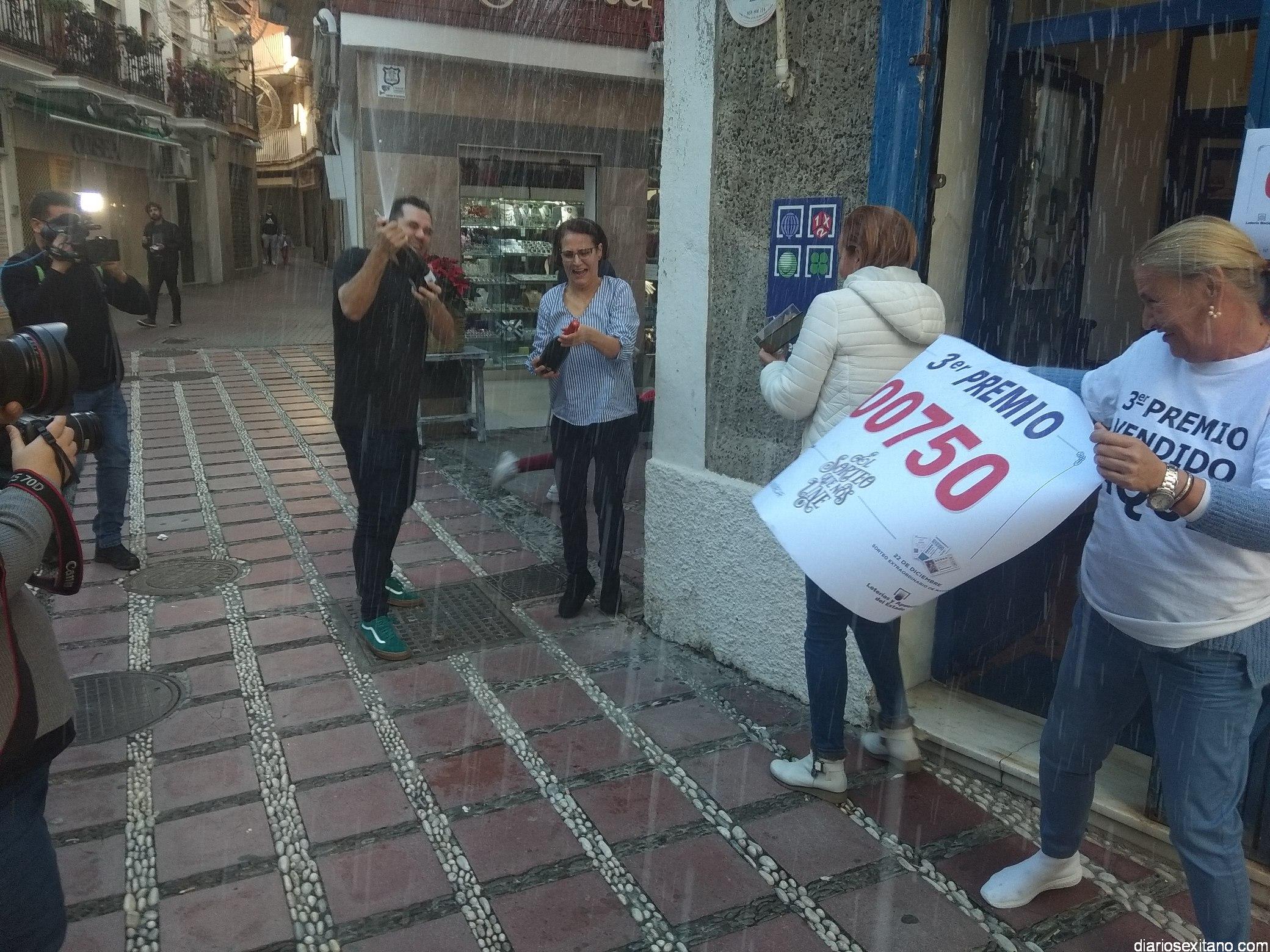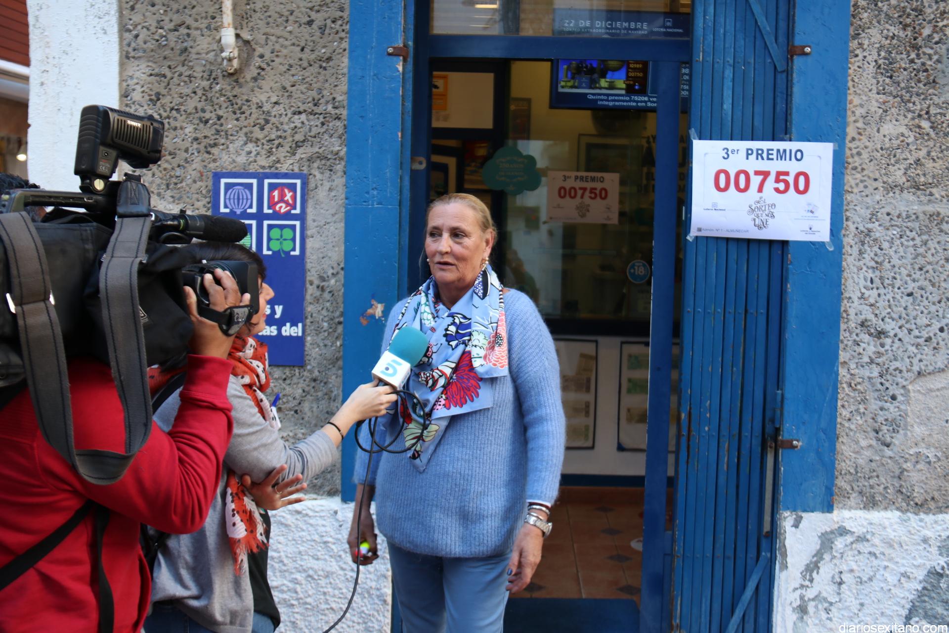 La Placeta de La Rosa se llenó la mañana de este domingo, 22 de diciembre, de medios de comunicación buscando a la responsable de la Administración de Loterías número 1, Carolina Rodríguez, y a algunos de los afortunados con el tercer premio de la Lotería de Navidad que correspondió al número 00750 del que Almuñécar había recibido 40 billetes y del que solo se llegó a vender 10 billetes, equivalente a unos 5 millones de euros.