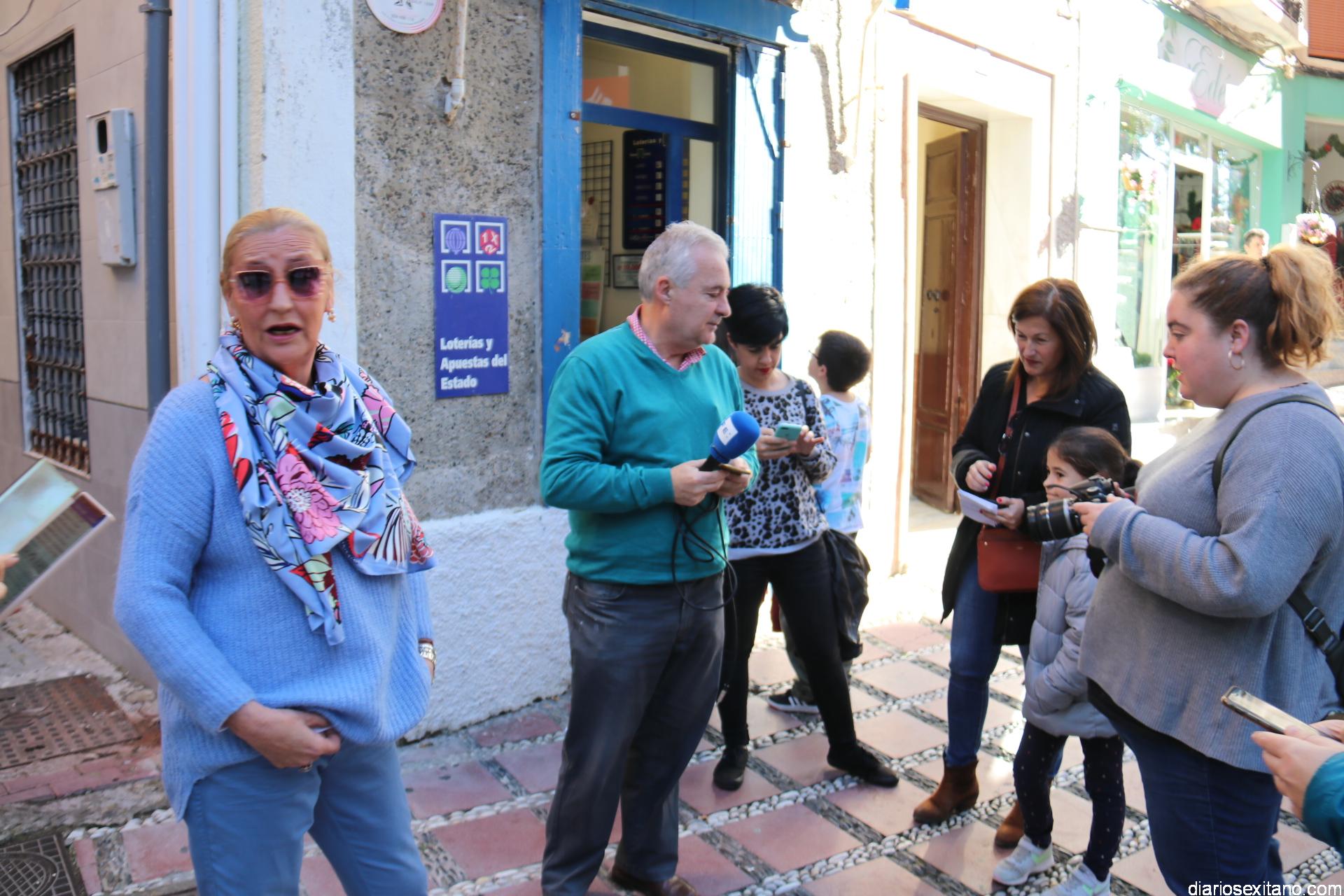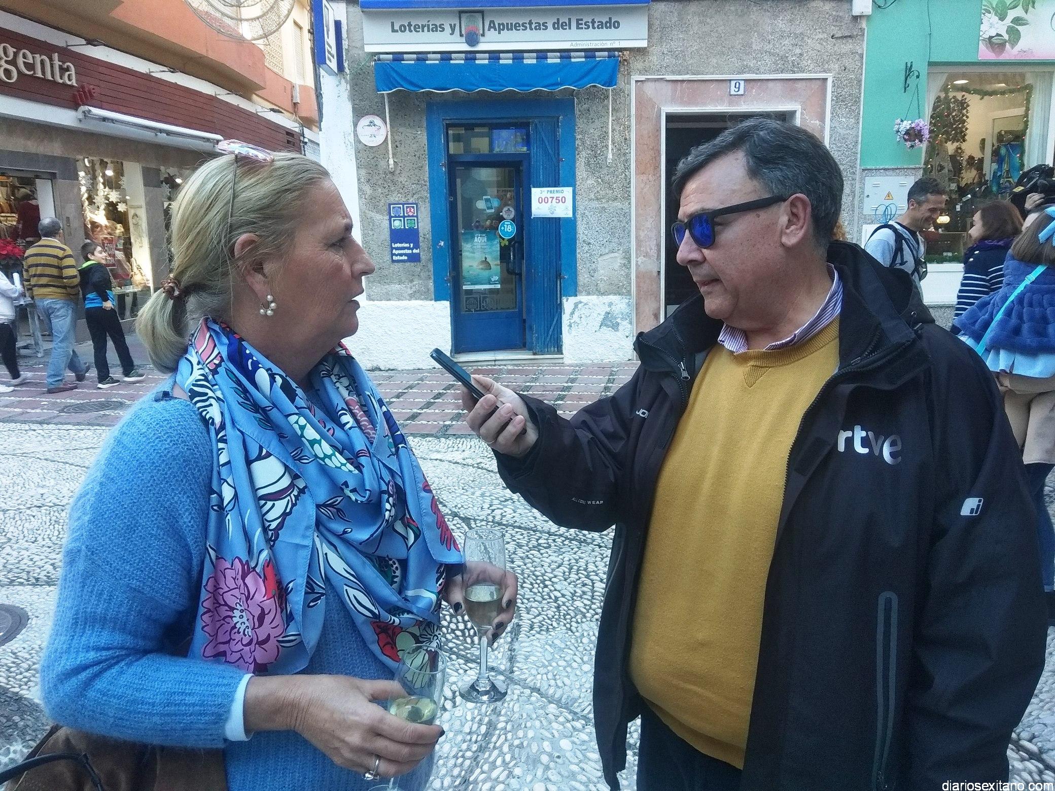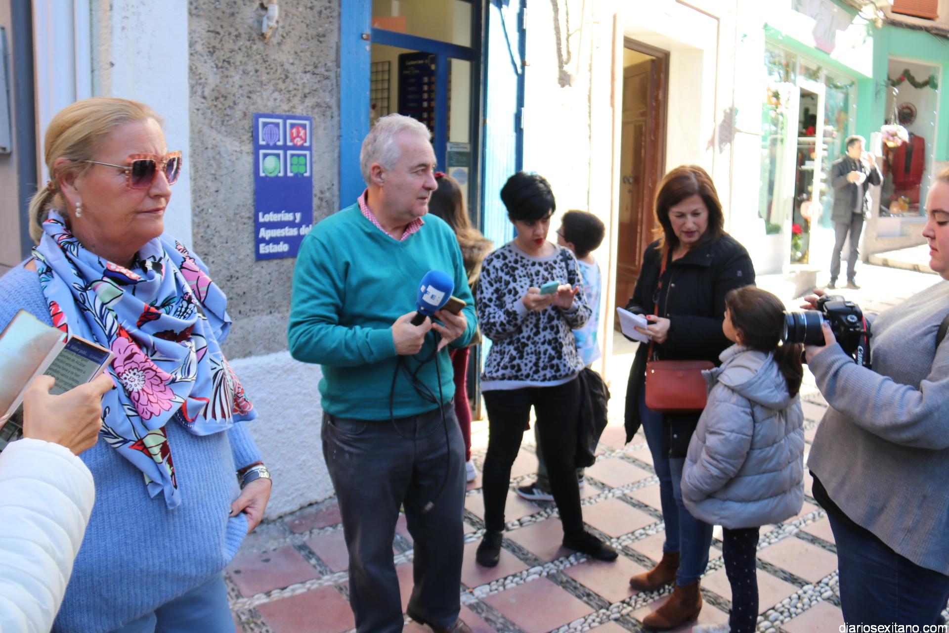 Eran minutos después de la 11 de la mañana cuando cantaban los niños del colegio San Ildefonso cantaban el premio y dado que Almuñécar era la que más billetes había recibido, pusieron rumbo para la citada Placeta sexitana de La Rosa y poco a poco se fue ambientando de periodistas, cámaras de todas la cadenas de televisión y radios, agencias, prensa y fotógrafos…. Eladio Santaella, del Restaurante Los Geraneos, ubicado también al Placeta, fue el que puso la guinda a la mañana con una, dos y hasta tres botellas de cava para plasmar la alegría de la responsable de la Administración y vecinos.