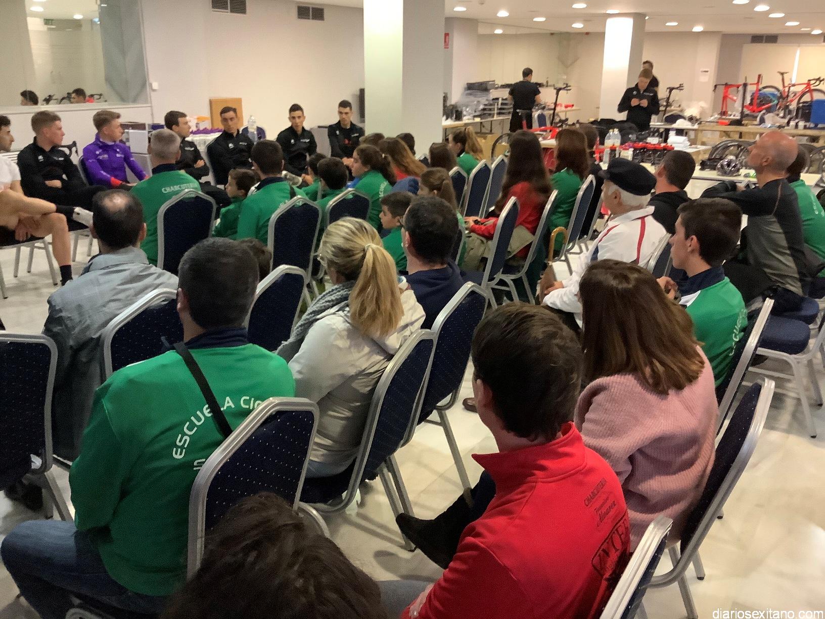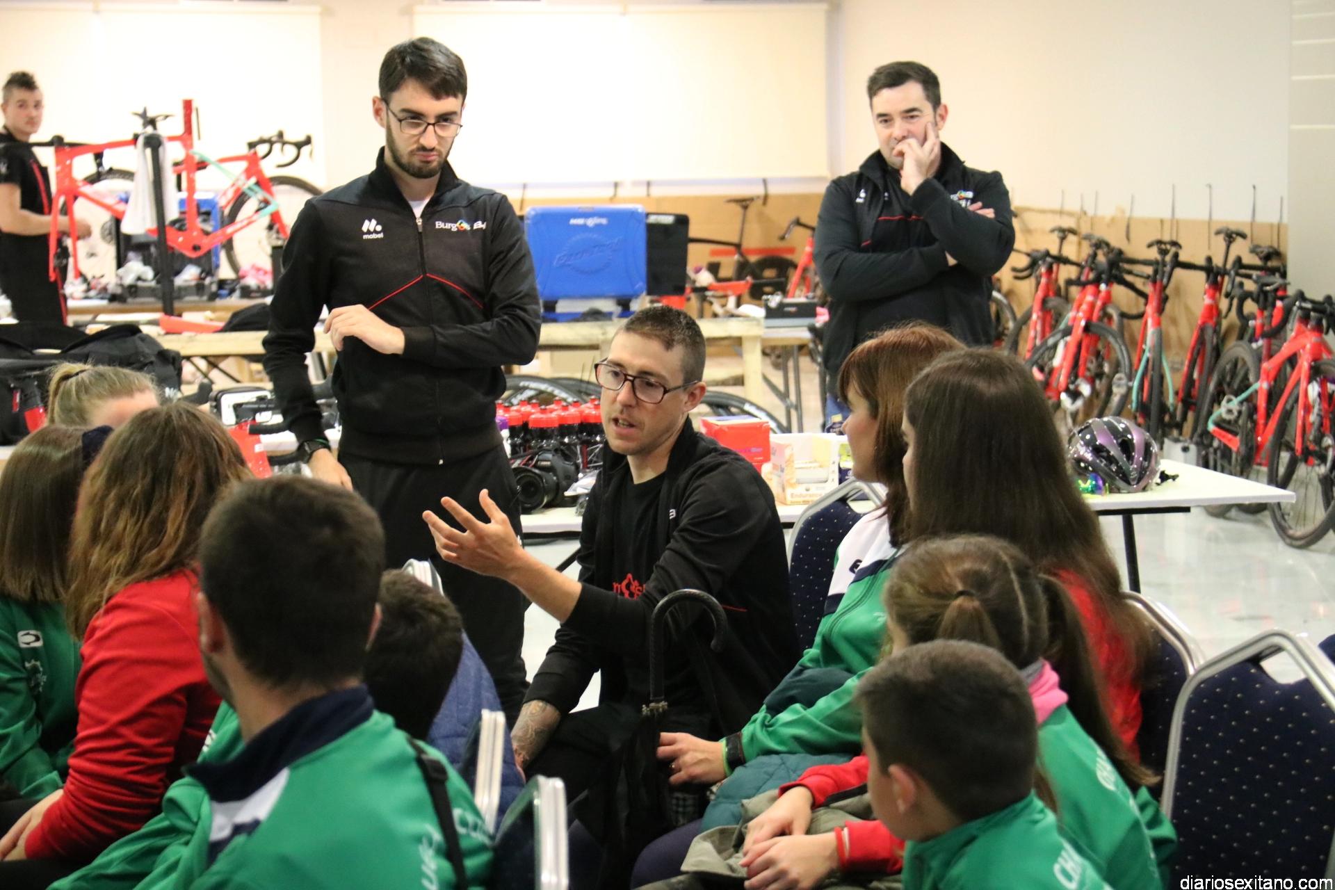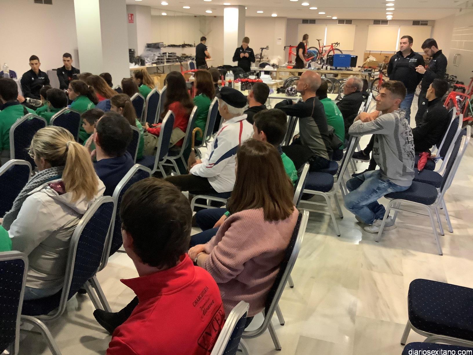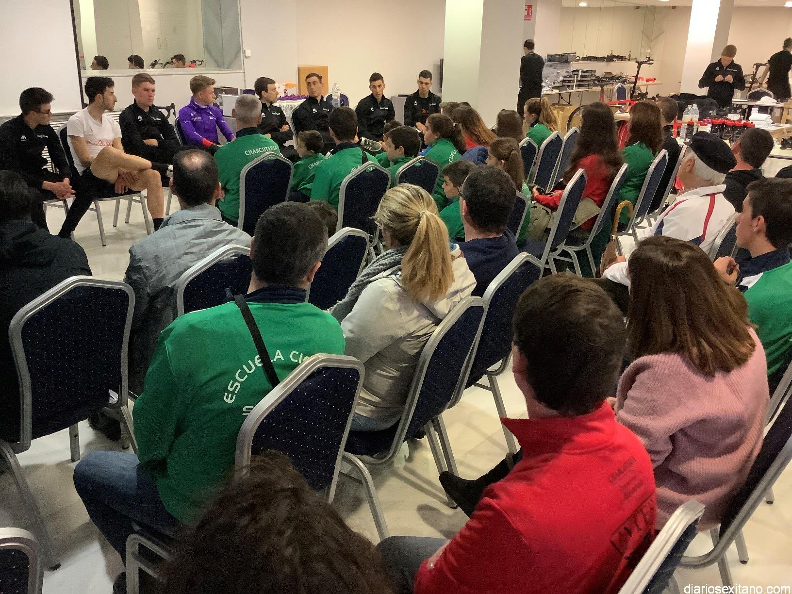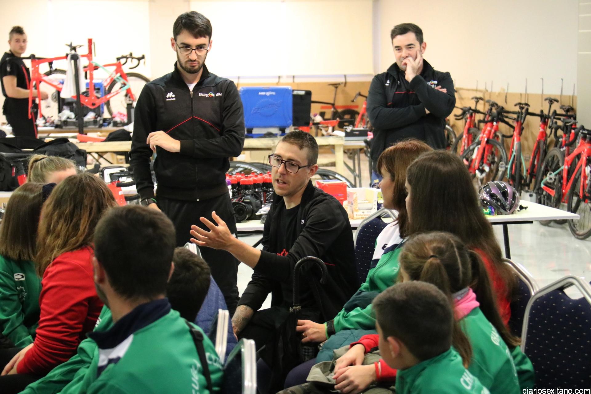 El acto se desarrolló con buena acogida por parte de los ciclista y el propio equipo técnico que no escatimó nada para que los pequeños y pequeñas que forma la Escuela de Ciclismo Sexitana se informaran de todo. Primero conociendo a los componentes y después todo lo que les rodea, desde la maquinaria que utilizan para las distintas pruebas, pasando por la alimentación y la logística de materiales que utilizan.