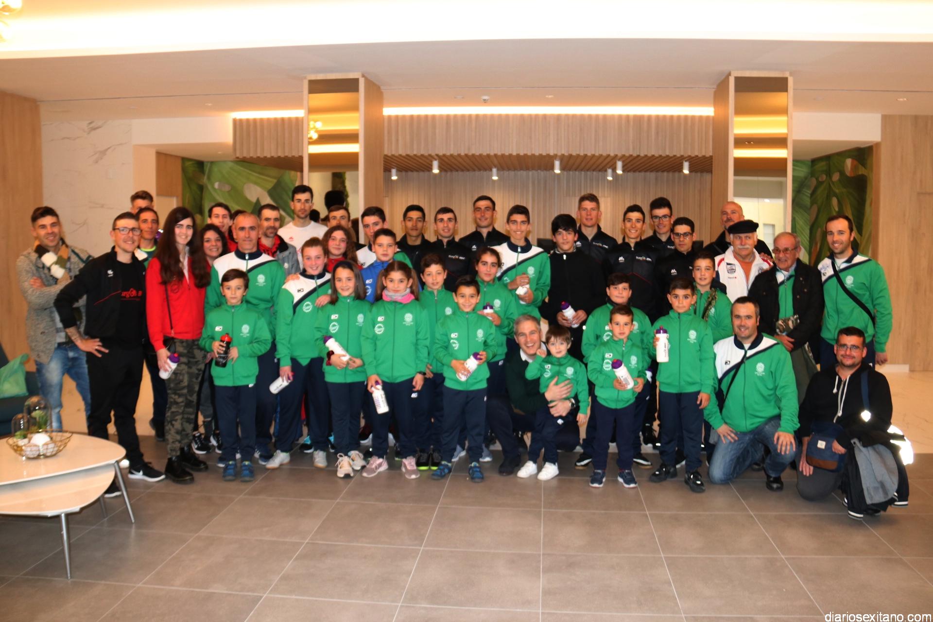 La visita concluyó con la firma de autógrafos y la entrega de bidones de agua como recuerdo de la misma, así como la correspondiente foto de familia en el propio hall del hotel.