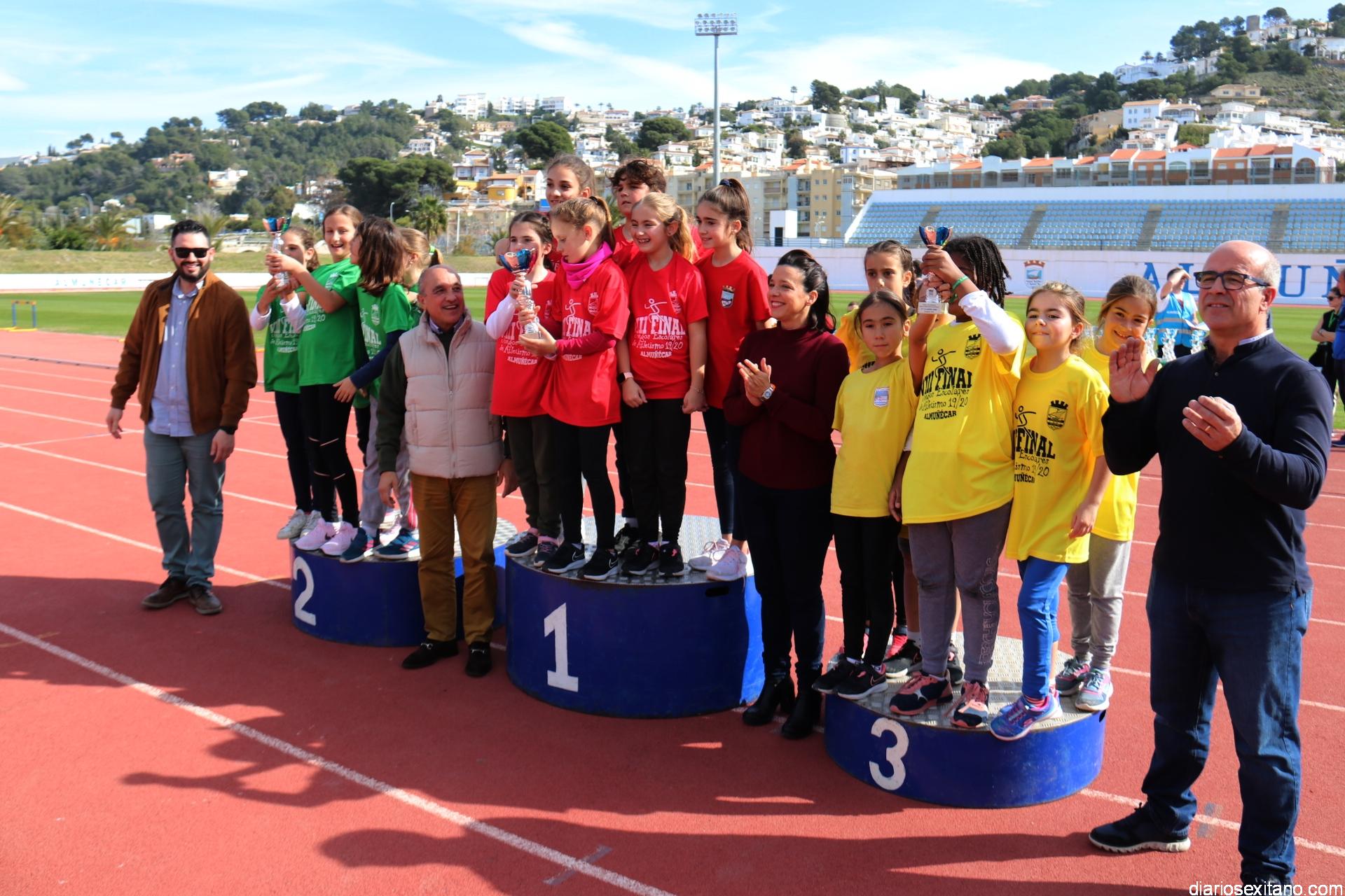 Con la entrega de trofeos a los distintos cursos de Primaria y Secundaria que consiguieron podio en la gran final se puso el broche a las VIII Jornadas de Atletismo Escolar de Almuñécar, que ha venido celebrando el Área de Deportes del Consistorio sexitano en las pistas de atletismo del estadio “Francisco Bonet”, con la participación de los centros educativos de Almuñécar y La Herradura.