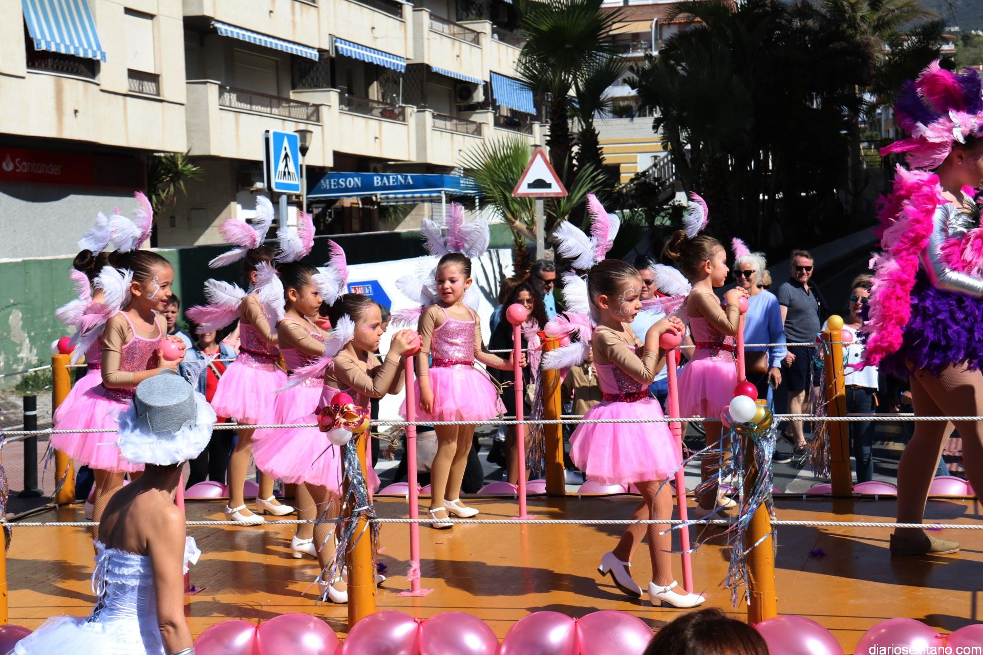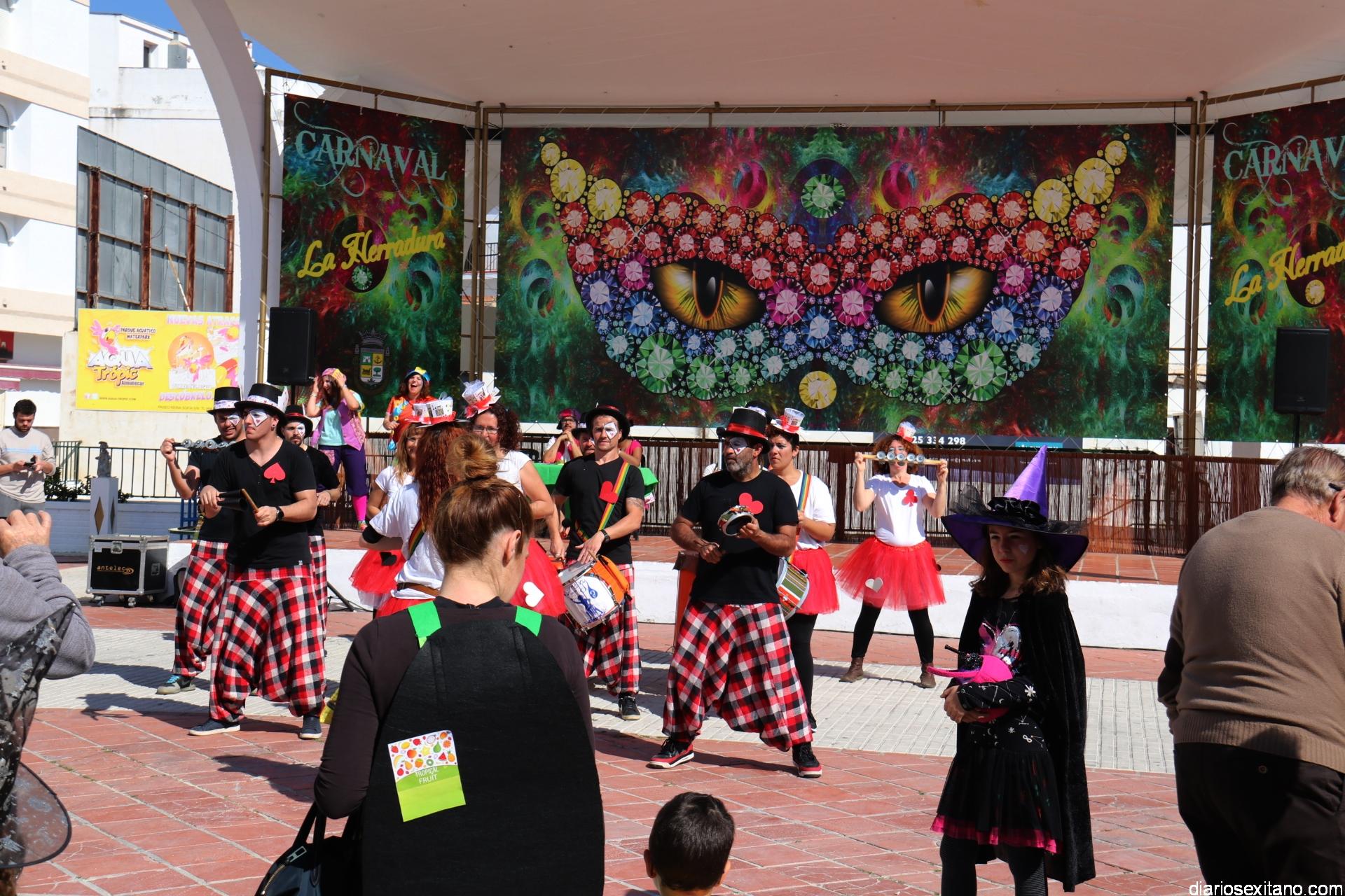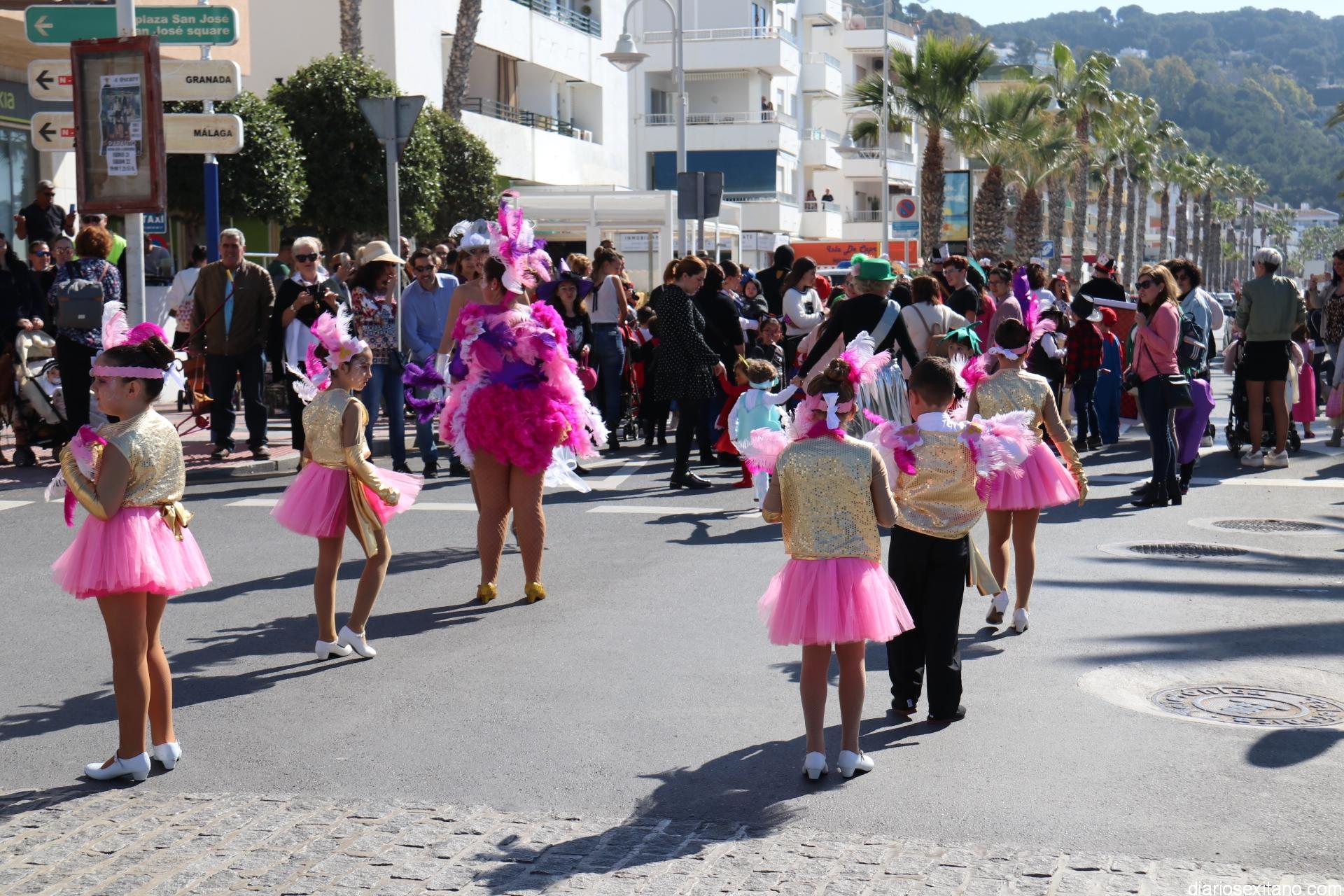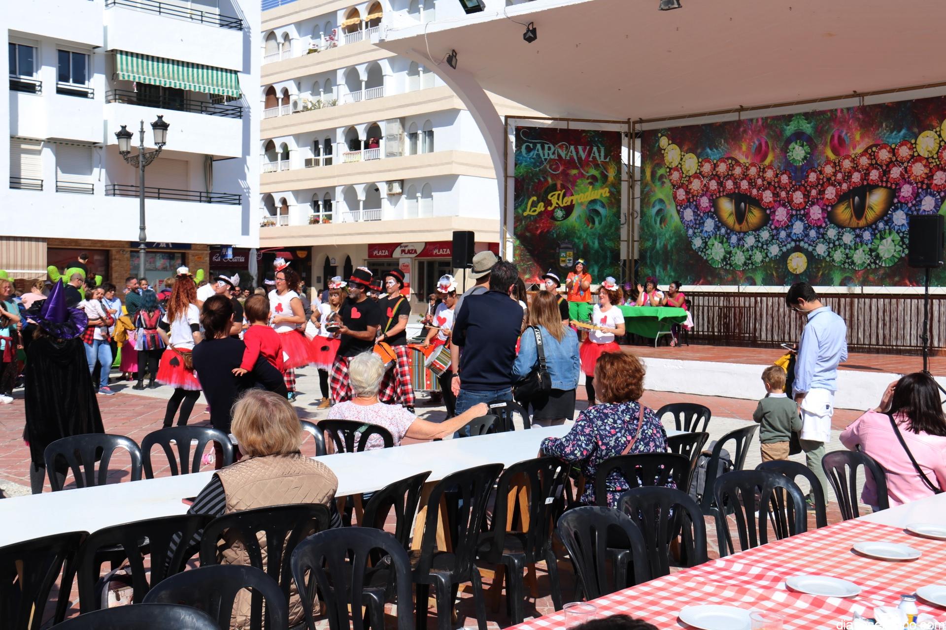 Un gran pasacalle infantil puso ritmo y colorido este domingo a la Fiesta de Carnaval de La Herradura. El buen tiempo y la excelente temperatura animó la participación de pequeños y también la admiración de los mayores que acompañaron el cortejo desde el Centro Cívico por el paseo Andrés Segovia hasta llega a la plaza de la Independencia.