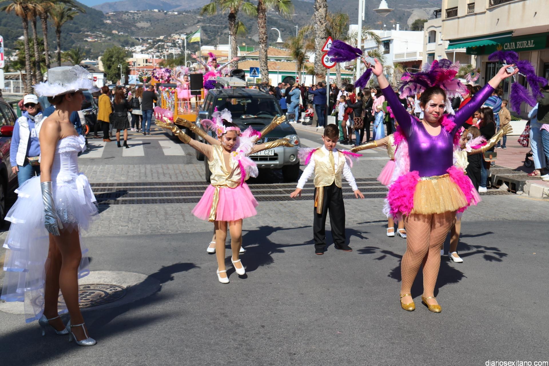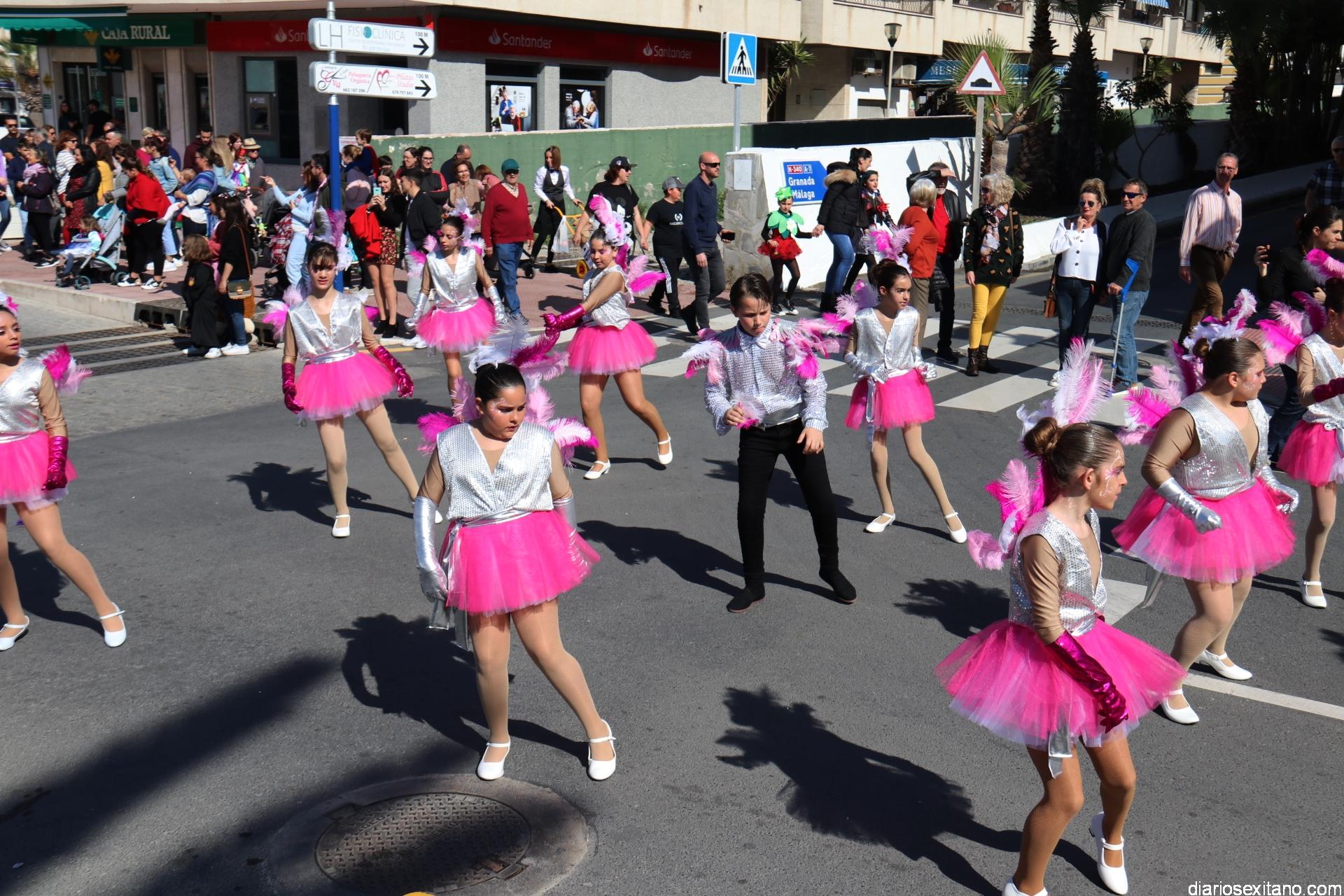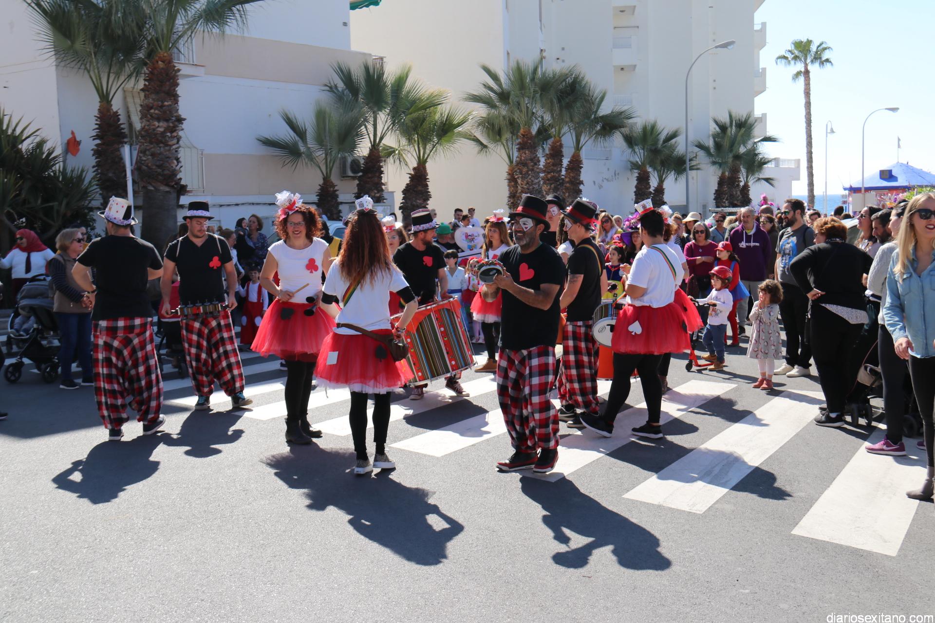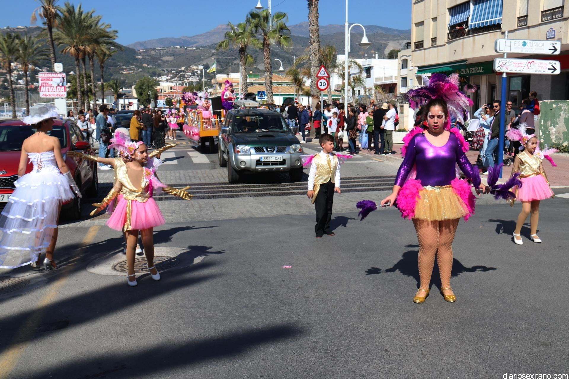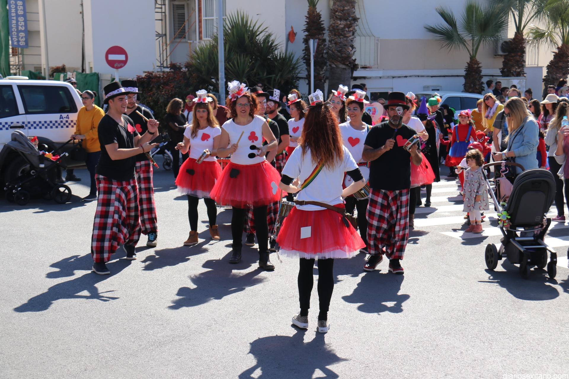 Un gran pasacalle infantil puso ritmo y colorido este domingo a la Fiesta de Carnaval de La Herradura. El buen tiempo y la excelente temperatura animó la participación de pequeños y también la admiración de los mayores que acompañaron el cortejo desde el Centro Cívico por el paseo Andrés Segovia hasta llega a la plaza de la Independencia.