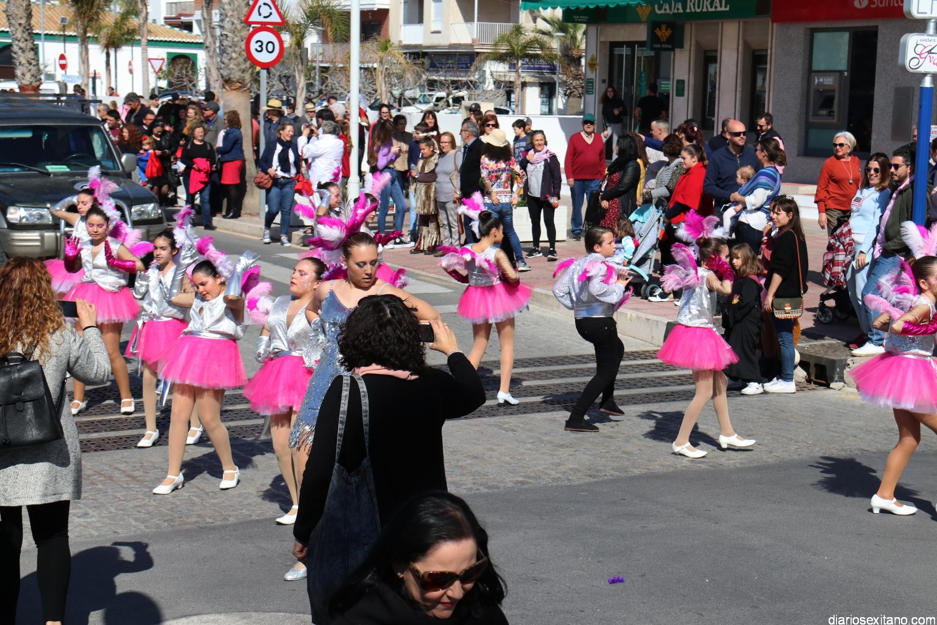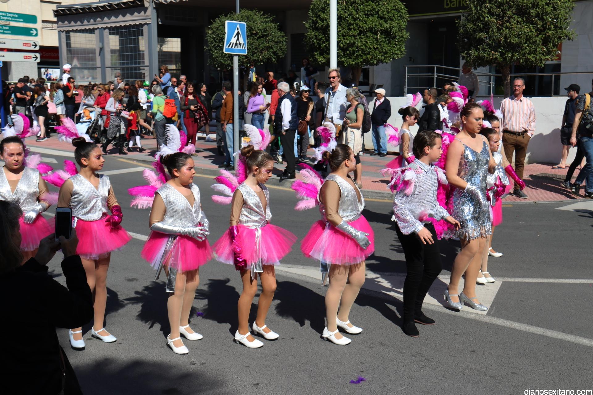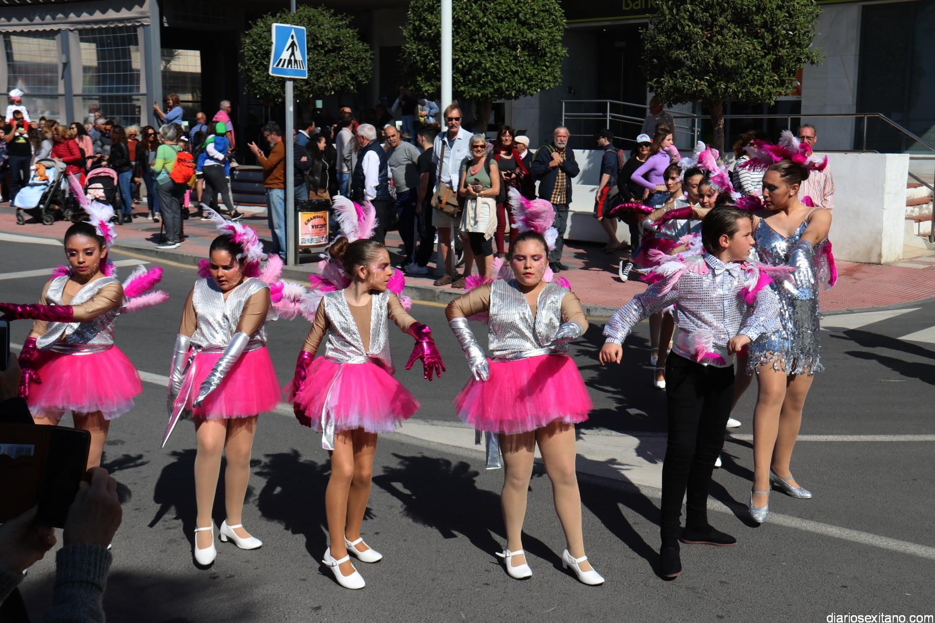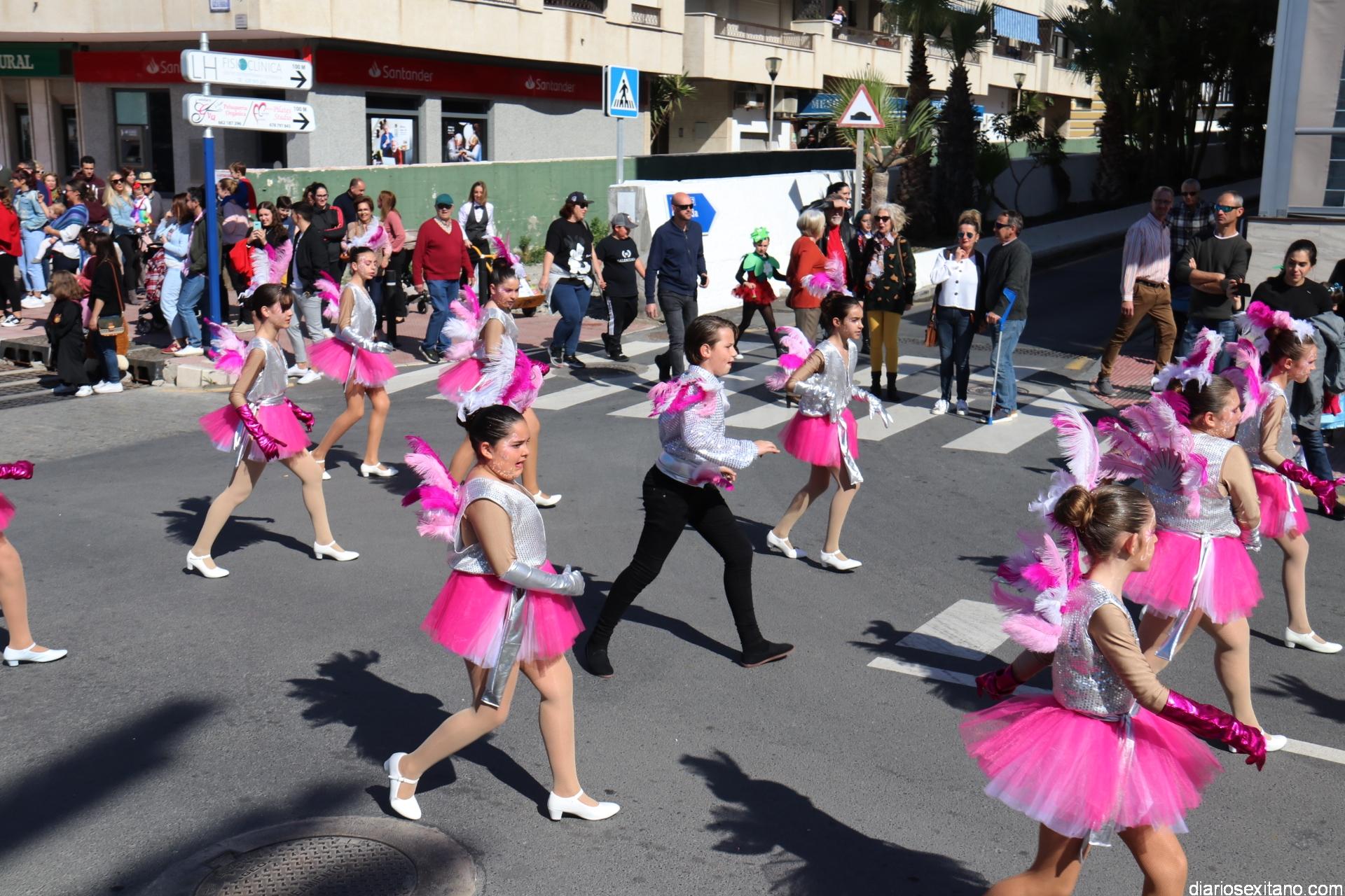 Un gran pasacalle infantil puso ritmo y colorido este domingo a la Fiesta de Carnaval de La Herradura. El buen tiempo y la excelente temperatura animó la participación de pequeños y también la admiración de los mayores que acompañaron el cortejo desde el Centro Cívico por el paseo Andrés Segovia hasta llega a la plaza de la Independencia.