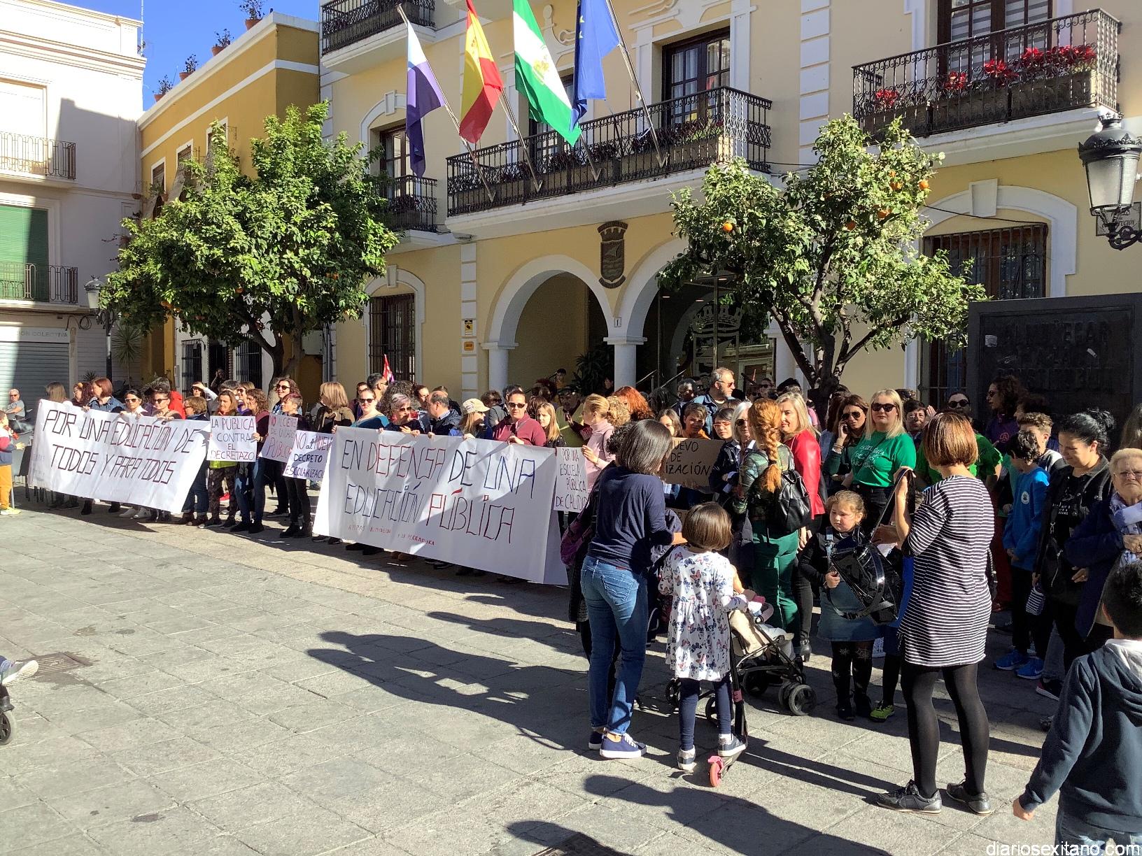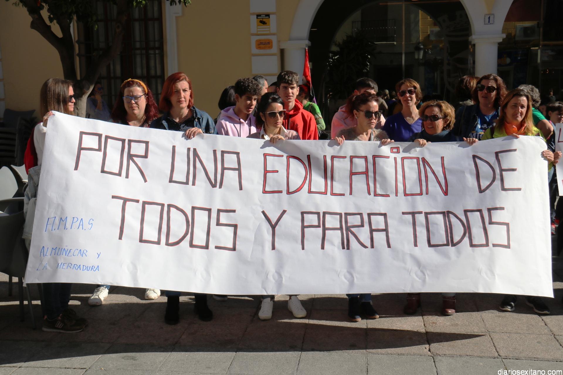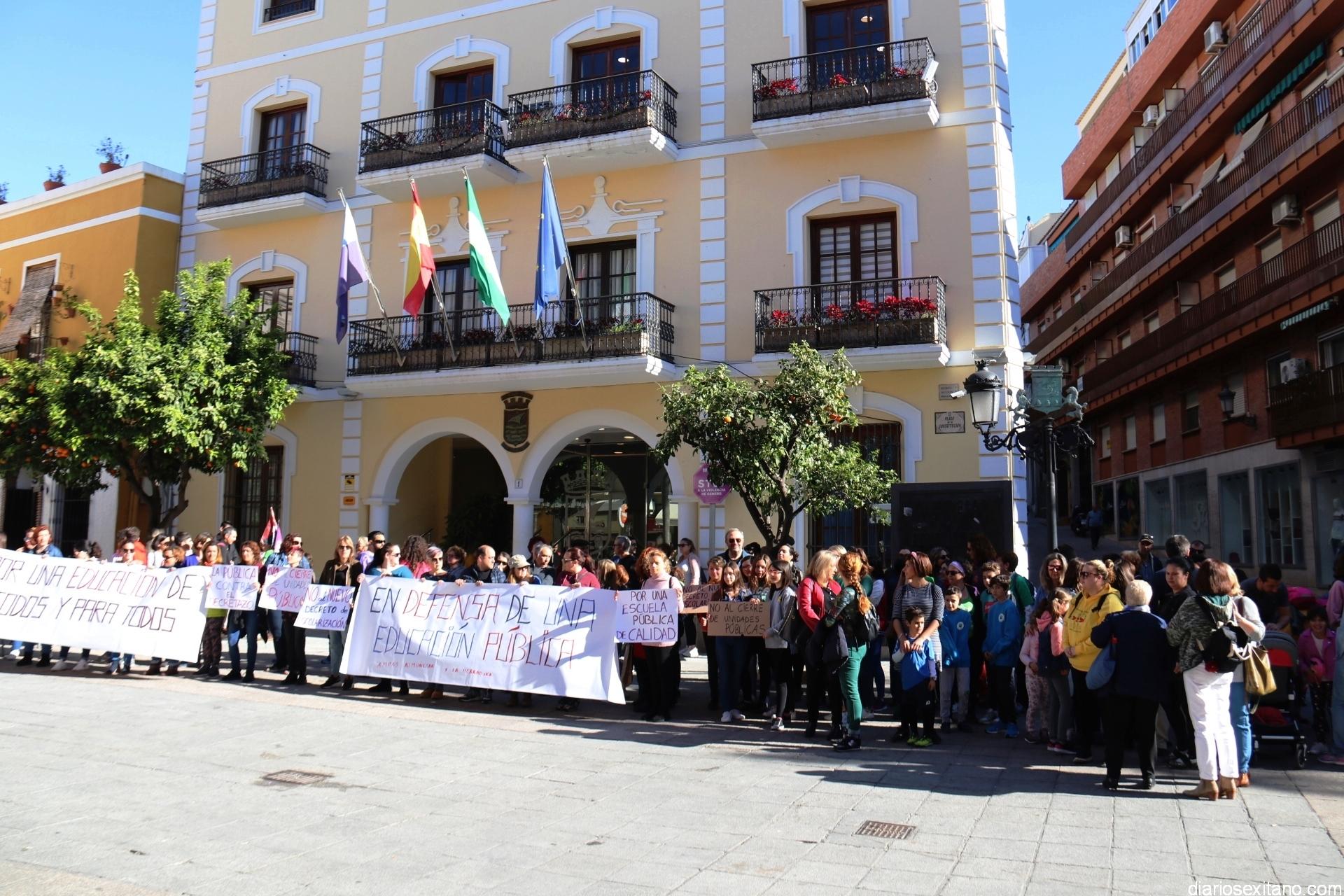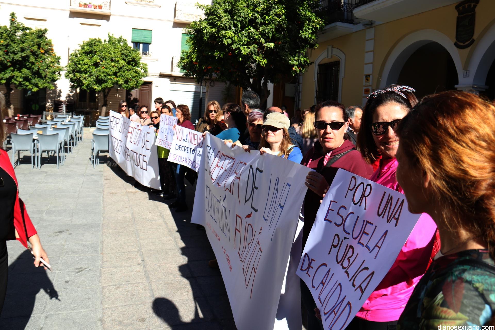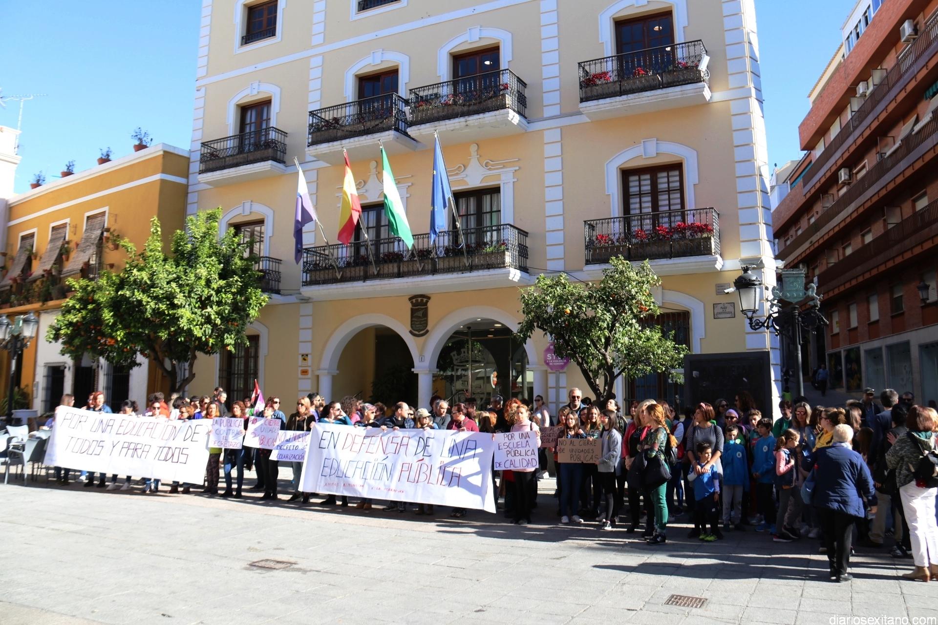 Bajo el lema “No al cierre de unidades públicas” y “No al decreto de escolarización, las AMPAS de varios centros de Almuñécar y La Herradura han llevado a cabo una concentración protesta este miércoles en la plaza de la Constitución, a las puertas del Ayuntamiento, donde acudieron alumnos, madres, padres y profesores.