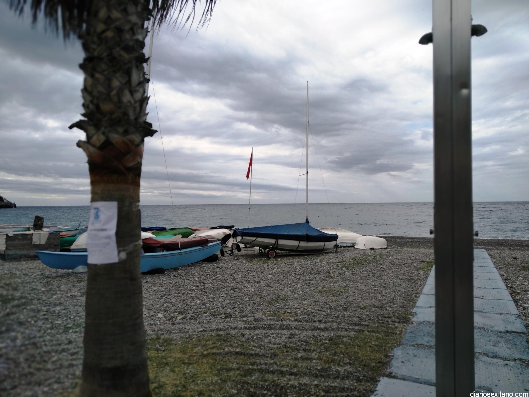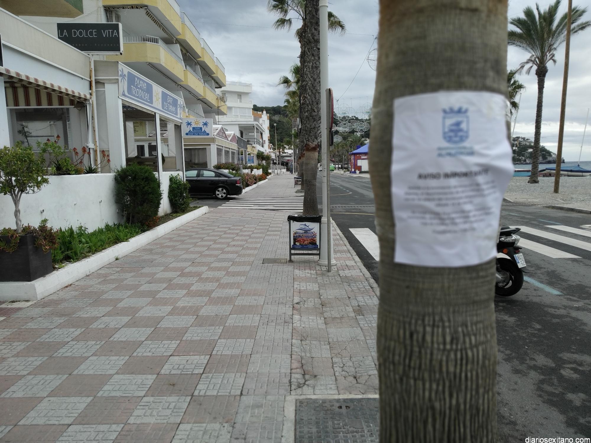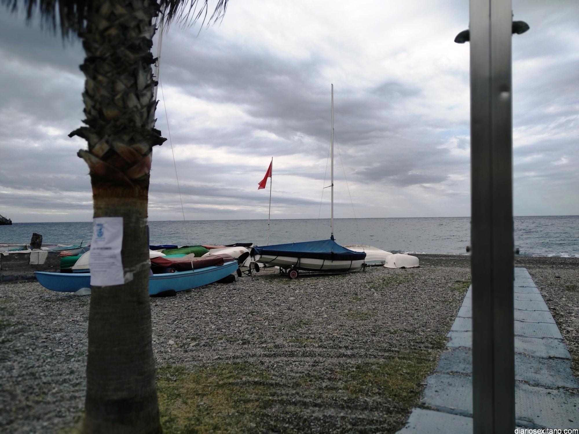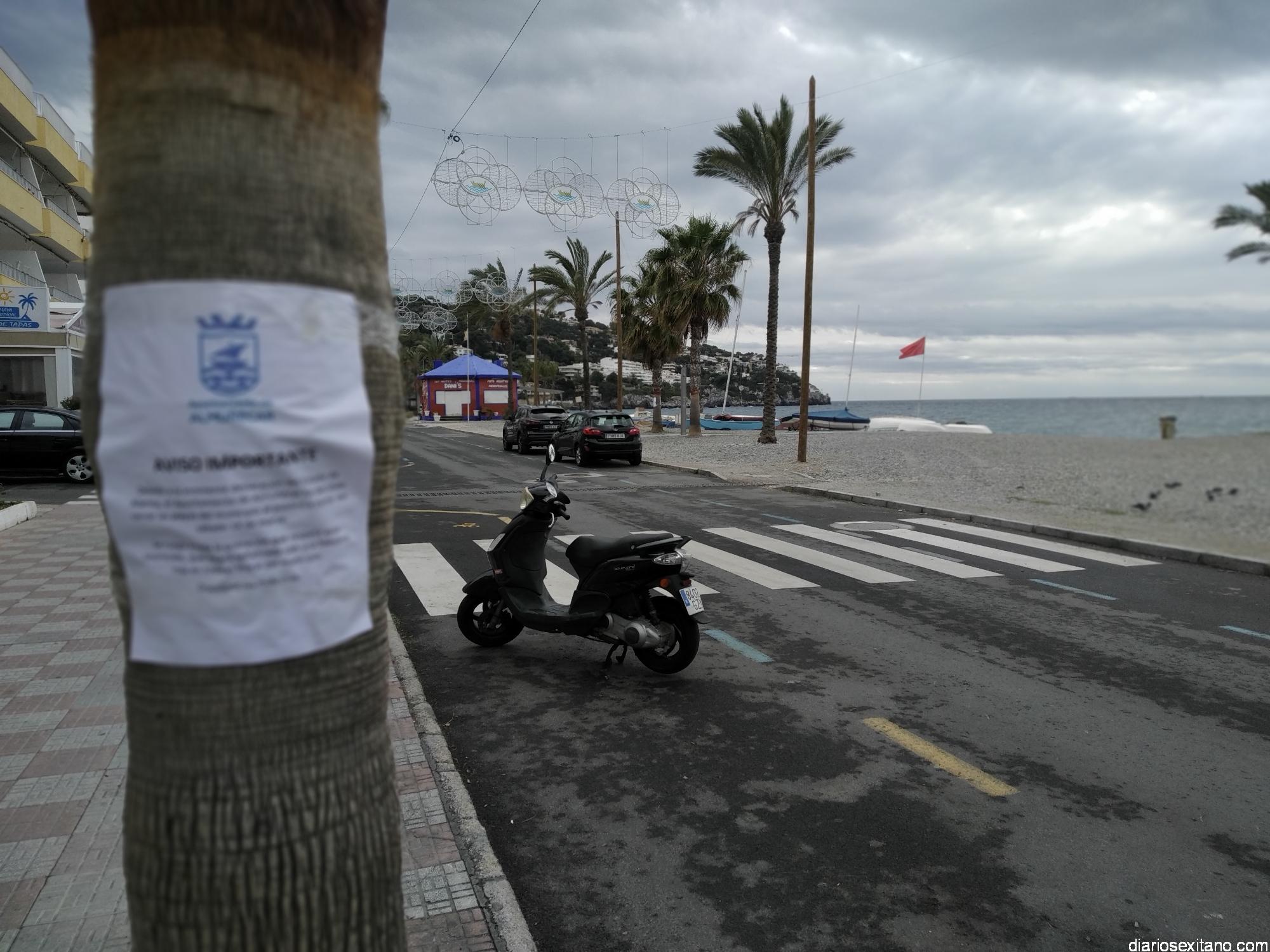Las imágenes de terrazas de la primera línea de playa con las mesas recogidas y cerradas. El silencio roto por algún coche esporádico y algunas colas en las puertas de establecimientos de alimentación, panadería o frutería por decisión de los propios clientes y guardando la distancia… son imágenes que se han visto en esta primera jornada laboral del estado de alerta en La Herradura.