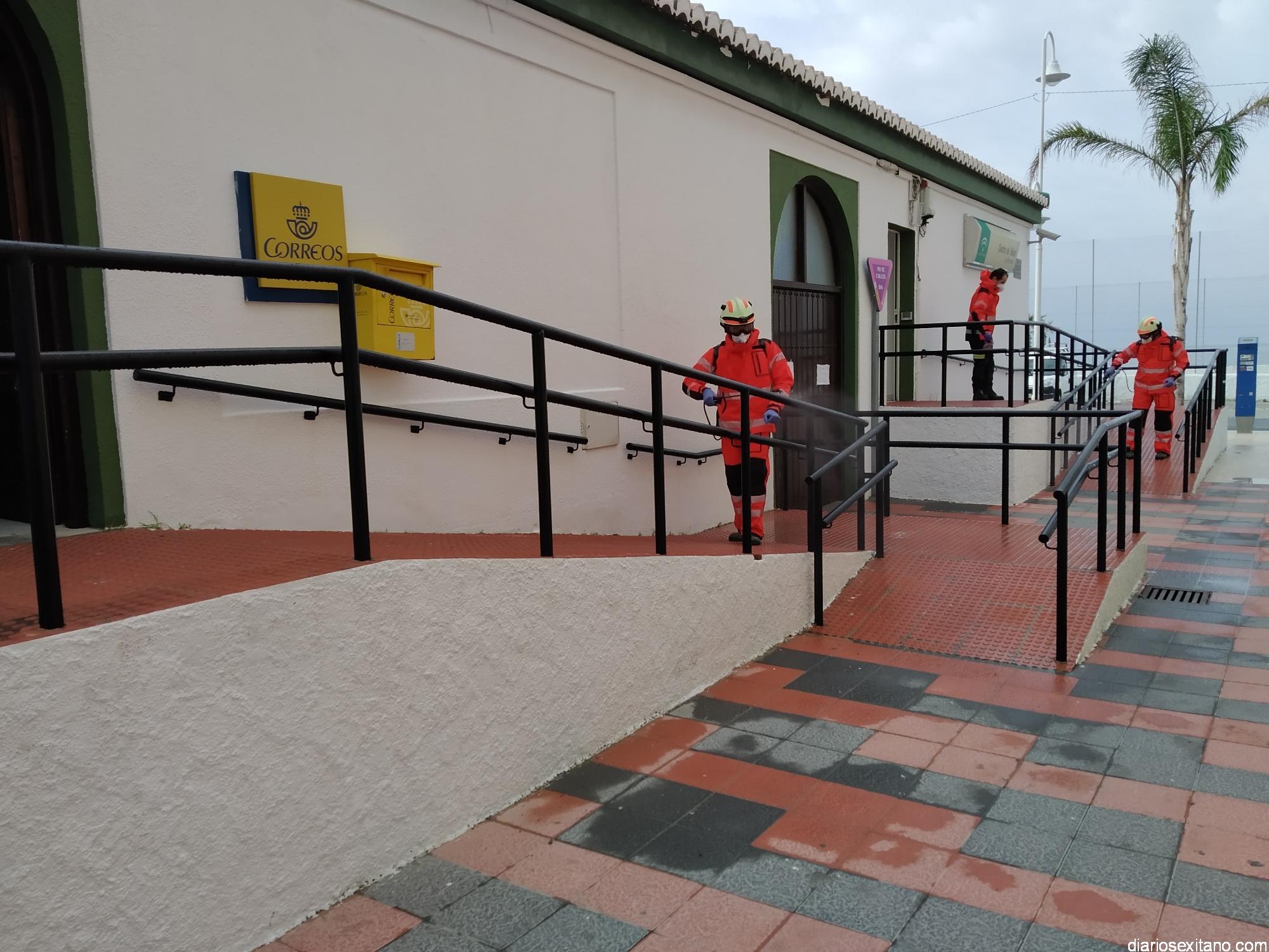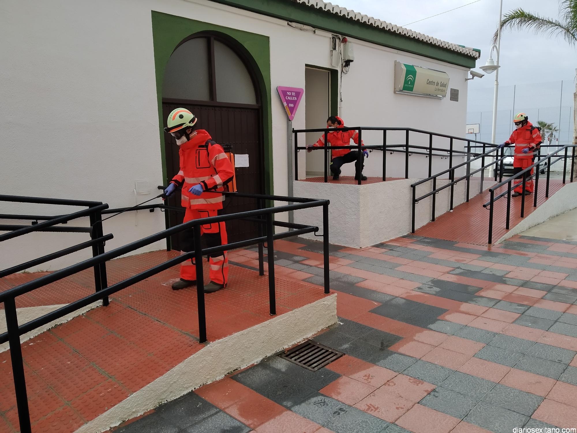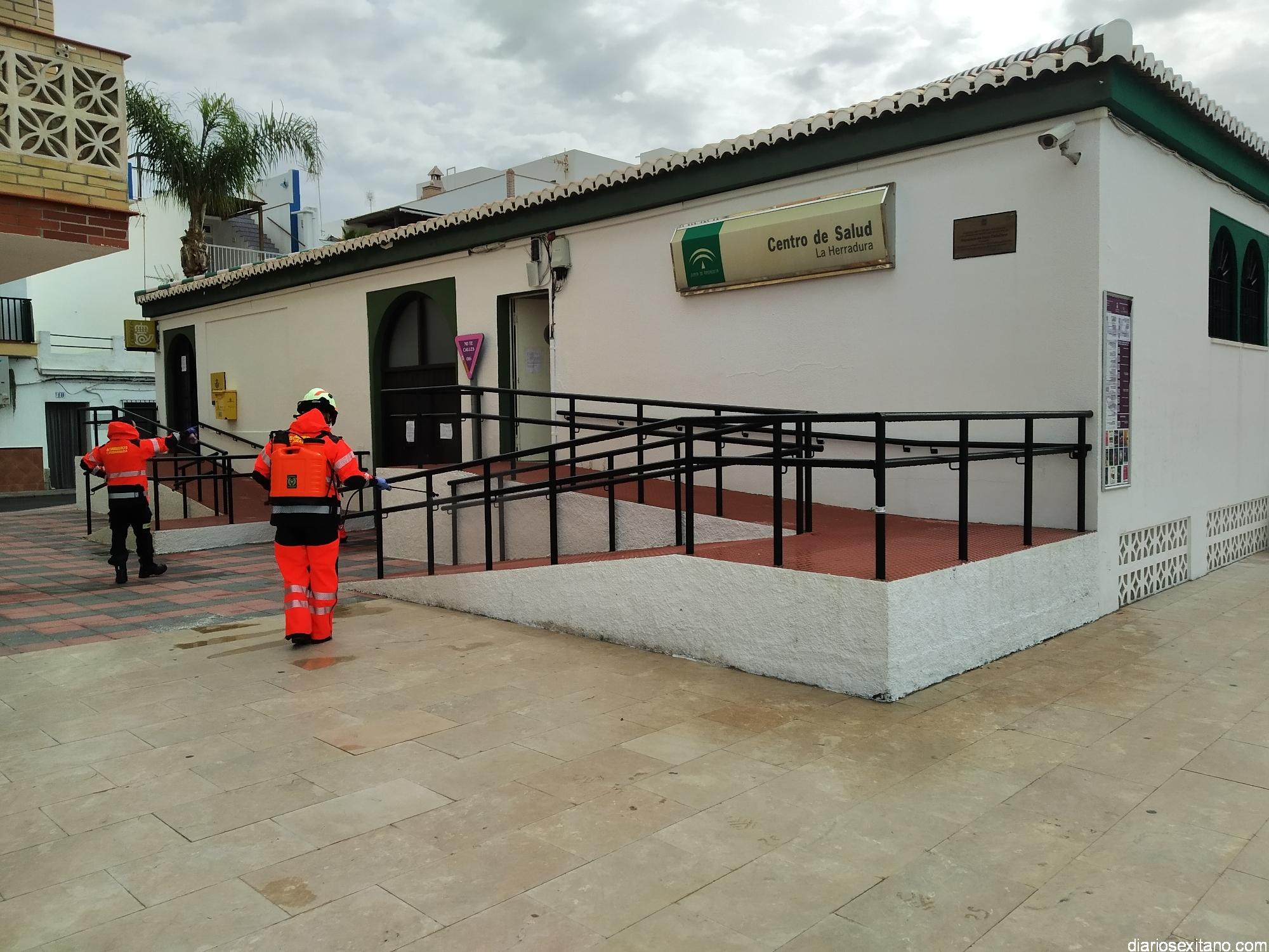 Los Bomberos de Almuñécar centran hoy las tareas de desinfección en los edificios municipales oficiales de La Herradura: Centro Cívico, Mercado Municipal, Centro de Salud o Correos. Tres efectivos se encargan de esta labor que llevan a cabo de forma “Voluntaria y altruista”, según informó el edil de Seguridad, Francisco Robles Rivas.