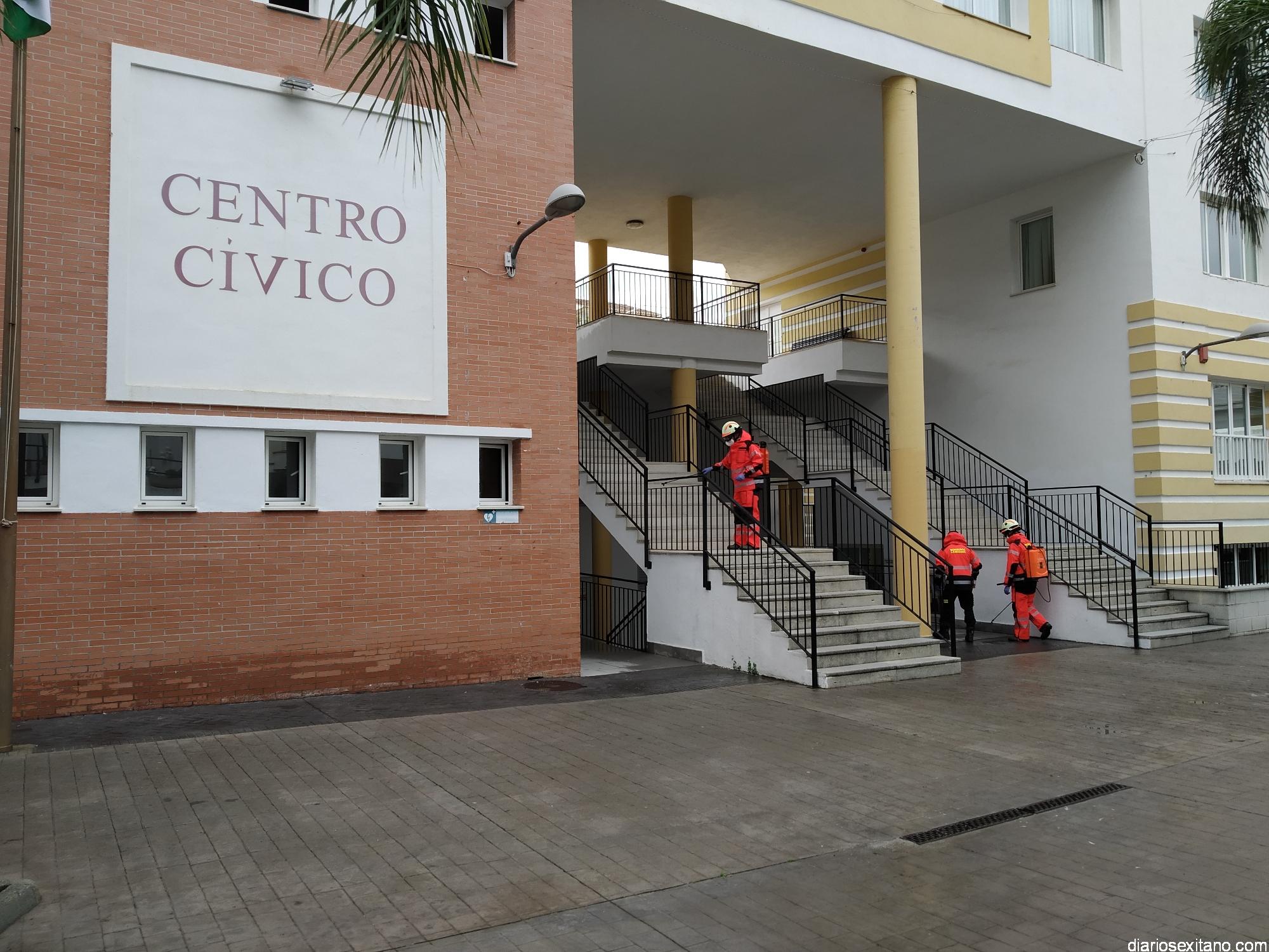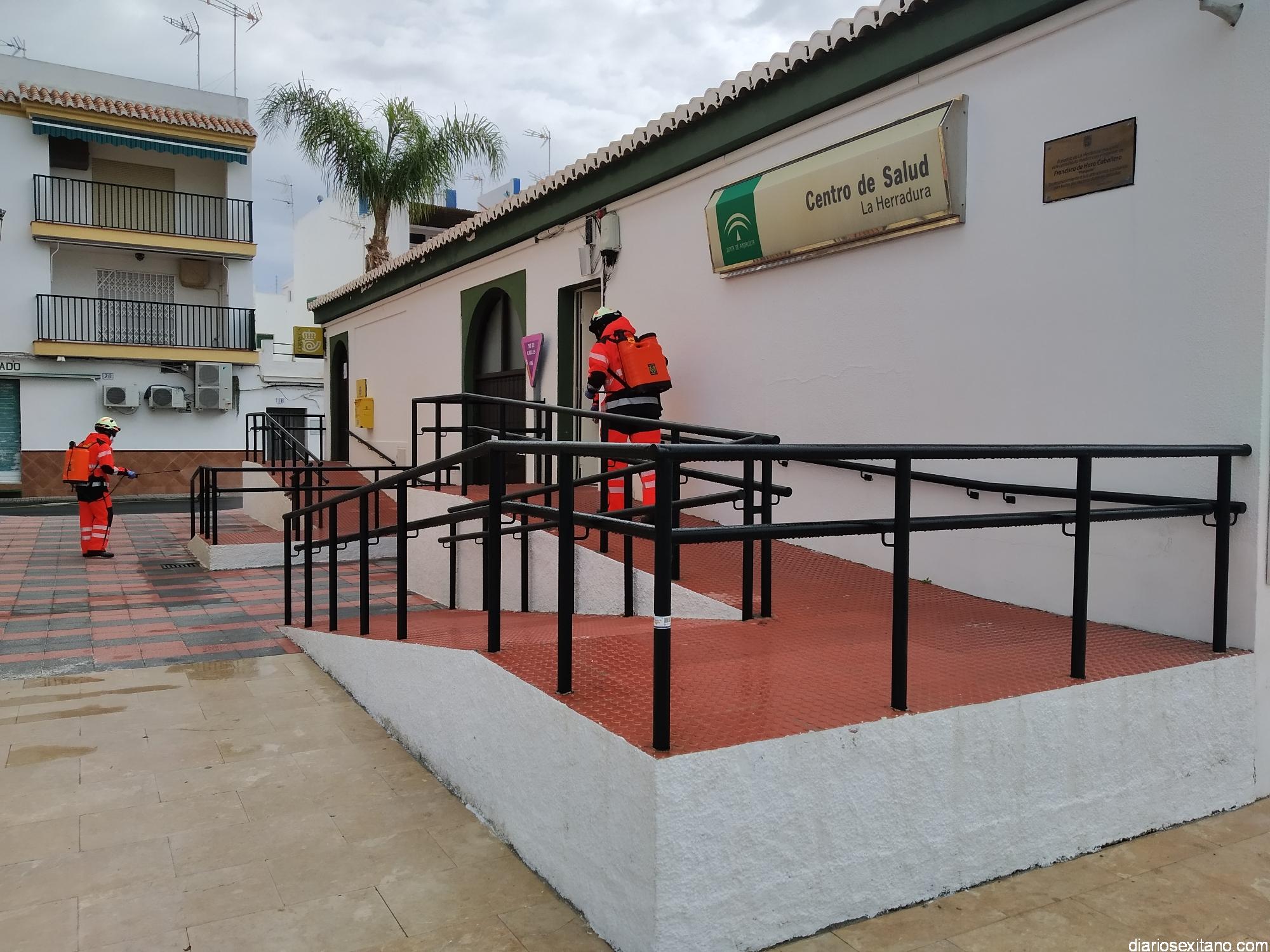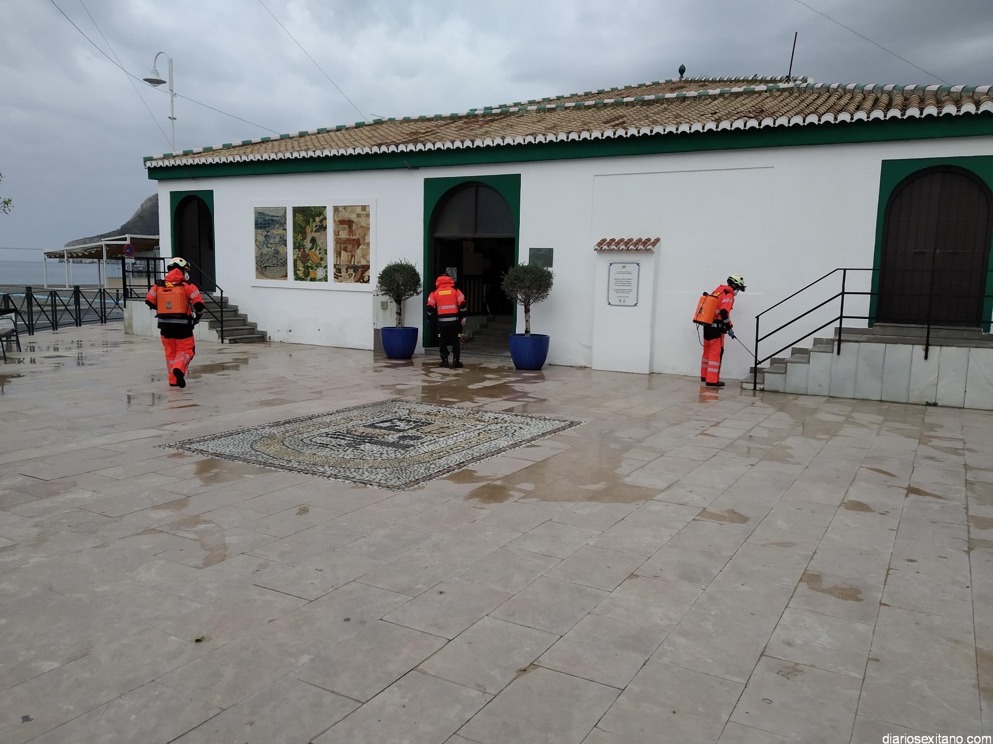 Los Bomberos de Almuñécar centran hoy las tareas de desinfección en los edificios municipales oficiales de La Herradura: Centro Cívico, Mercado Municipal, Centro de Salud o Correos. Tres efectivos se encargan de esta labor que llevan a cabo de forma “Voluntaria y altruista”, según informó el edil de Seguridad, Francisco Robles Rivas.