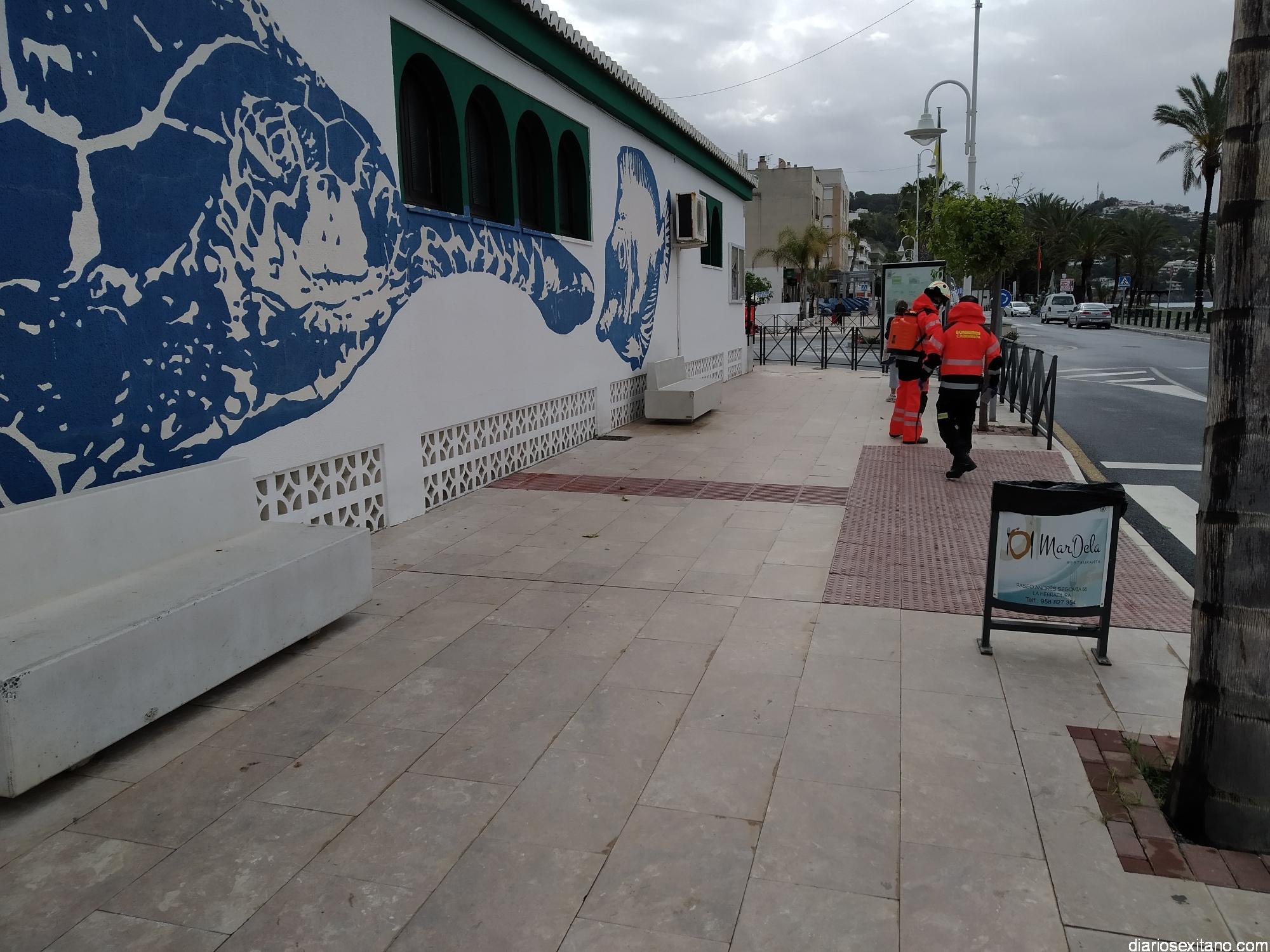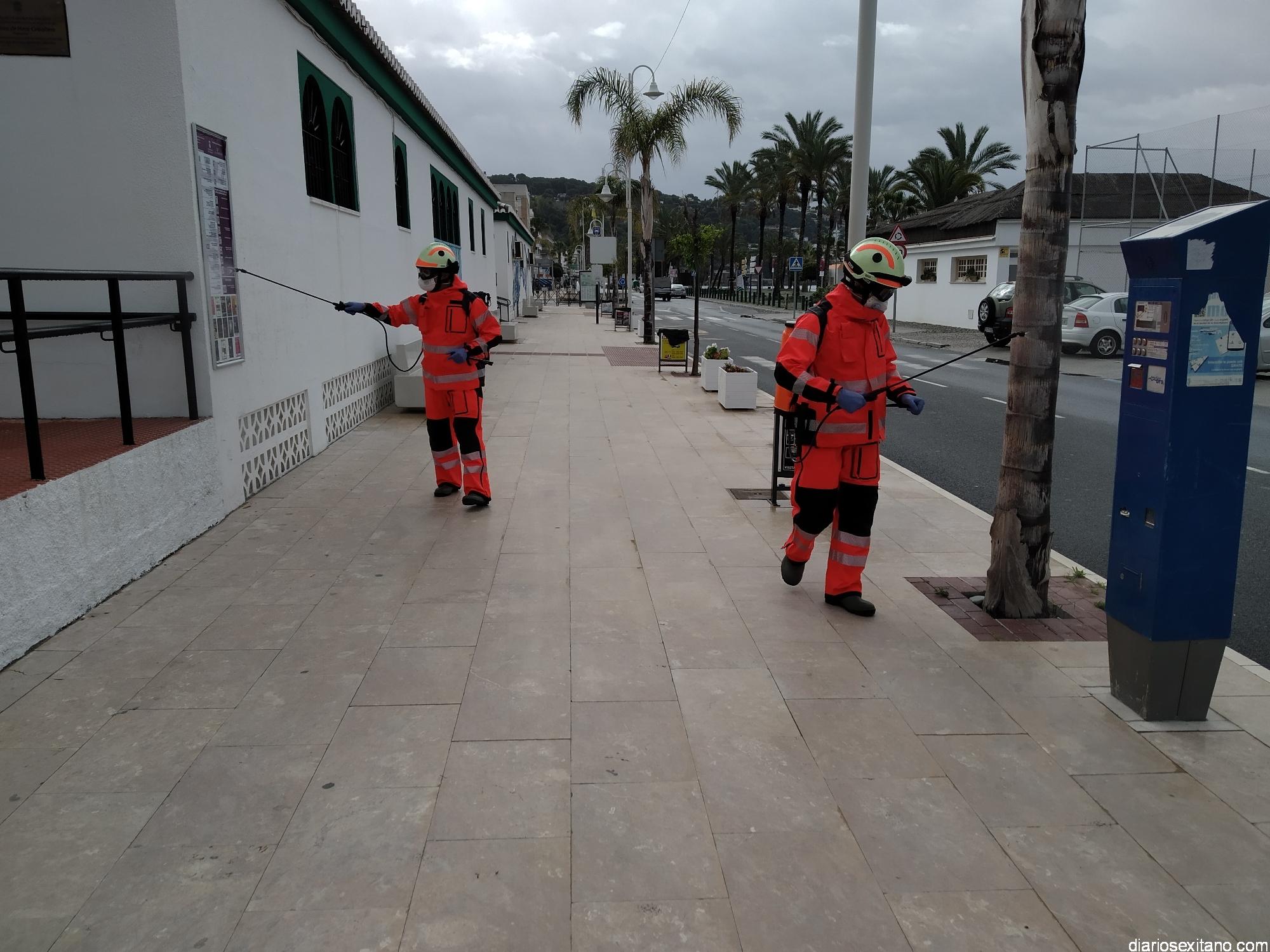 Por su parte el jefe de los Bomberos sexitanos explicó que “cada día tres efectivos diferentes llevamos a cabo esta tarea desde el parque de Bomberos de Almuñécar. Aprovechando que contamos con material y medios adecuados para realizar esta labor lo ofrecimos y en ello estamos. El lunes trabajamos en la Estación de Autobuses y las jefaturas de Policía Local, Guardia Civil y, este martes, estamos volcados en los edificios oficiales de La Herradura. Iremos desplazándonos a todos en horario de mañana”, indicó Varela.