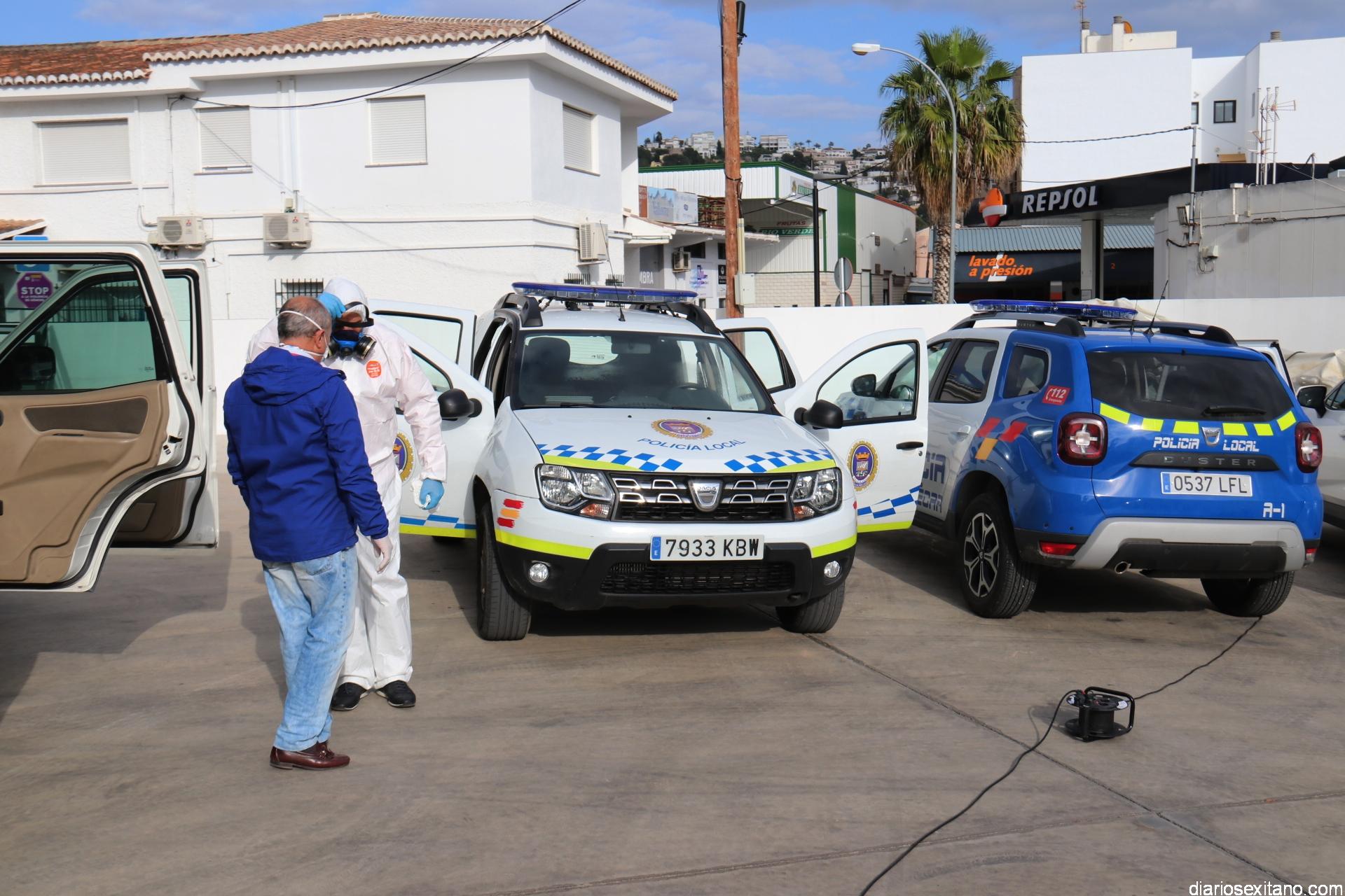 La empresa sexitana especializada en labores de desinfección y plagas, “Sanisur”, ha realizado esta tarde la desinfectación de forma altruista de todos los vehículos de la Policía Local y el parque de Bomberos de Almuñécar.