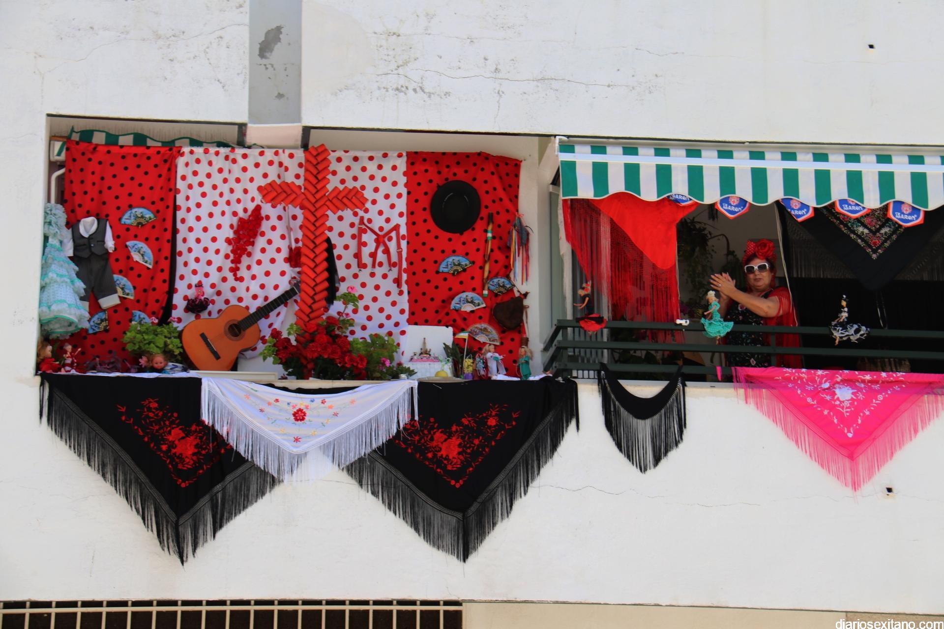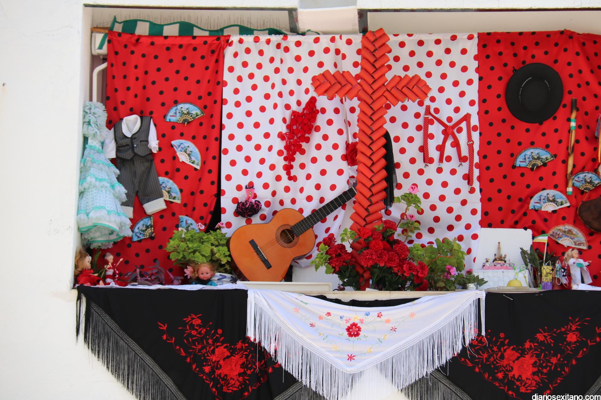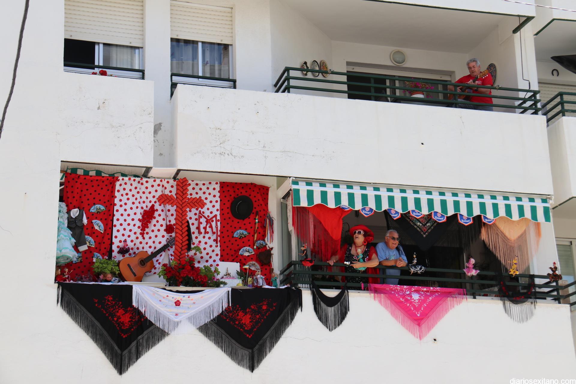 La terraza del piso de Matilde y Antonio es un referente de alegría, no solamente para su casa, sino para todos los vecinos de la urbanización El Camping y aquellos que pasan por su calle. Fieles a las tradiciones, este año no pudieron hacer su cruz itinerante, en el interior de su coche, como lo hicieron en los últimos años con gran éxito de acogida, y por ello han montado su cruz en la terraza.