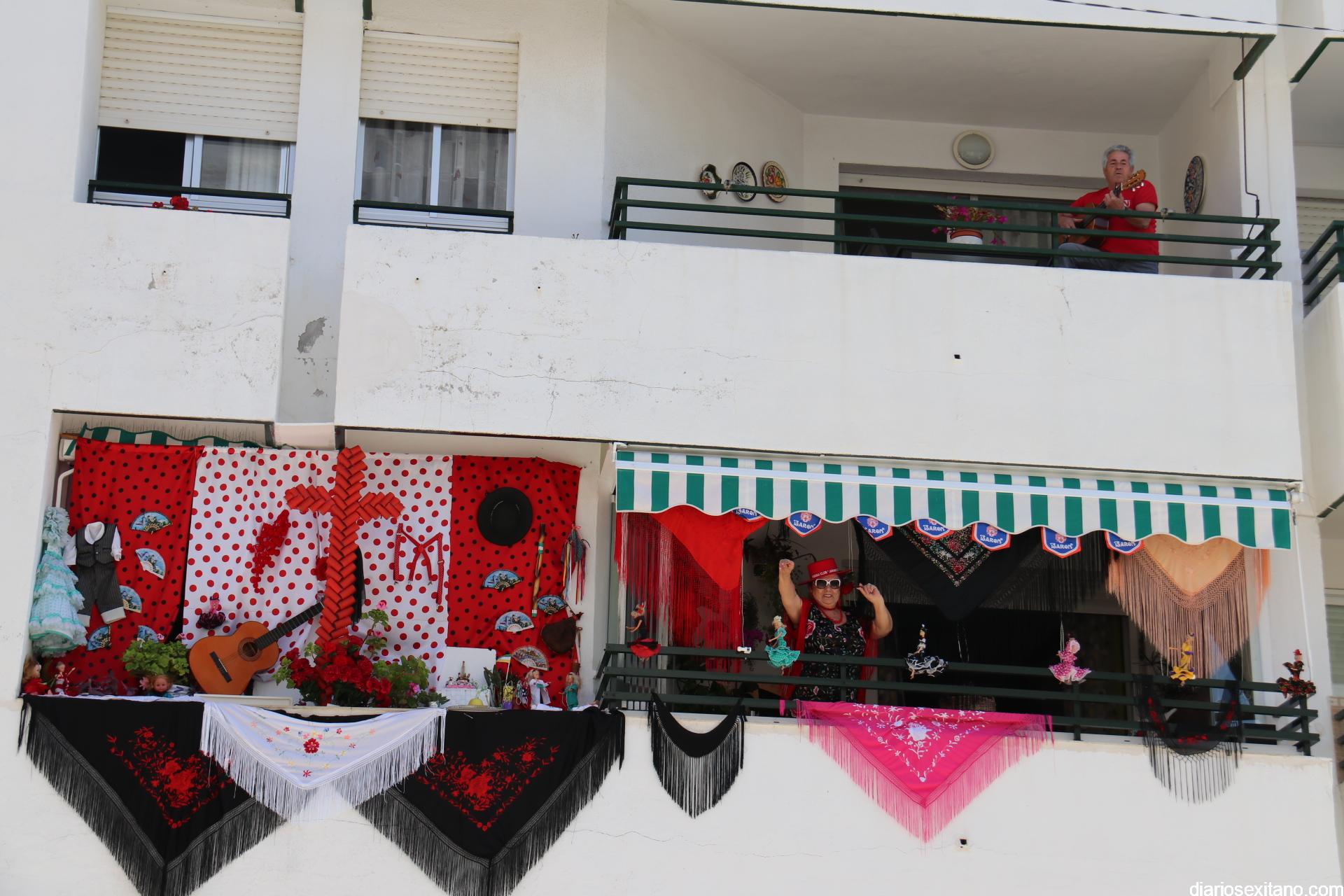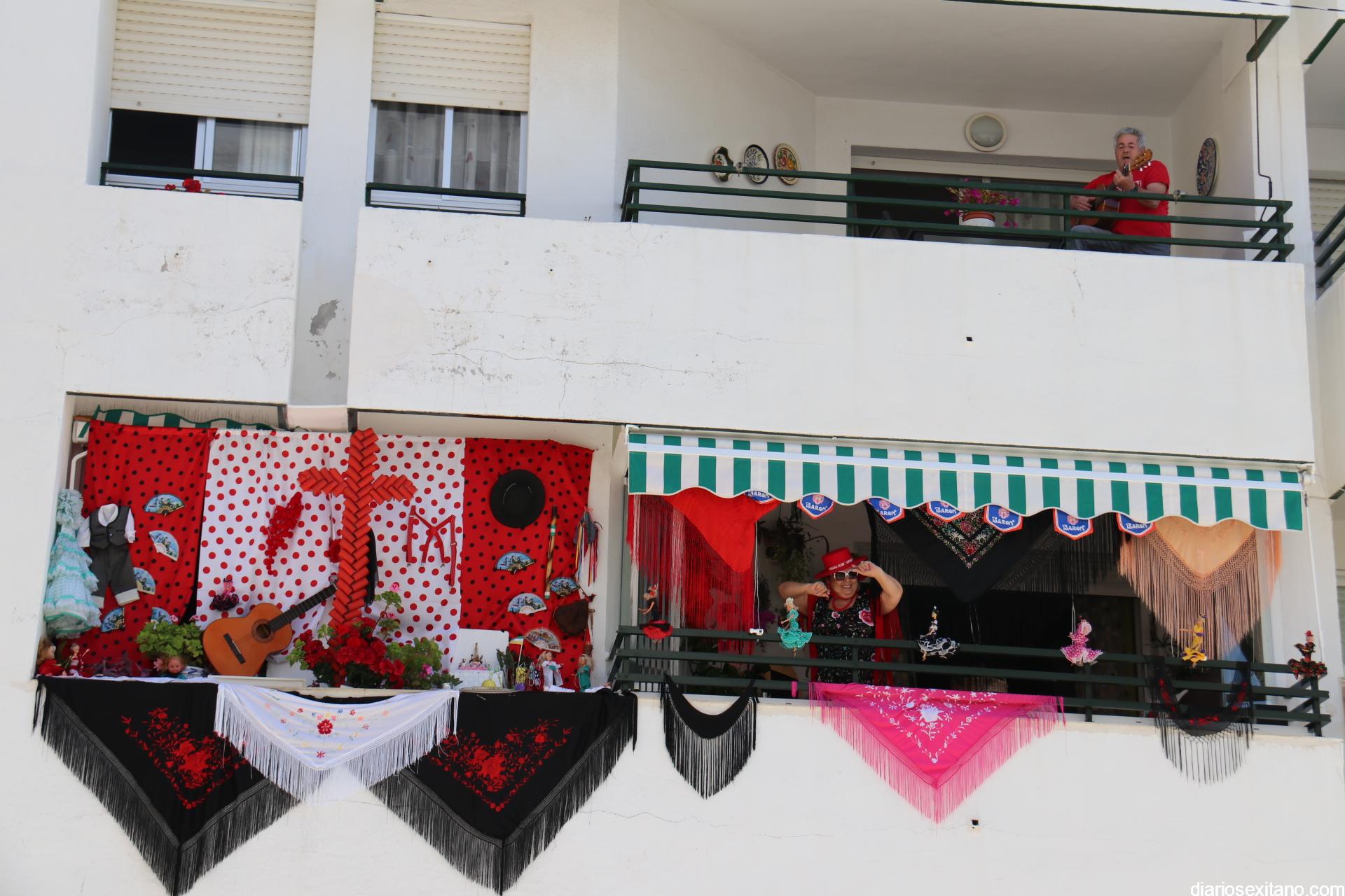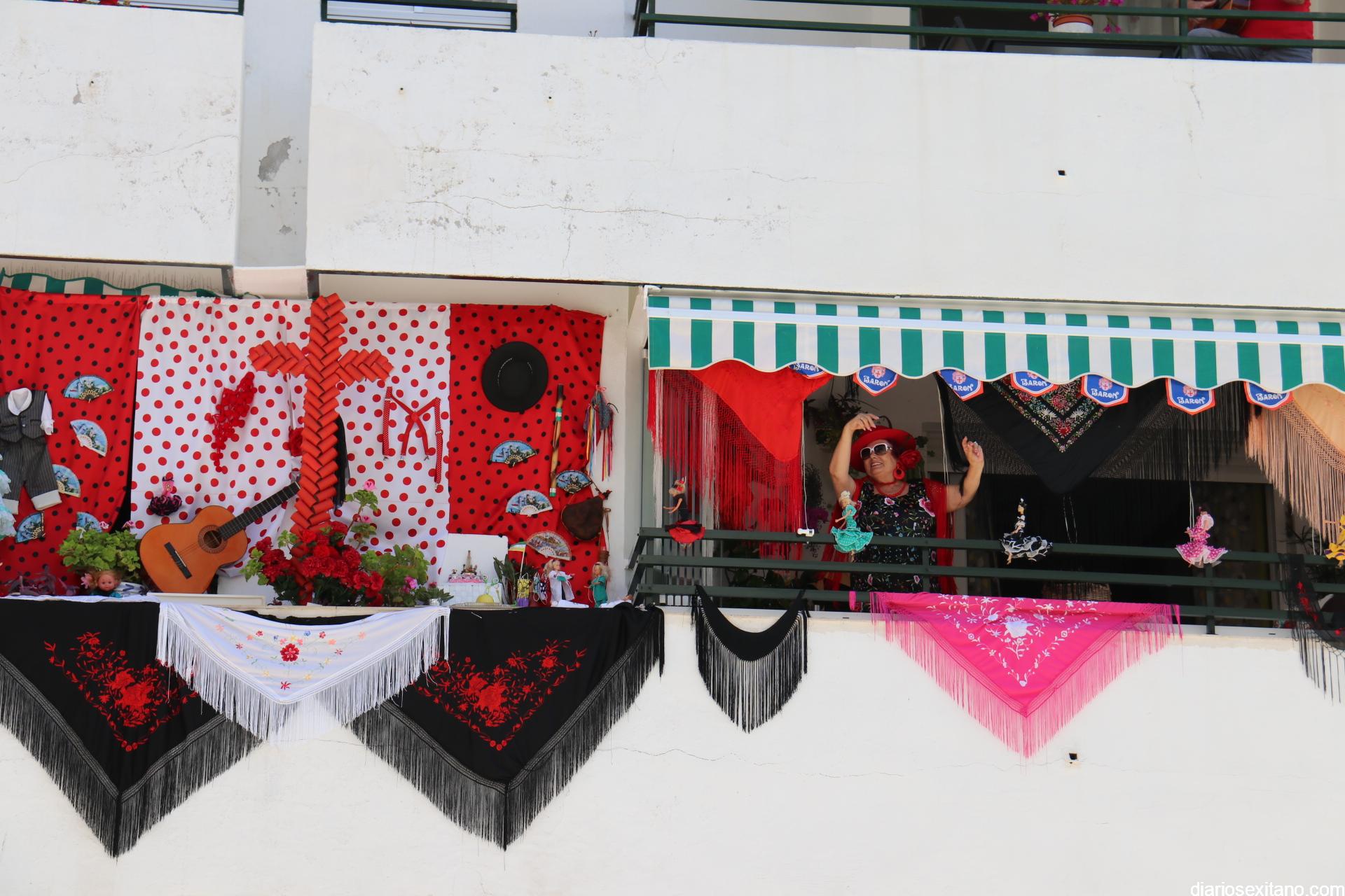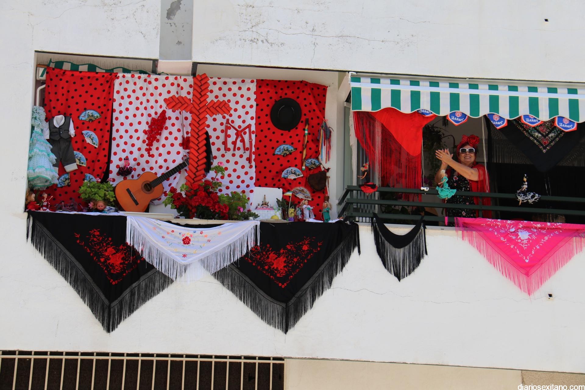 La terraza del piso de Matilde y Antonio es un referente de alegría, no solamente para su casa, sino para todos los vecinos de la urbanización El Camping y aquellos que pasan por su calle. Fieles a las tradiciones, este año no pudieron hacer su cruz itinerante, en el interior de su coche, como lo hicieron en los últimos años con gran éxito de acogida, y por ello han montado su cruz en la terraza.