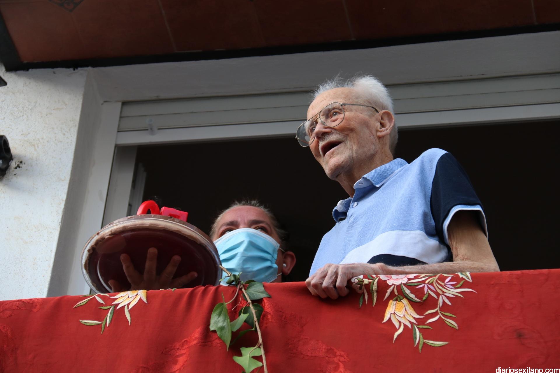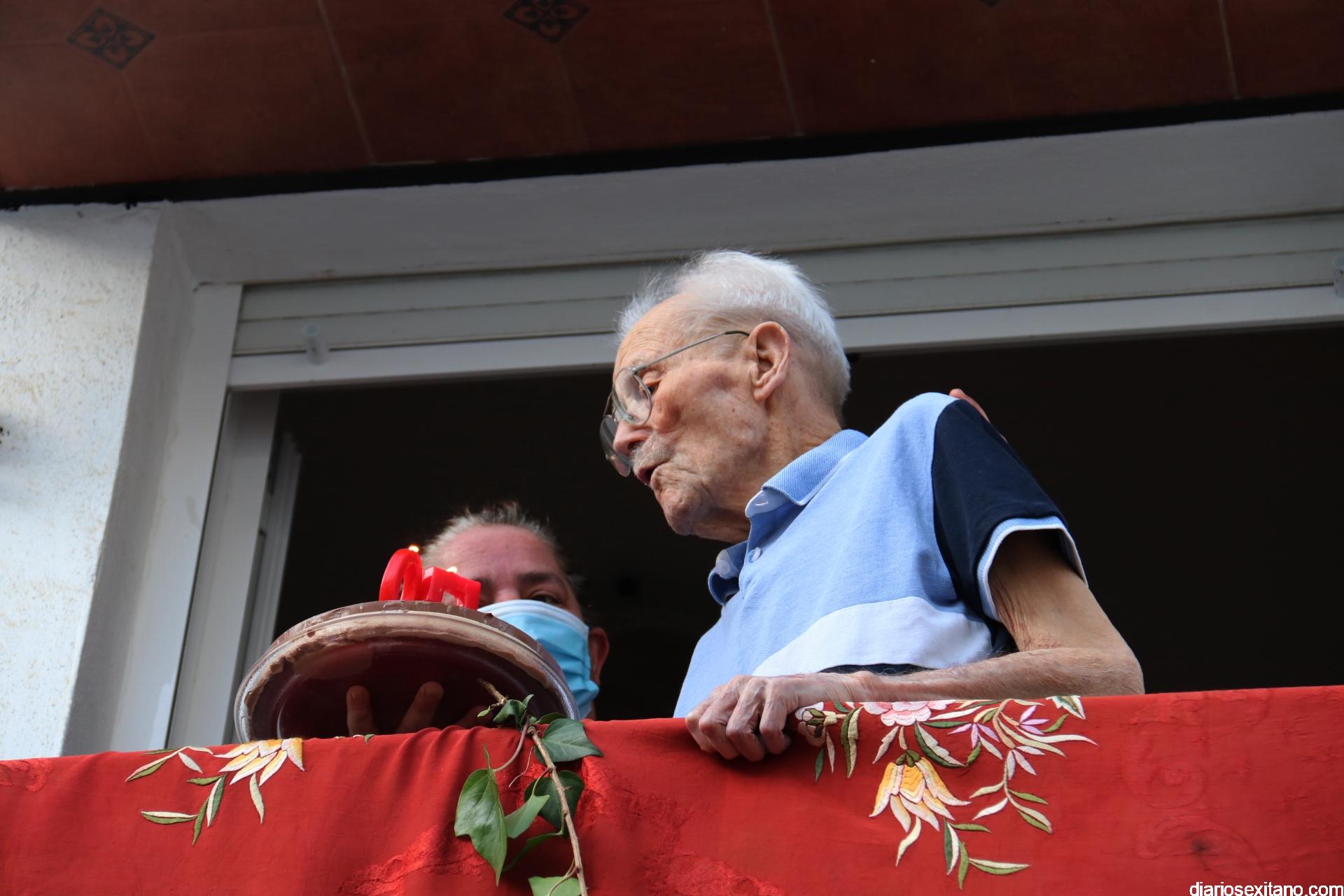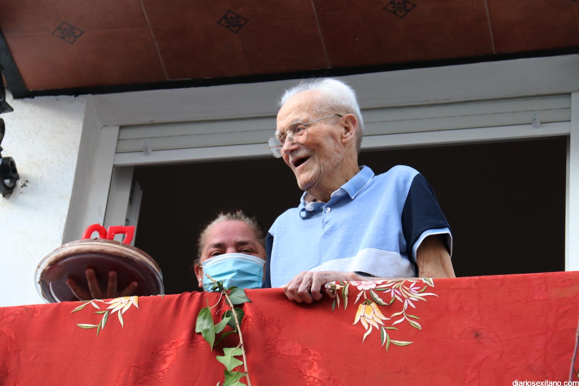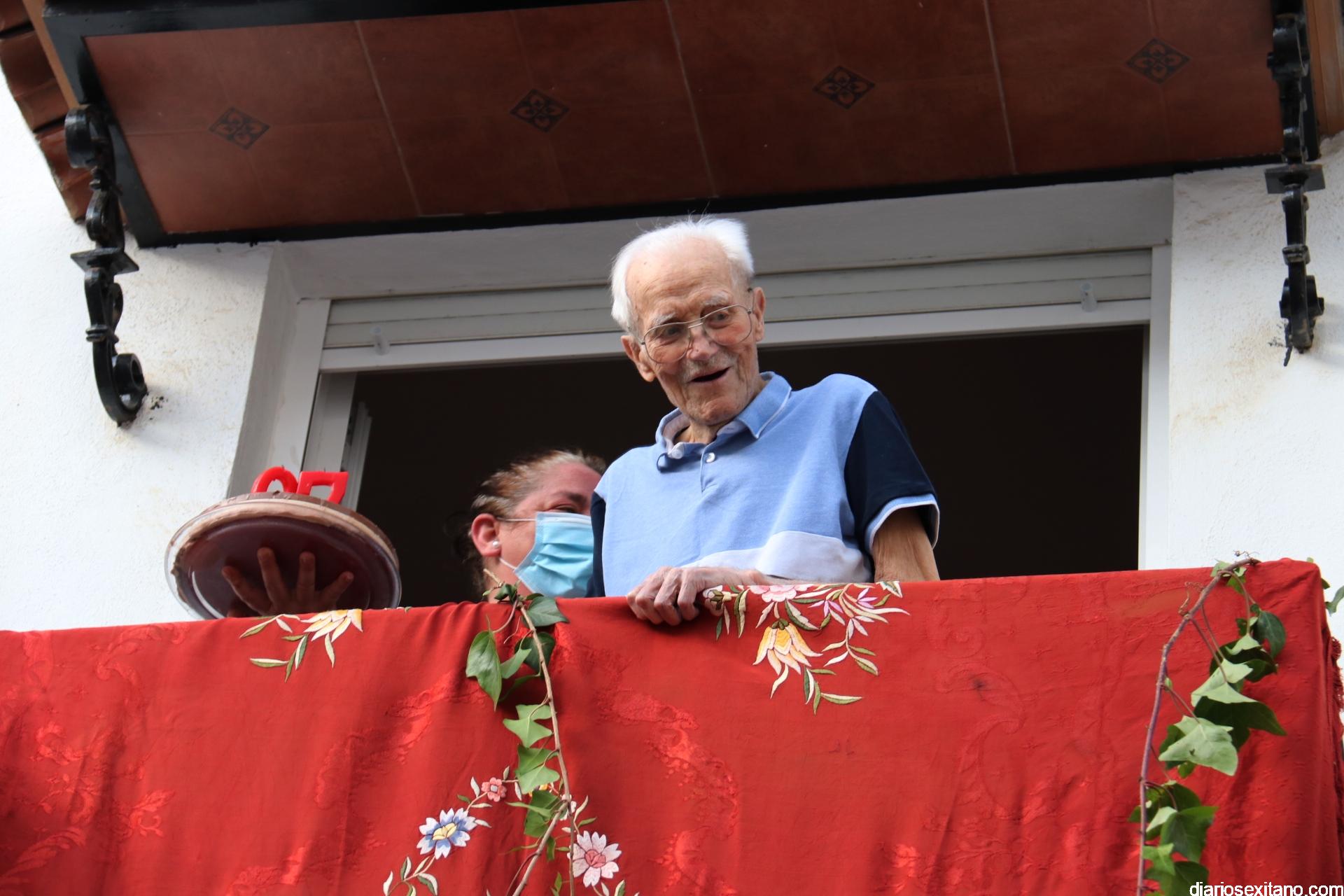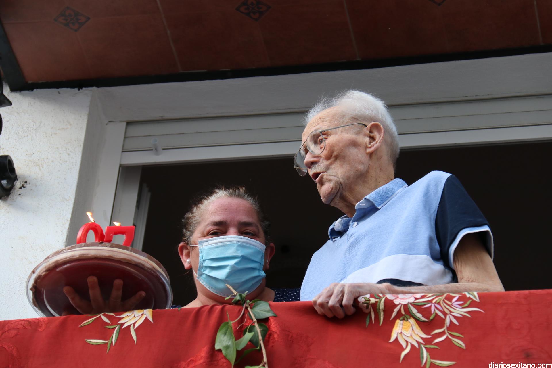 Su hijo, Antonio, residente en Almería, no pudo asistir al acto debido a la cuarentena pero pudo compartir el momento gracias a la videollamada que le ofreció la vecina, Pura. Fueron momentos únicos e inolvidables, llenos de alegría y admiración hacía el homenajeado.