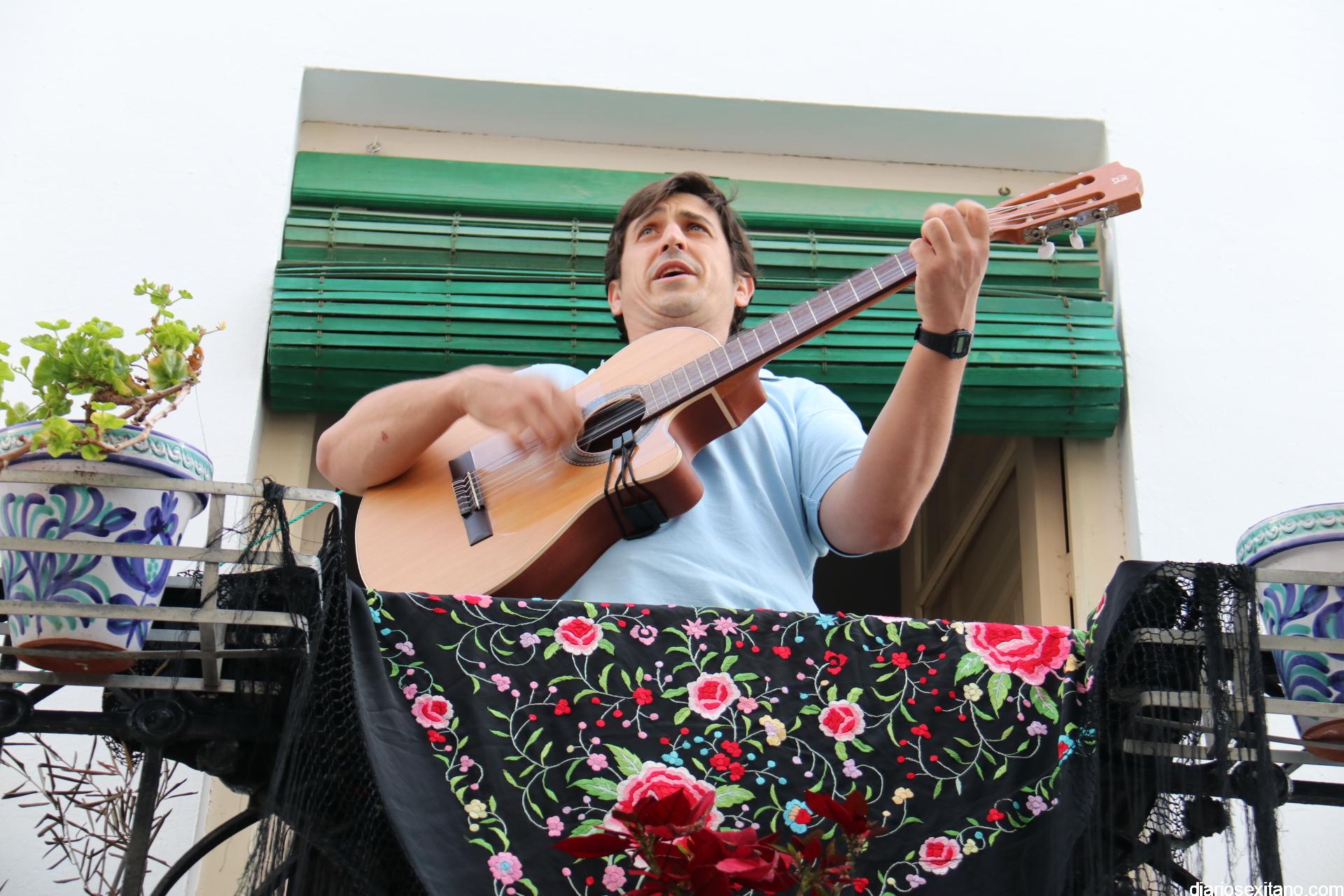 En un balcón, frente al homenajeado, Homero Barbero, cantó y tocó la guitarra; en otro, Consuelo y Jorge, tocaban los palillos y cantaban, al igual que otros muchos vecinos colindantes como Juan Antonio, María,…