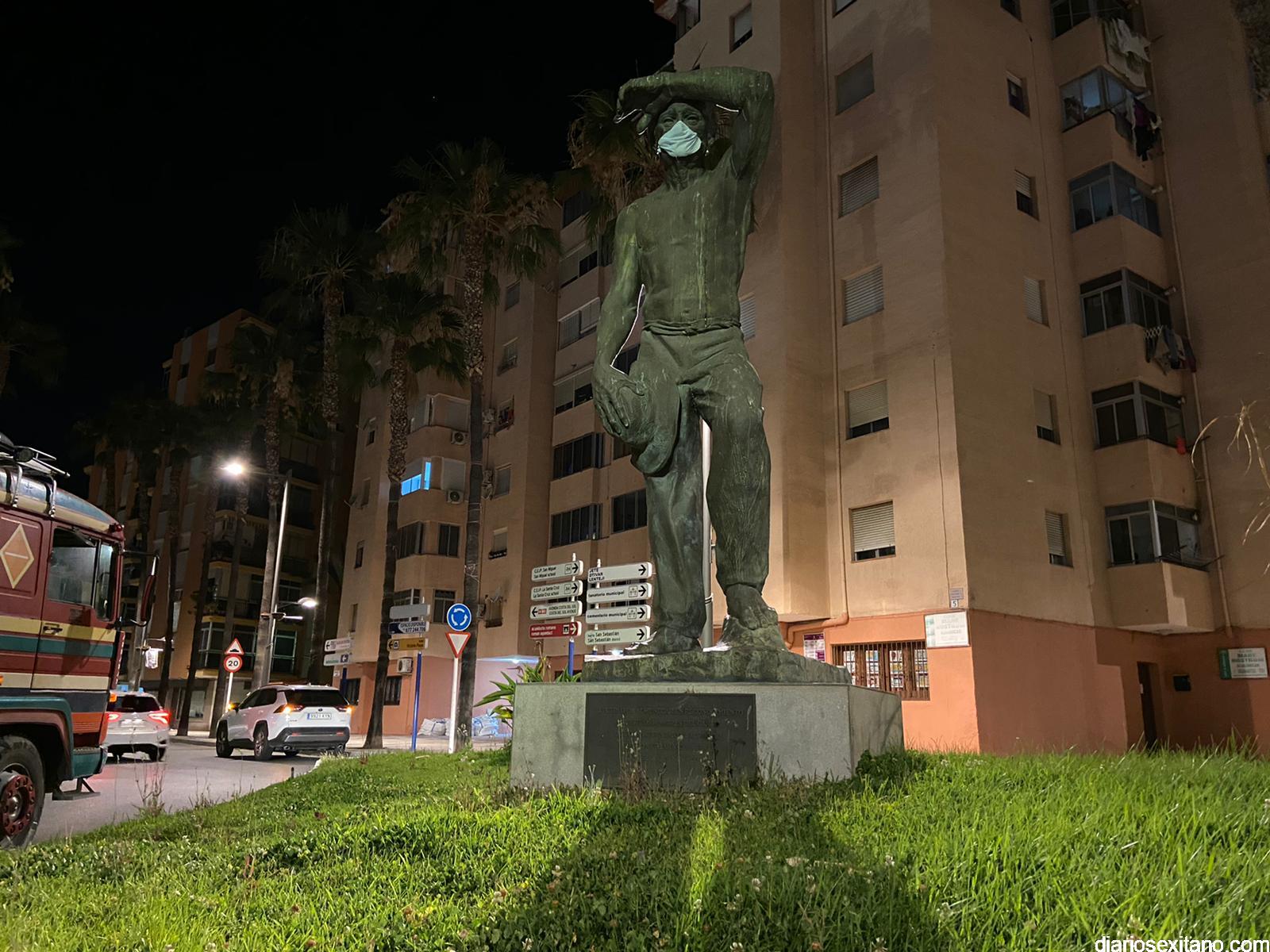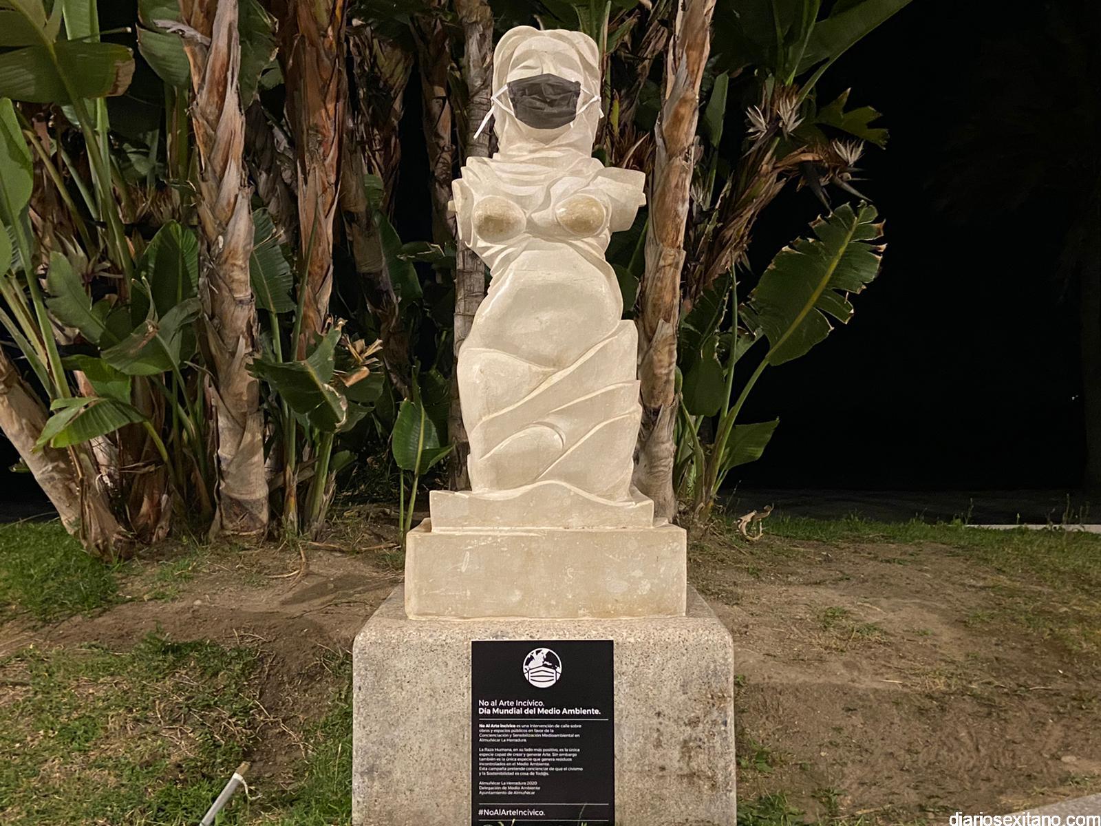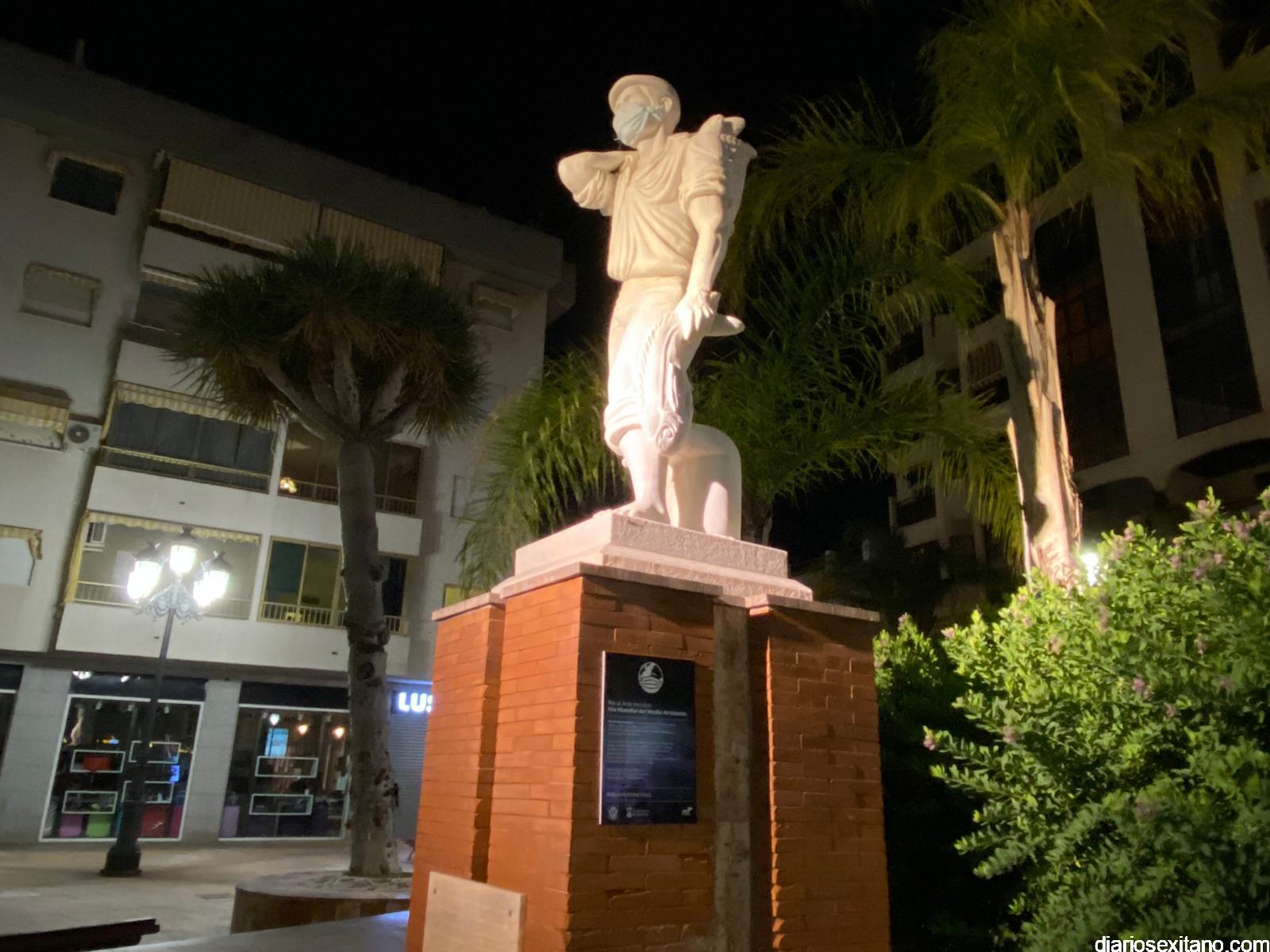 Esta mañana han amanecido los principales monumentos o esculturas de Almuñécar con mascarillas provocando con ello una llamada a atención a los ciudadanos para que no abandonen las mascarillas y guantes. “La utilización de esculturas y obras de arte quiere simbolizar que el ser humano, que es la única especie creadora de Arte también puede, en su lado más negativo, destrozar la “Obra de Arte que es la Naturaleza”, indicó Aragón.