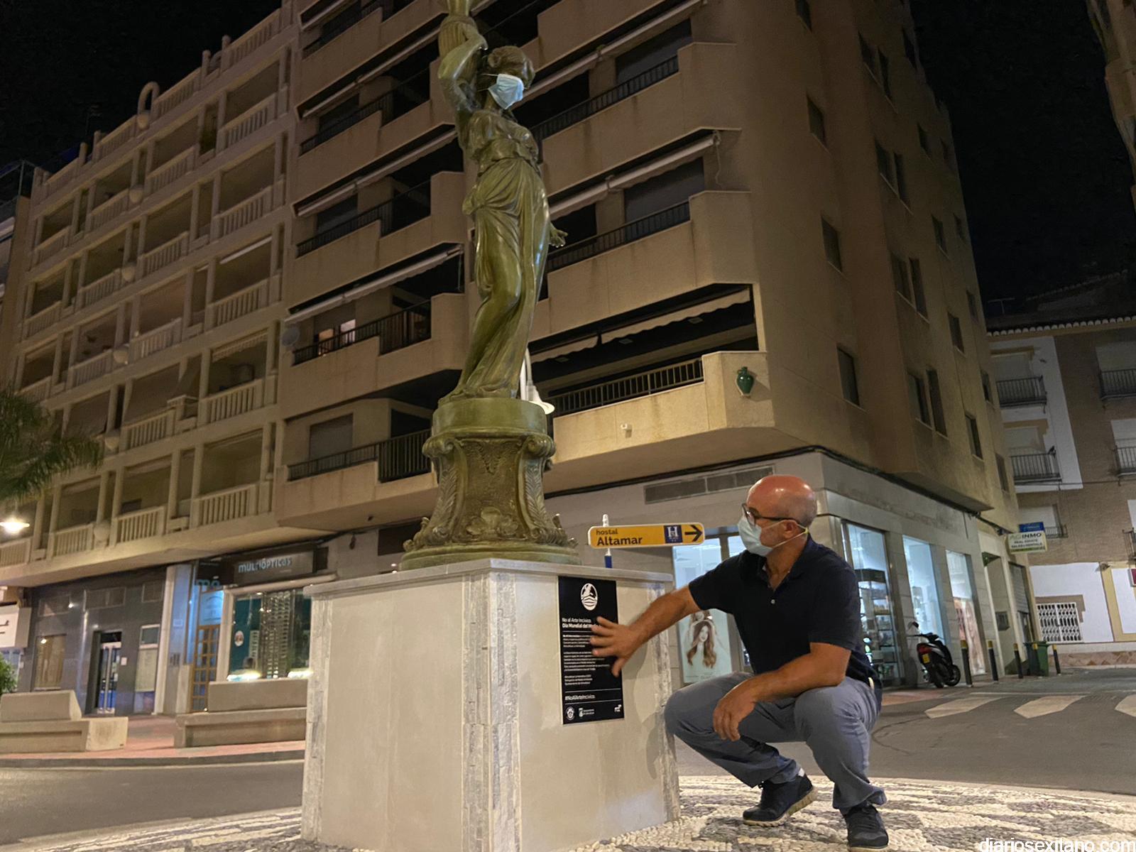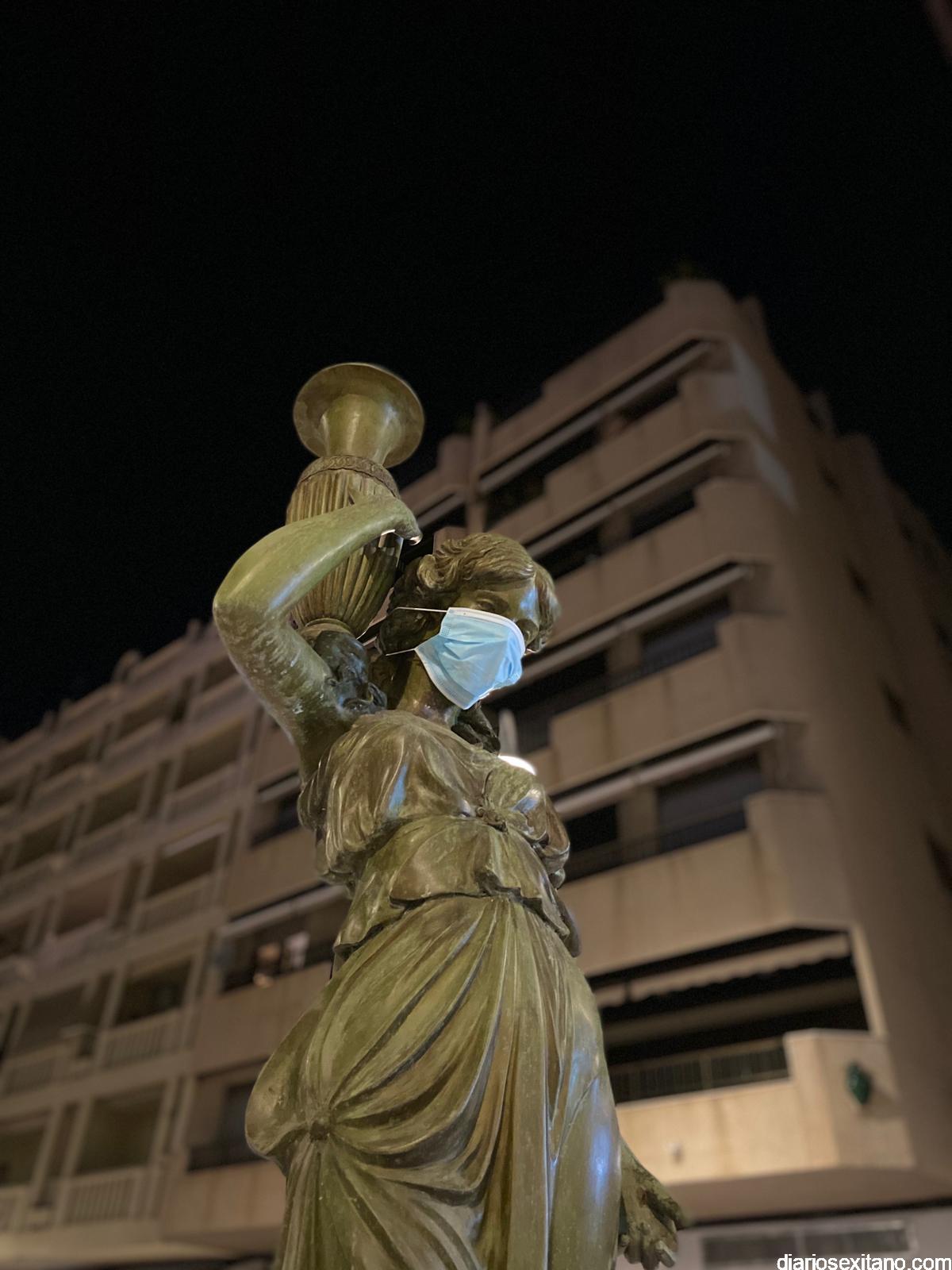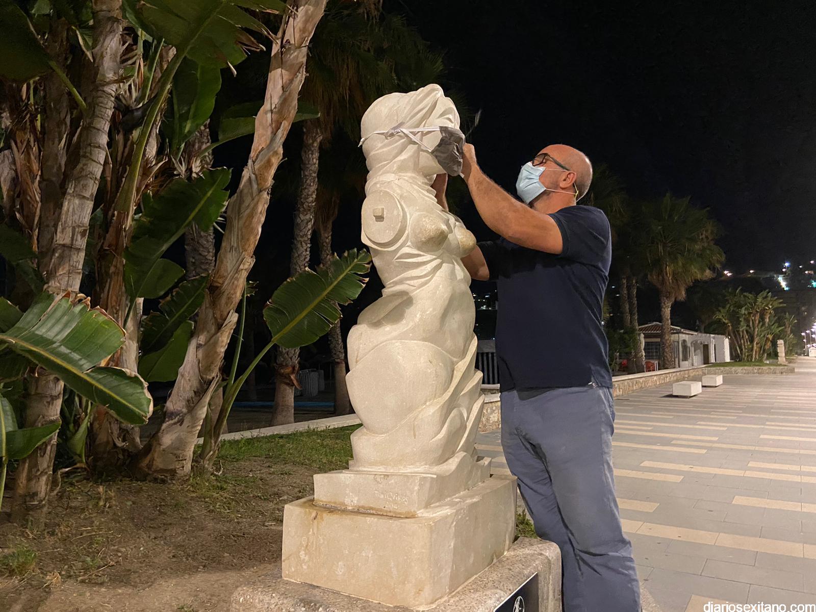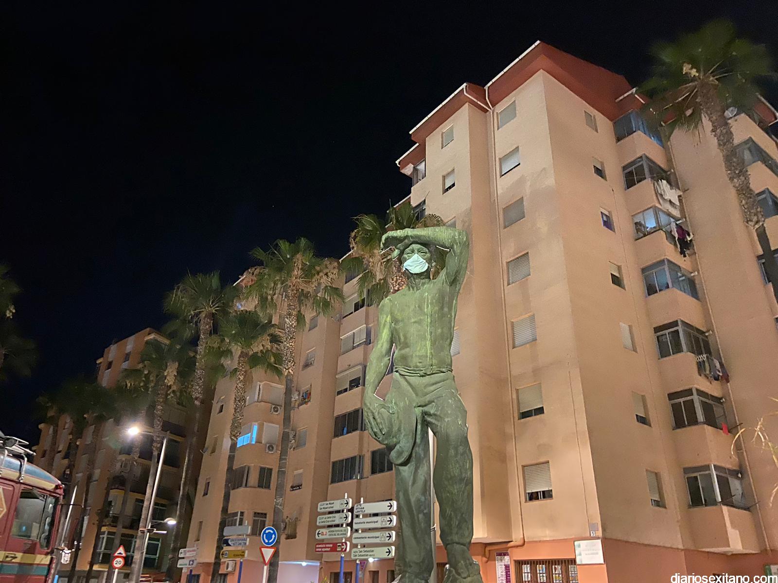 Esta mañana han amanecido los principales monumentos o esculturas de Almuñécar con mascarillas provocando con ello una llamada a atención a los ciudadanos para que no abandonen las mascarillas y guantes. “La utilización de esculturas y obras de arte quiere simbolizar que el ser humano, que es la única especie creadora de Arte también puede, en su lado más negativo, destrozar la “Obra de Arte que es la Naturaleza”, indicó Aragón.