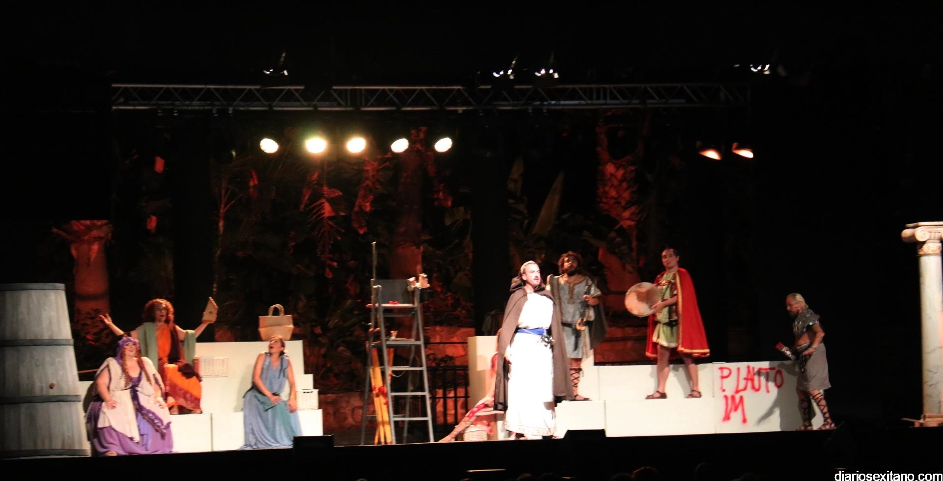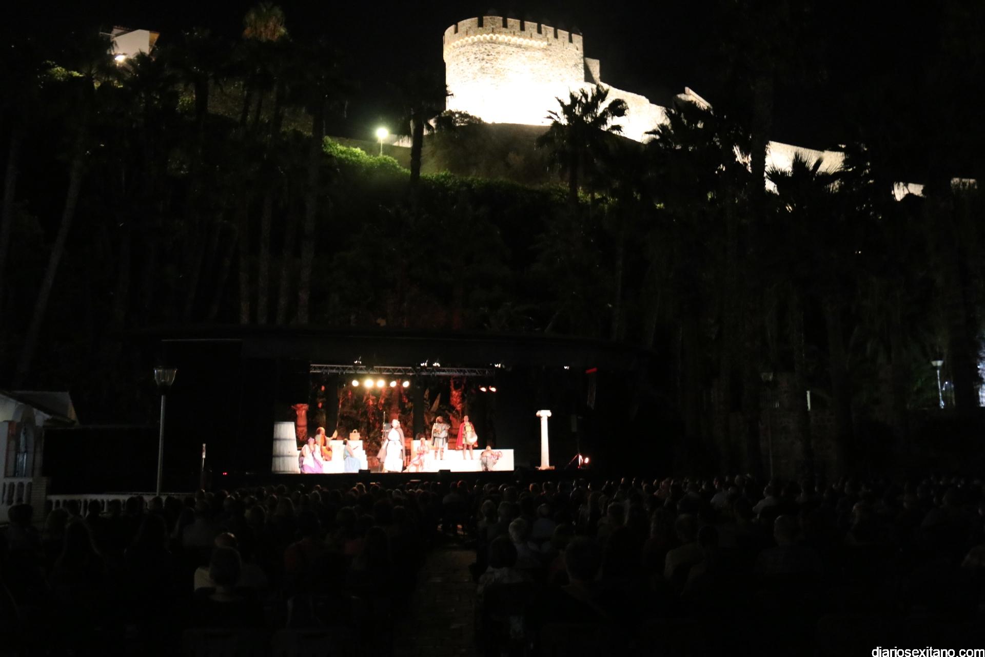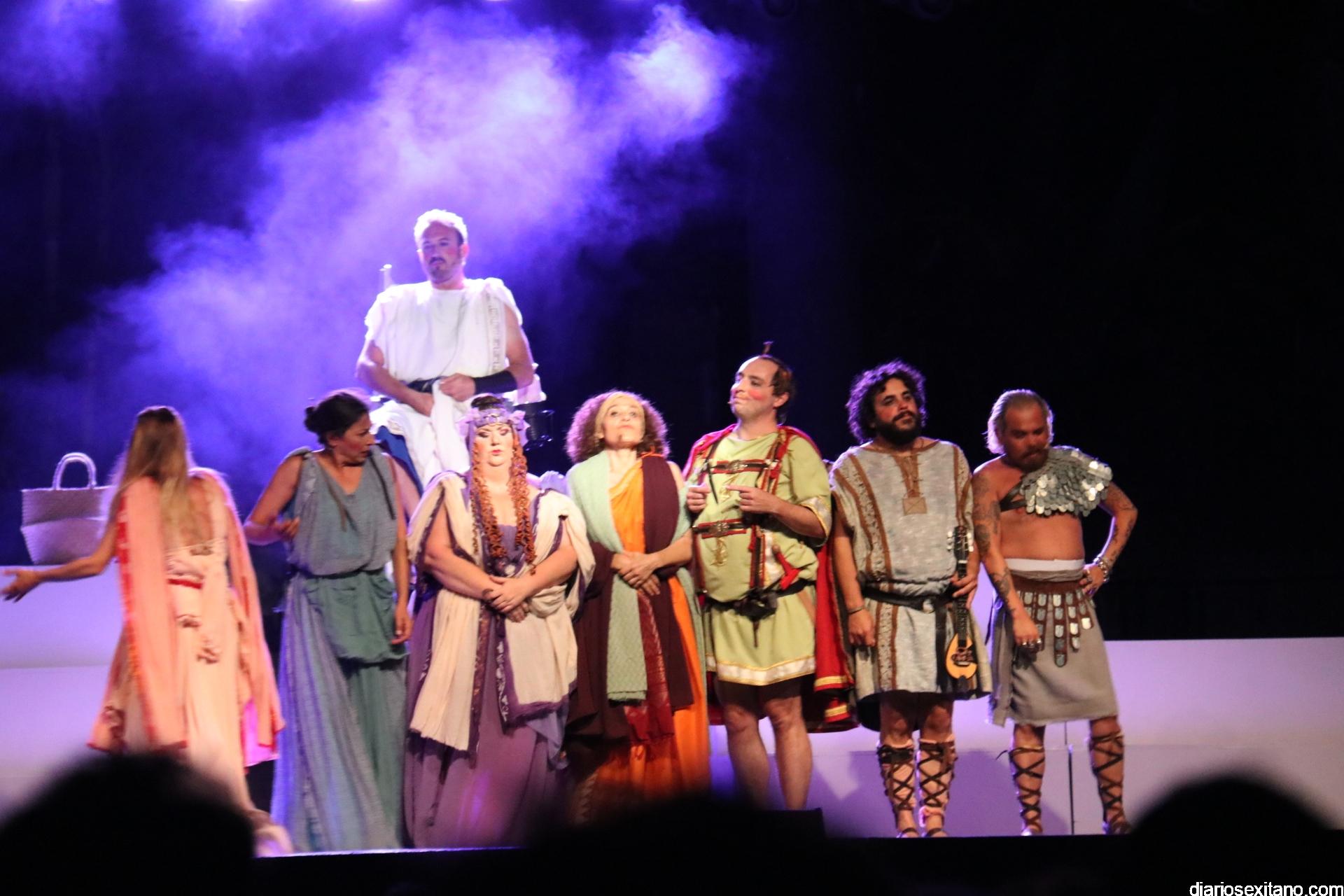 El XII Festival de Teatro Grecolatino de Almuñécar “Sexi Firmum Iulium” comenzó con un éxito total, artístico y de público. Una gran y prolongada ovación, que obligaron a los actores a salir de nuevo al escenario para agradecer los aplausos, finalizaba el espectáculo tras disfrutar con la representación de la obra “La Cistellaria (cestita) de Plauto”, bajo la dirección de Pepe Quero, quién también recibió los aplausos del público y actores. En un espacio y ambiente estupendo y en un escenario como el auditorio del parque El Majuelo, junto a la factoría de salazones y bajo el Castillo de San Miguel, que tampoco desmereció la ambientación a ediciones anteriores dada la rica historia sexitana, tal y como recordó el edil de Cultura, Alberto García Gilabert, durante las palabras iniciales de bienvenida al festival.