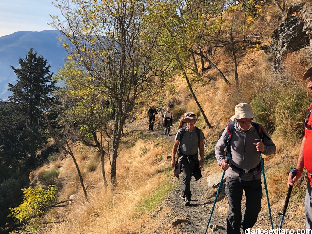 Esta ruta, que se realizó por el sendero GR-7 que une Cañar hasta Pampaneira, pasando por Soportújar, donde los participantes disfrutaron de preciosas vistas de los picos de Sierra Nevada y el Valle de Poqueira. Fue un recorrido por zonas recónditas , acequias y espectaculares por el buen camino balizado y la buena imagen que presenta en estas fechas de otoño la zona.
