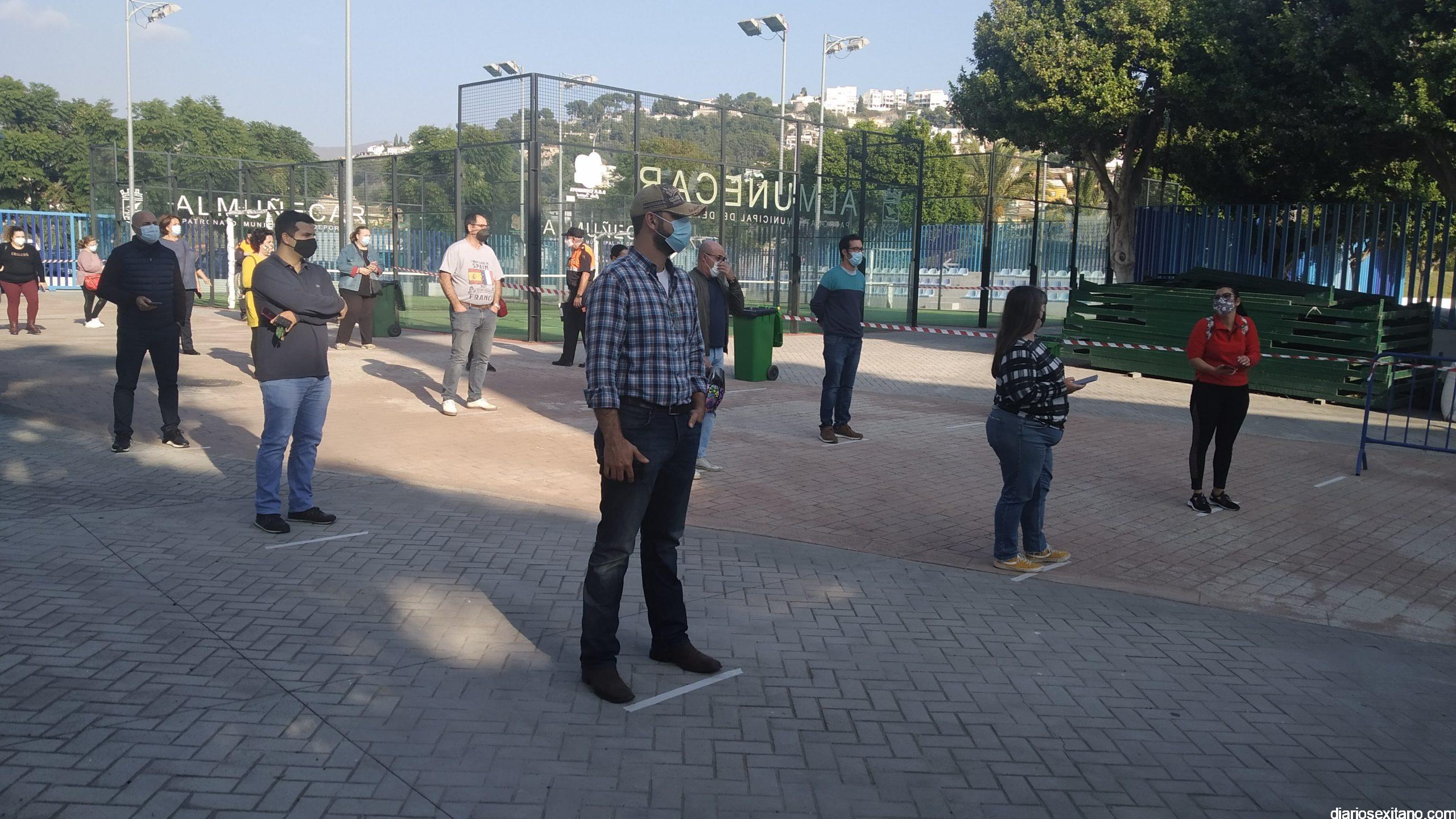 El operativo comenzó puntualmente a las 15,30 y se prolongará hasta las 20 horas, con un descanso de media hora (17,30 a 18 horas). Antes de la hora ya aguardaban en la puerta norte de la citada instalación deportiva decenas de personas que, bajo la coordinación de Protección Civil de Almuñécar, fueron después ocupando los “pasillos” correspondientes de distribución para cada equipo. Tras las prueba PCR aguardan unos minutos hasta recibir el resultado.