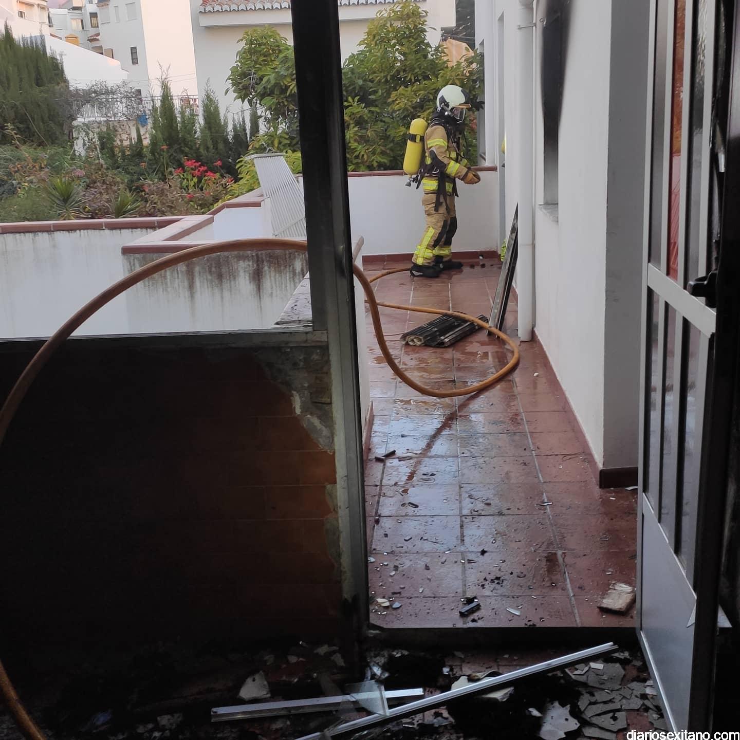 Los Bomberos de Almuñécar, con el apoyo de la Policía Local, han sofocado esta mañana el incendio en la vivienda denominada “Los Elos”, situada en la confluencia del paseo Puerta del Mar y Calle Luis Morel, que ha provocado solo daños materiales.