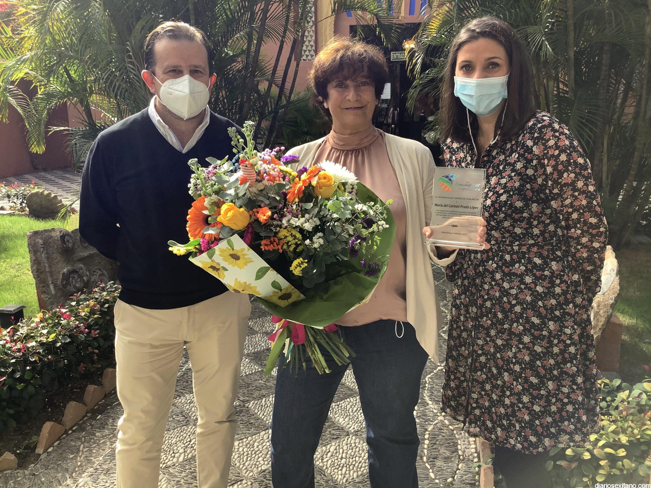 En el citado acto, el teniente de alcalde delegado de Turismo y Playas, Daniel Barbero, acompañado del director técnico Felipe Puertas, y empleados del Patronato de Turismo de Almuñécar, ha tenido palabras de agradecimiento hacía la homenajeada.