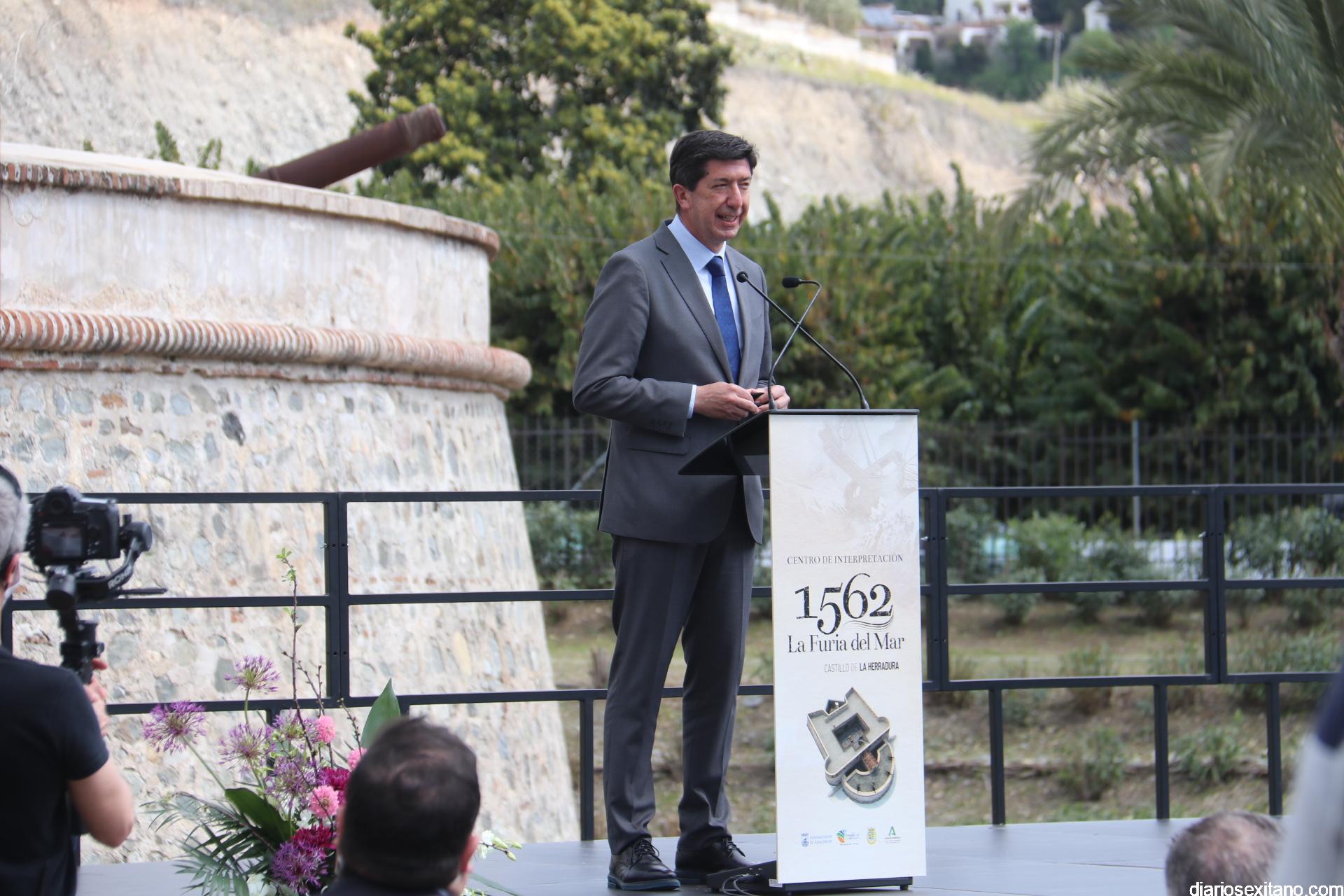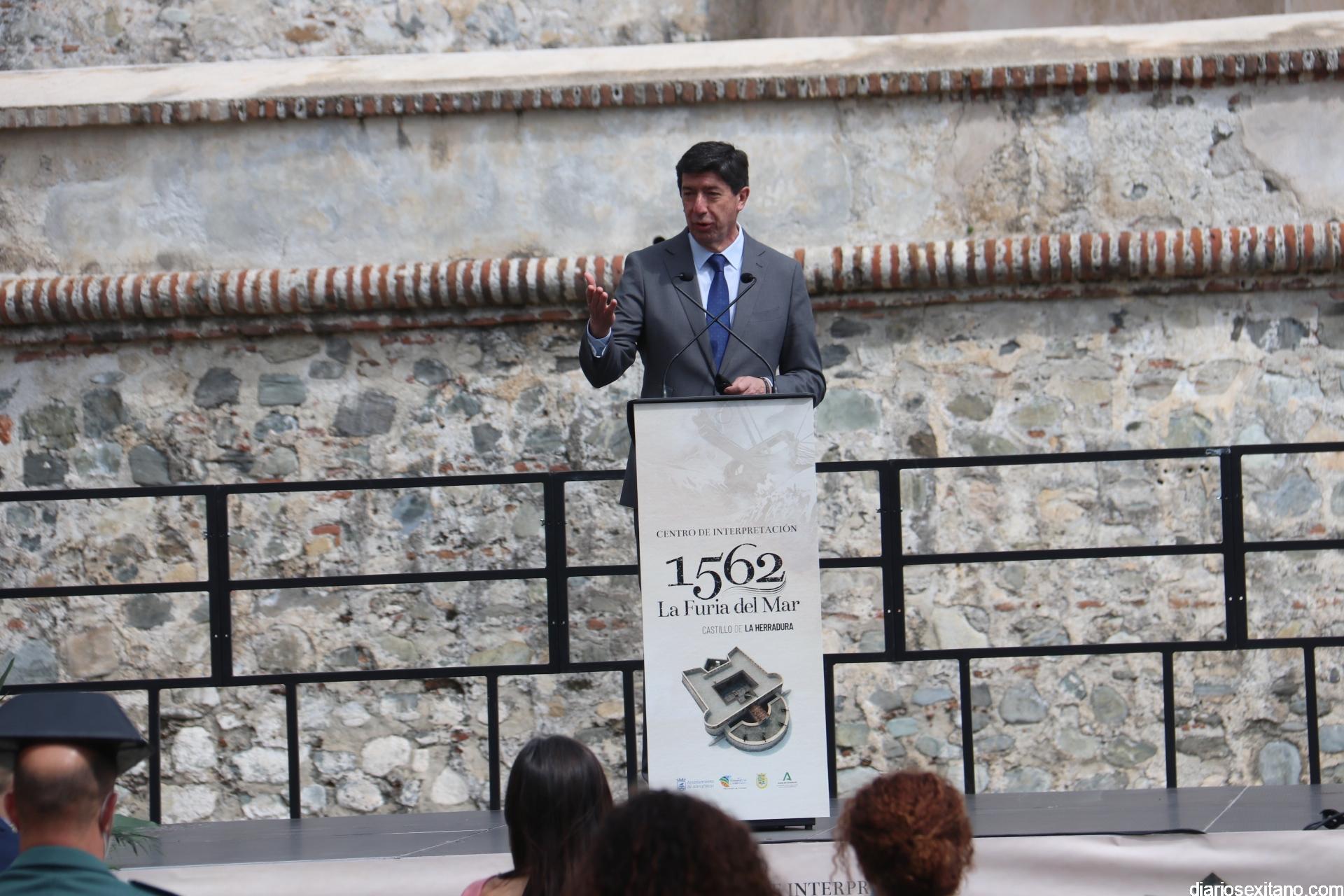 Con el descubrimiento de una placa y el correspondiente corte de cinta protagonizado por el vicepresidente de la Junta de Andalucía y consejero de Turismo, Regeneración, Justicia y Administración Local, Juan Marín, y la alcaldesa de Almuñécar, Trinidad Herrera, han inaugurado este viernes el centro interpretación “1562. La Furia del Mar”, en el Castillo de La Herradura. Un proyecto museístico temático vinculado a la época del naufragio de la Armada que tuvo lugar en la bahía de La Herradura en 1562 y que se ha hecho realidad gracia al apoyo de la Consejería de Turismos de la Junta