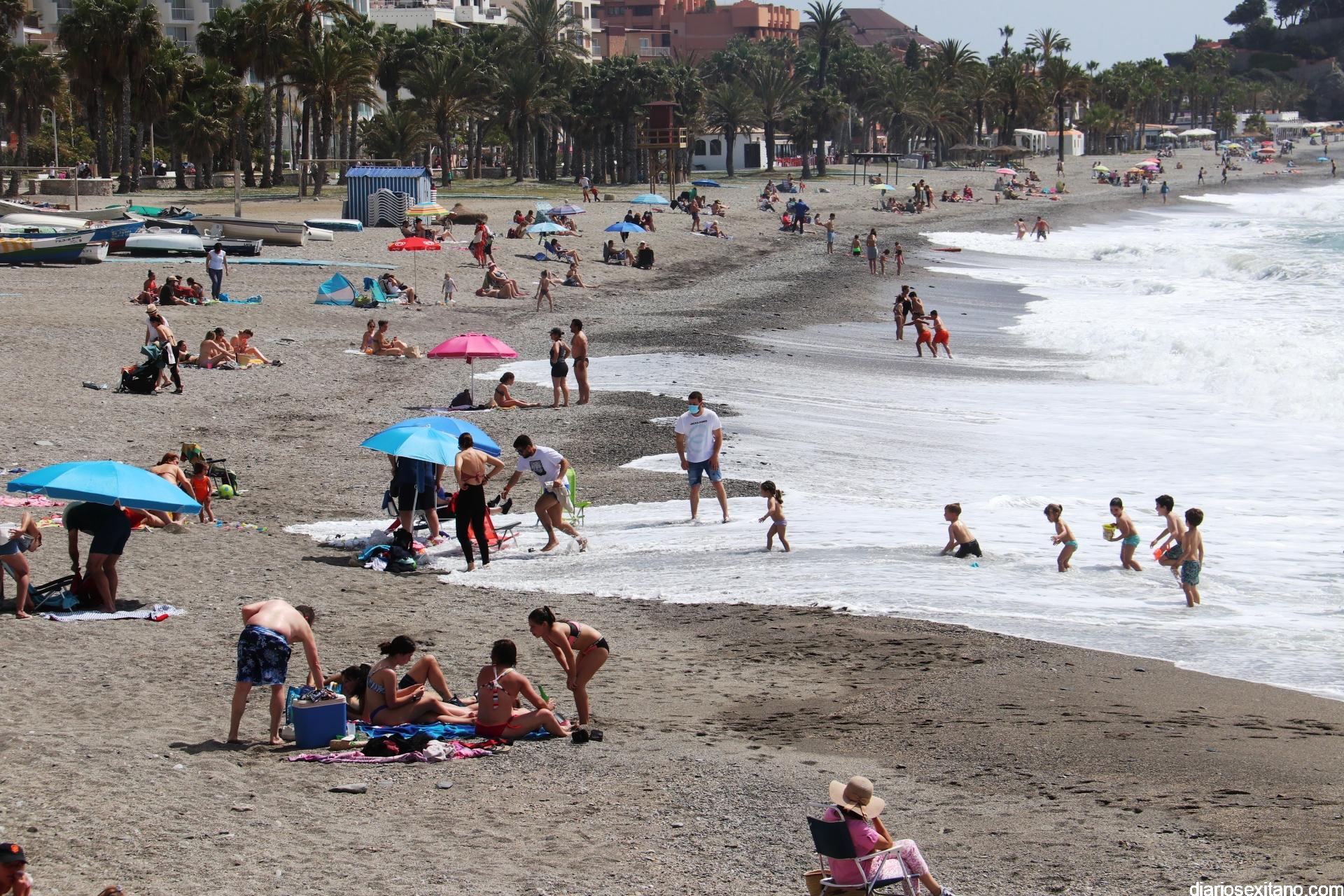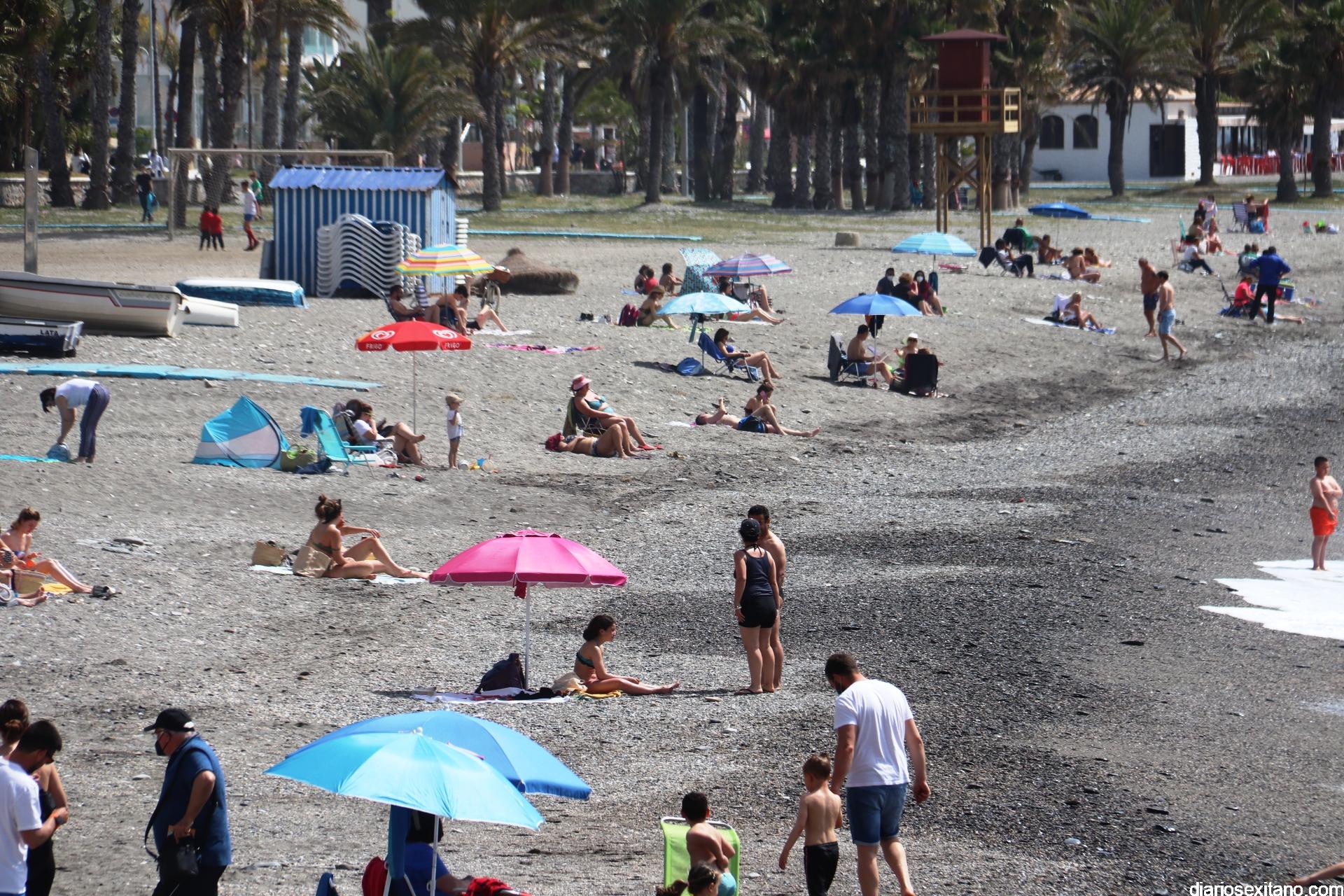 Las playas de Almuñécar y La Herradura se han visto este “Miércoles Santo” muy concurridas de visitantes granadinos, al estar cerrada la provincia, que han aprovechado el buen tiempo para disfrutar de la brisa y hasta un chapuzón en el mar.