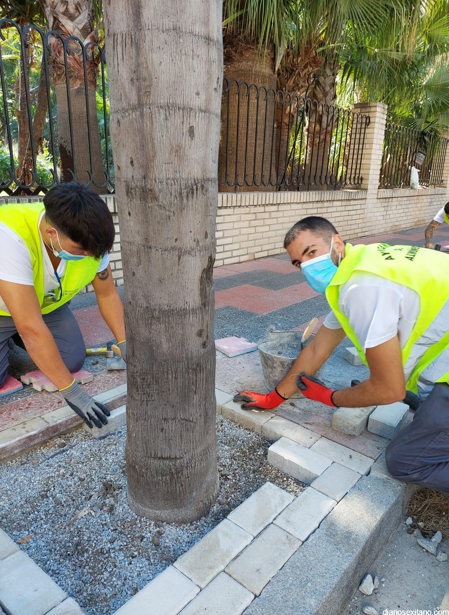 Los alumnos del taller de construcción del programa de formación “Empléate” vienen realizando estos días trabajos de eliminación de barreras arquitectónicas que provocan los bordillos de las jardineras situadas en la Avenida Europa que habían ocasionado caídas entre los transeúntes.