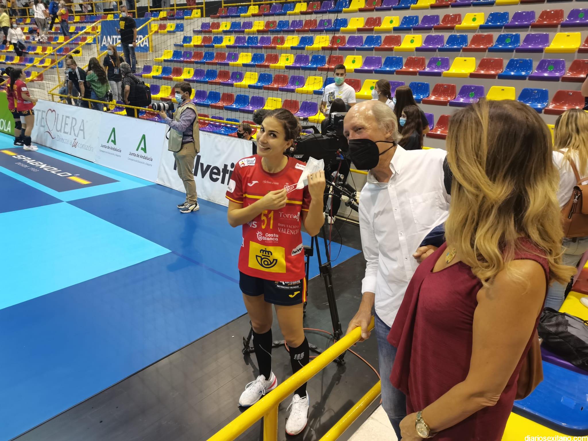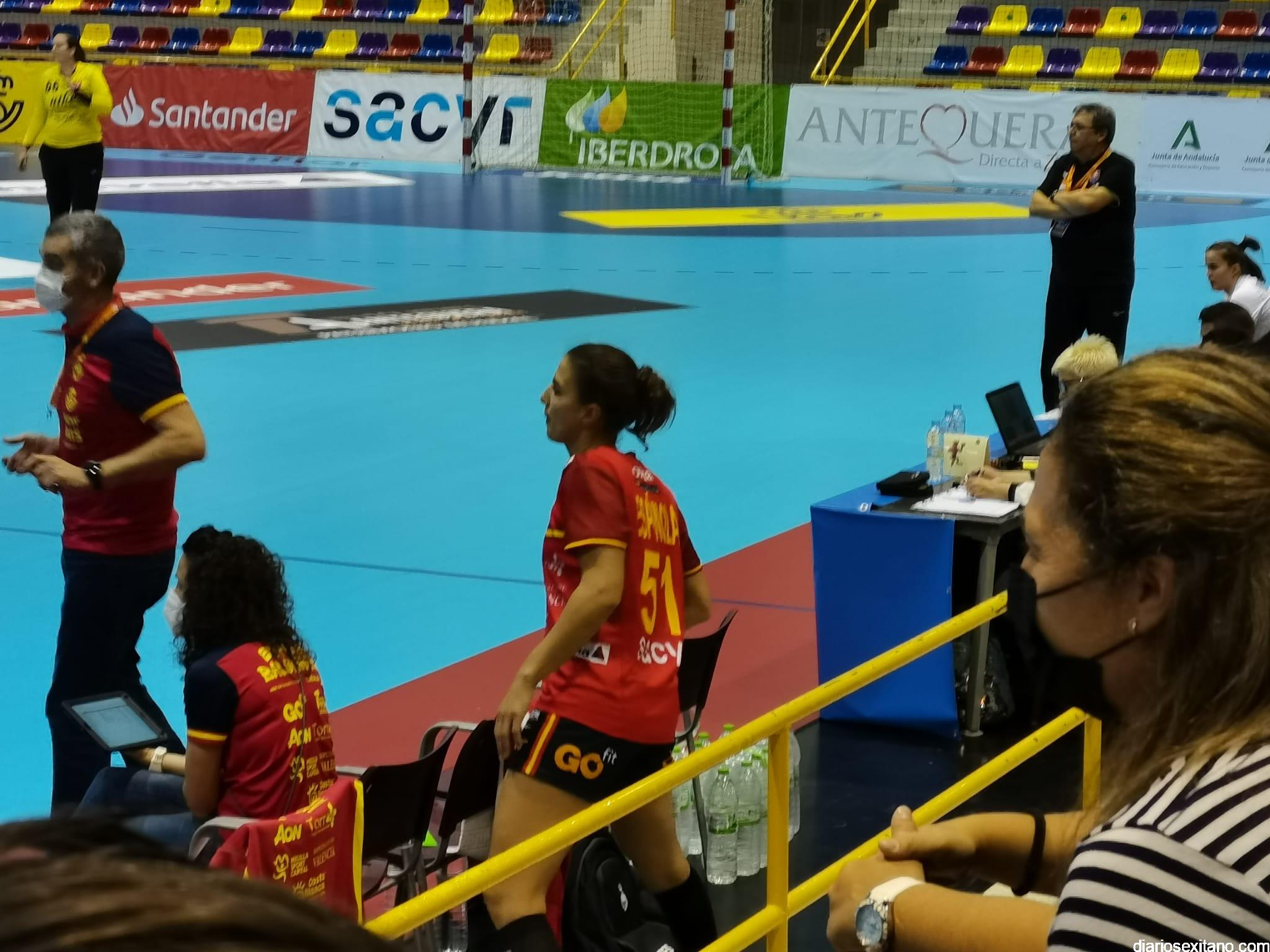 El primer encuentro lo disputaron frente a Eslovaquia, en la ciudad malagueña de Antequera, Irene Espínola que juega de lateral derecho, a la que se impusieron (33-28) con un tanto de la sexitana. Espínola contó con el apoyo de su familia, su primer entrenador en el BM Almuñécar, Miguel Jiménez Corral y el concejal de Deportes, Luis Aragón, entre otros.