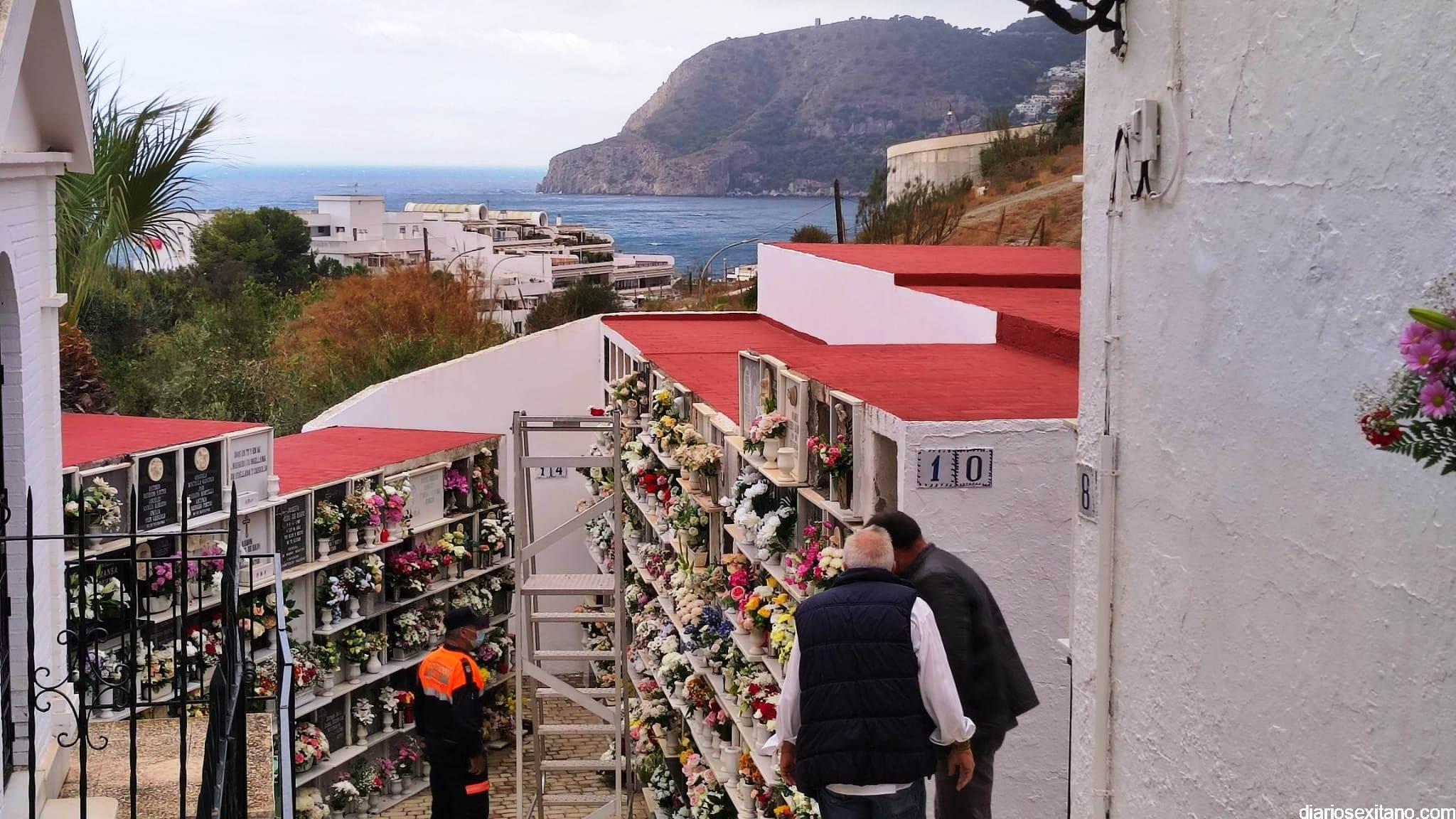 También han sido muchos los que adelantaron la visita a los cementerios al coincidir los días previos en fin de semana, con lo que se ha realizado de forma escalonada y no se observaron aglomeraciones. Precisamente el sábado giraban visita al Cementerio la responsable municipal Maria del Carmen Reinoso y el edil de Relaciones Institucionales, Alberto García Gilabert, quienes se encargaron de colocar una corona de flores por parte del Ayuntamiento sexitano “en reconocimiento y memoria por todos nuestros difuntos que no pueden ser visitados durante estos días”.