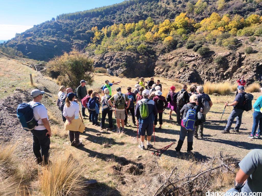 El recorrido arrancó desde la fuente minero-medicinal para seguir por la senda del agua, Acequia Real de Paterna y de nuevo volver a Paterna del Río. Los senderistas sexitanos, entre los que estaban un buen grupo de residentes europeos, disfrutaron de un espectacular recorrido otoñal con gigantescos árboles centenarios.