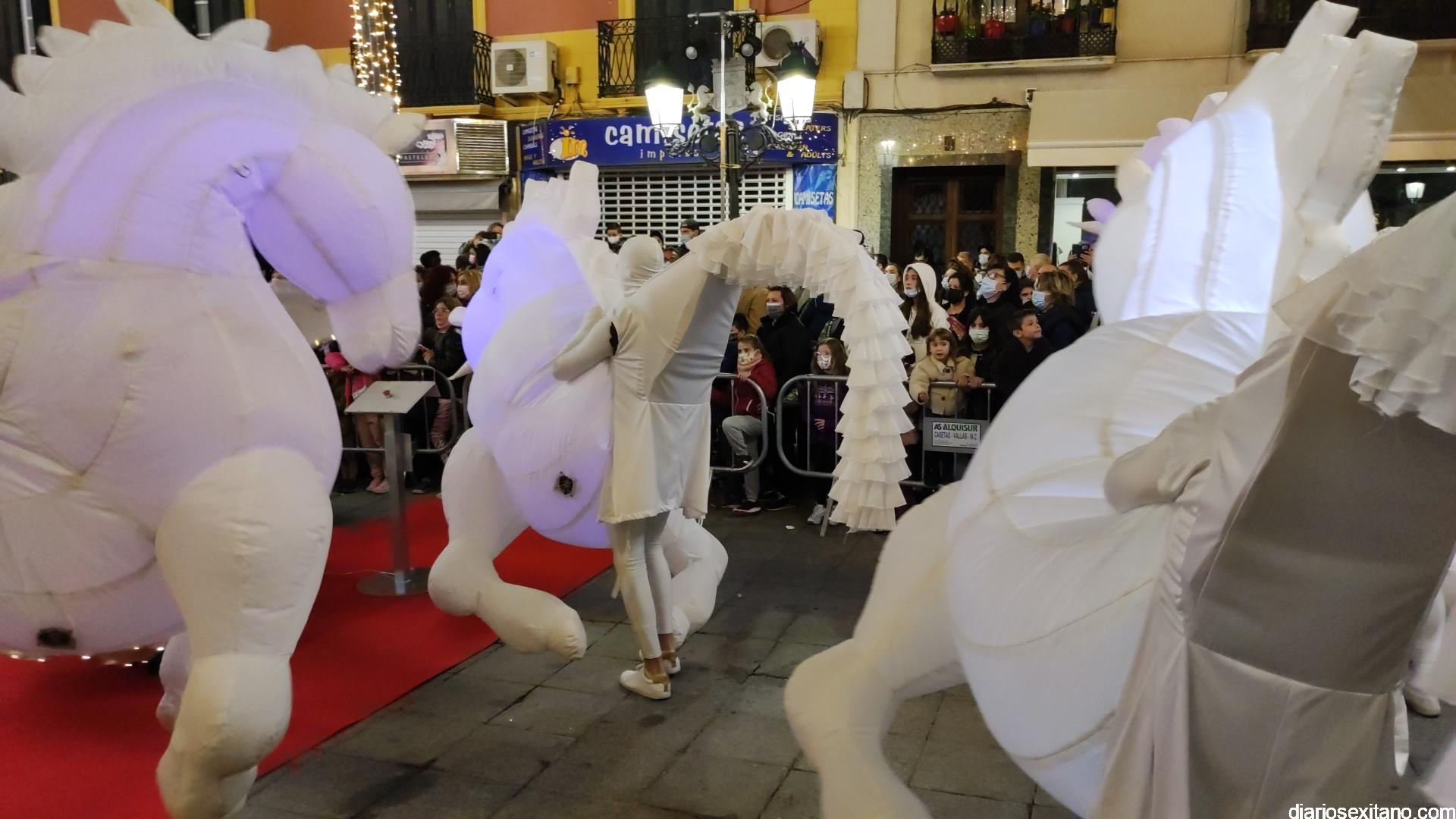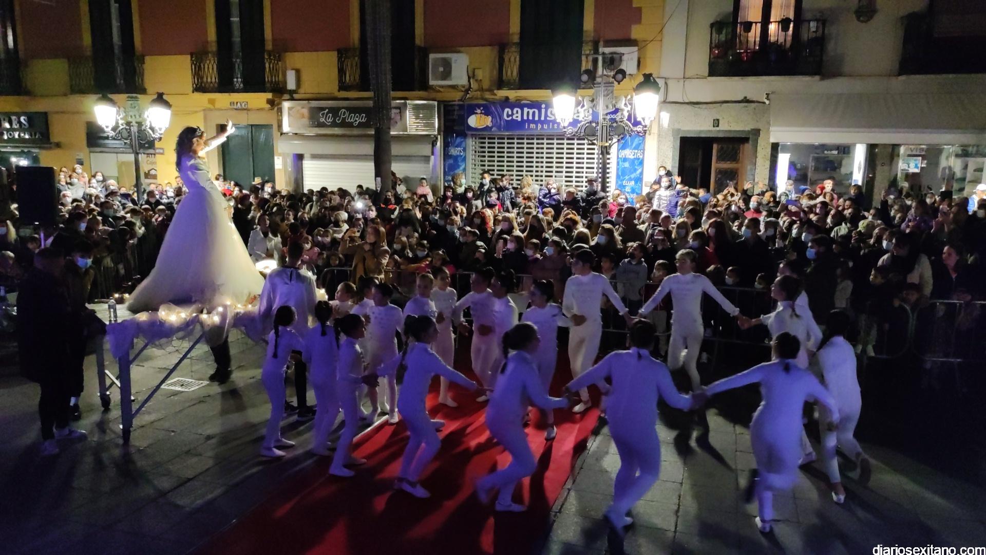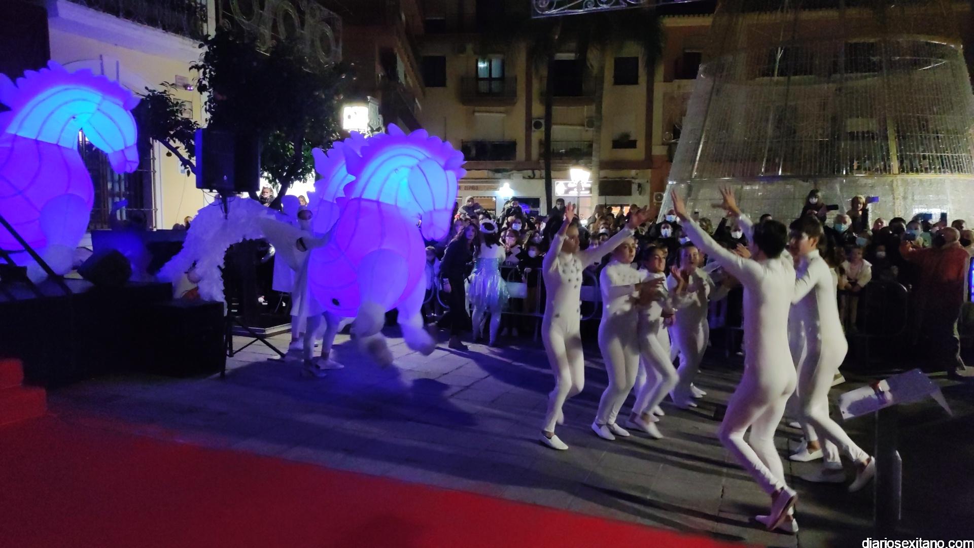 La “Navidad” llegó a la plaza sobre un carroza y precedida de un pasacalle con unicornios y danza que partió desde la Casa de la Juventud. Otro espectáculo donde tuvo un protagonismo un grupo de baile de la Academia de Solange Janssens que también acompañó la fiesta con una coreografía en la misma plaza. Fue tras la proyección de un espectacular mapping sobre la fachada del Ayuntamiento animando la Navidad. Tampoco faltó la nieve artificial que tras el encendido empezó a caer sobre la plaza para delicia de los pequeños.
