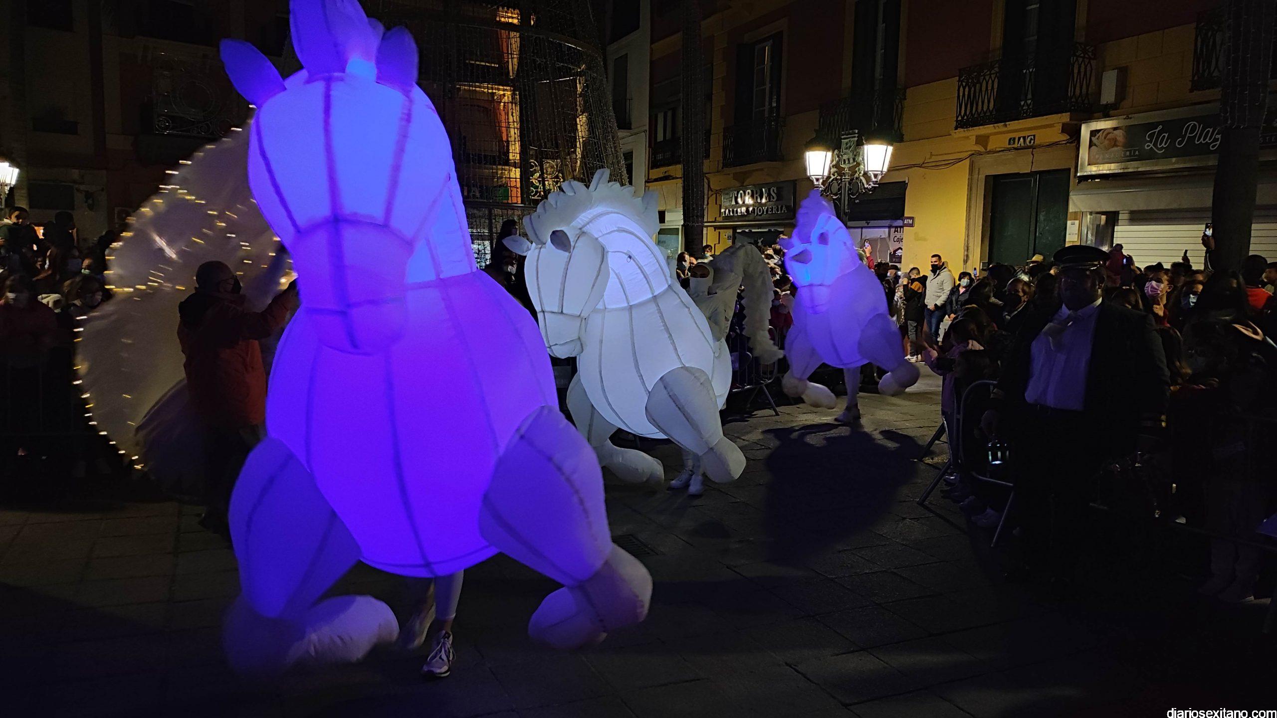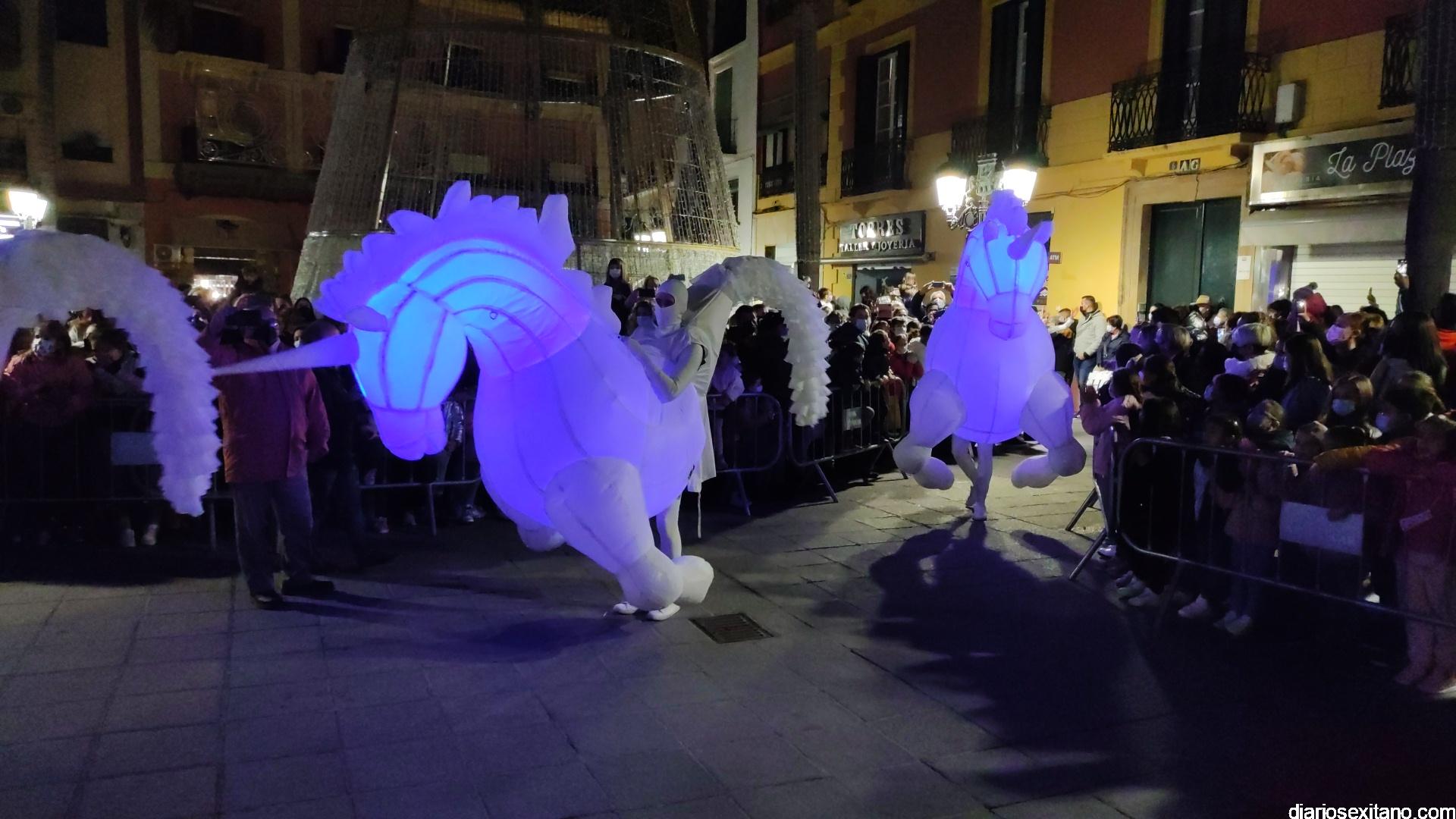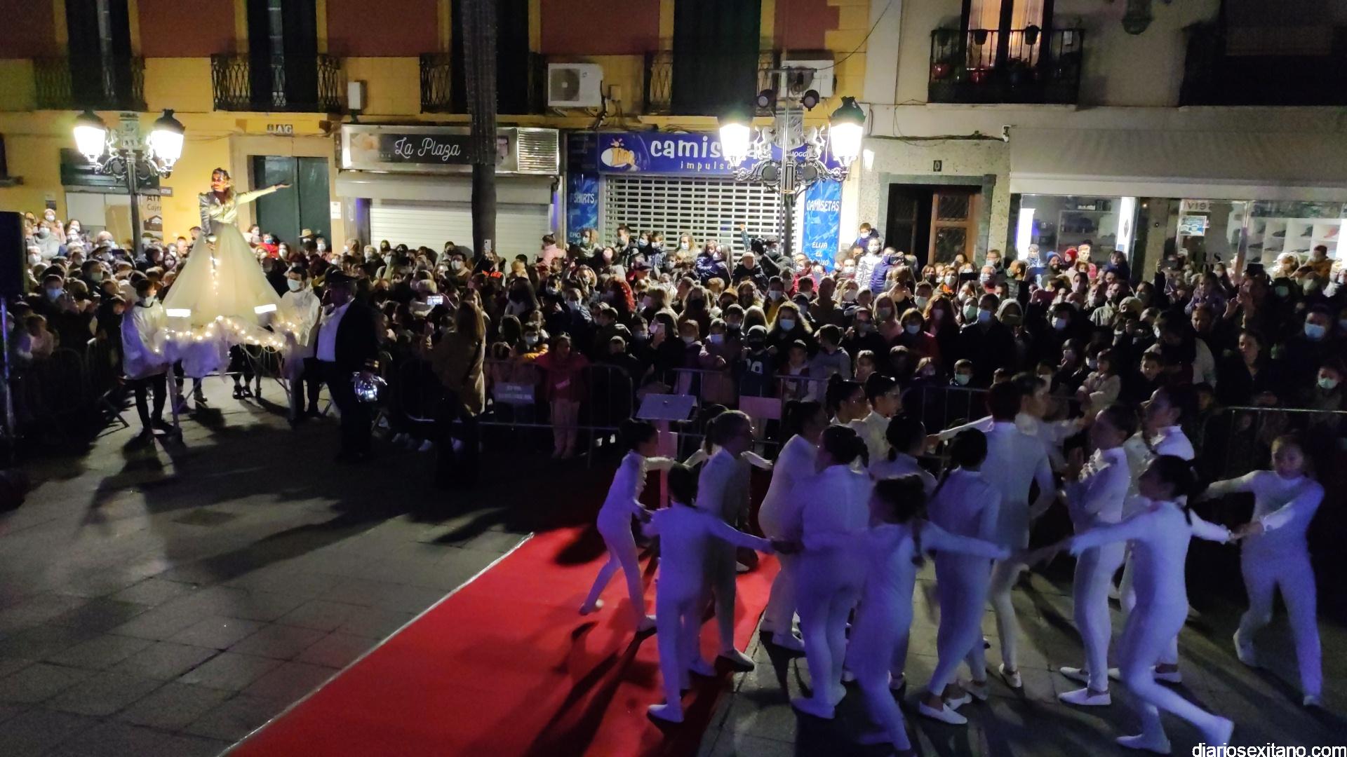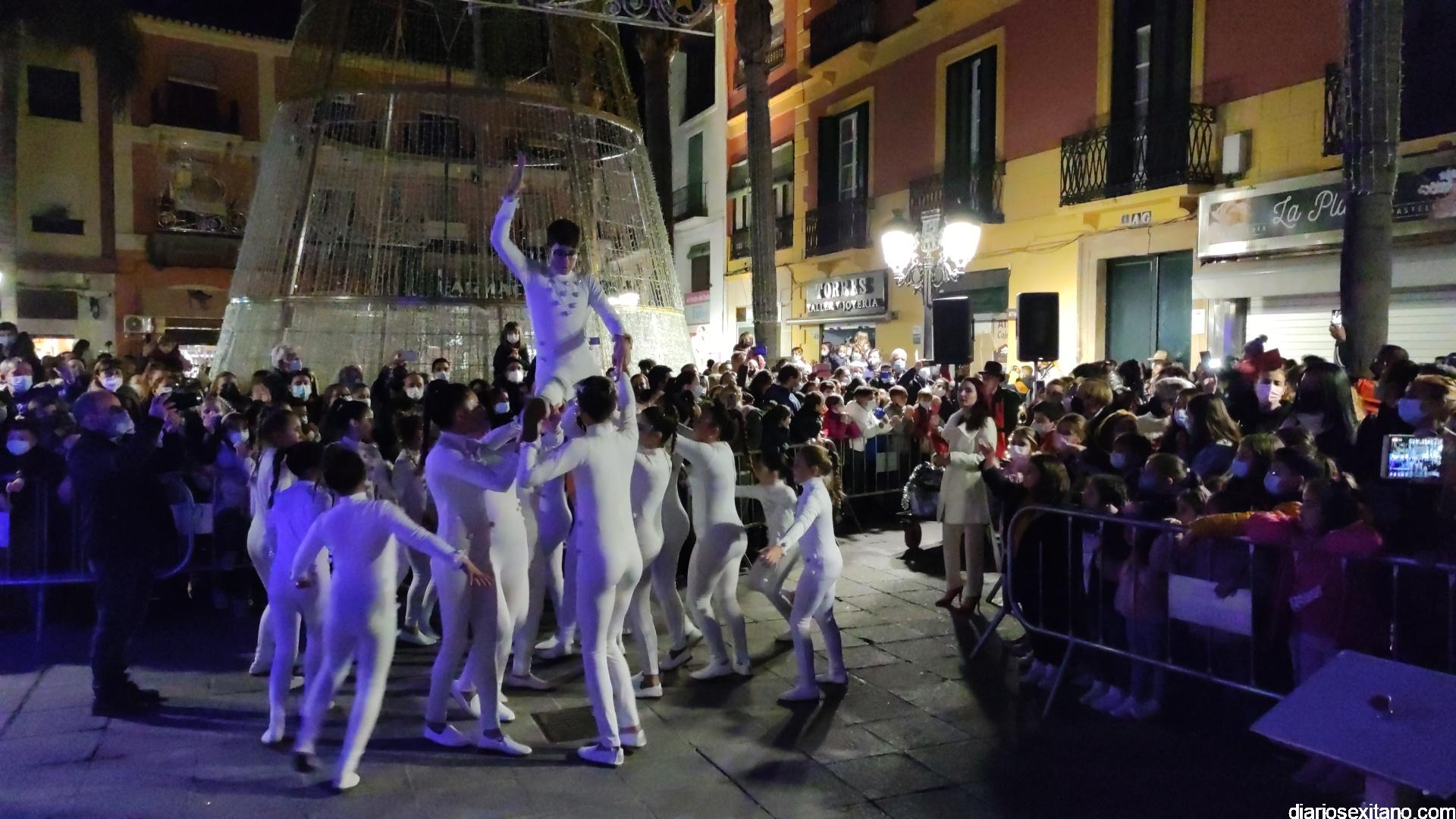 La “Navidad” llegó a la plaza sobre un carroza y precedida de un pasacalle con unicornios y danza que partió desde la Casa de la Juventud. Otro espectáculo donde tuvo un protagonismo un grupo de baile de la Academia de Solange Janssens que también acompañó la fiesta con una coreografía en la misma plaza. Fue tras la proyección de un espectacular mapping sobre la fachada del Ayuntamiento animando la Navidad. Tampoco faltó la nieve artificial que tras el encendido empezó a caer sobre la plaza para delicia de los pequeños.