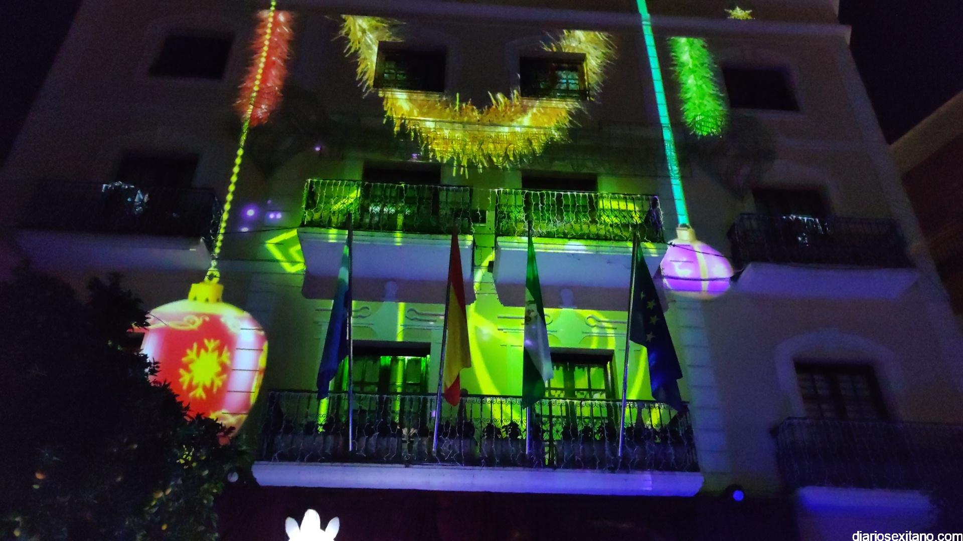 Señalar que este año la plaza cuenta con una iluminación donde destaca un cono de unos 15 metros de altura, con tres grandes arcos, iluminación especial sobre la fachada del Ayuntamiento y también en las hojas de las palmeras situadas frente al Consistorio sexitano. Todo con luces led, los supone un ahorro en el consumo y un incremento de calles. Este año Almuñécar estrena todo el diseño de los arcos del alumbrado y las luces, tal y como avanzó el concejal de Cultura y Fiestas, Alberto García Gilabert, que junto a la teniente de alcalde, Beatriz González y el edil de Comercio y Seguridad, Francisco Robles asistieron al acto del encendido navideño. Todos ellos aprovecharon para lanzar los primeros mensajes de felicitación de la Navidad a todos los vecinos.