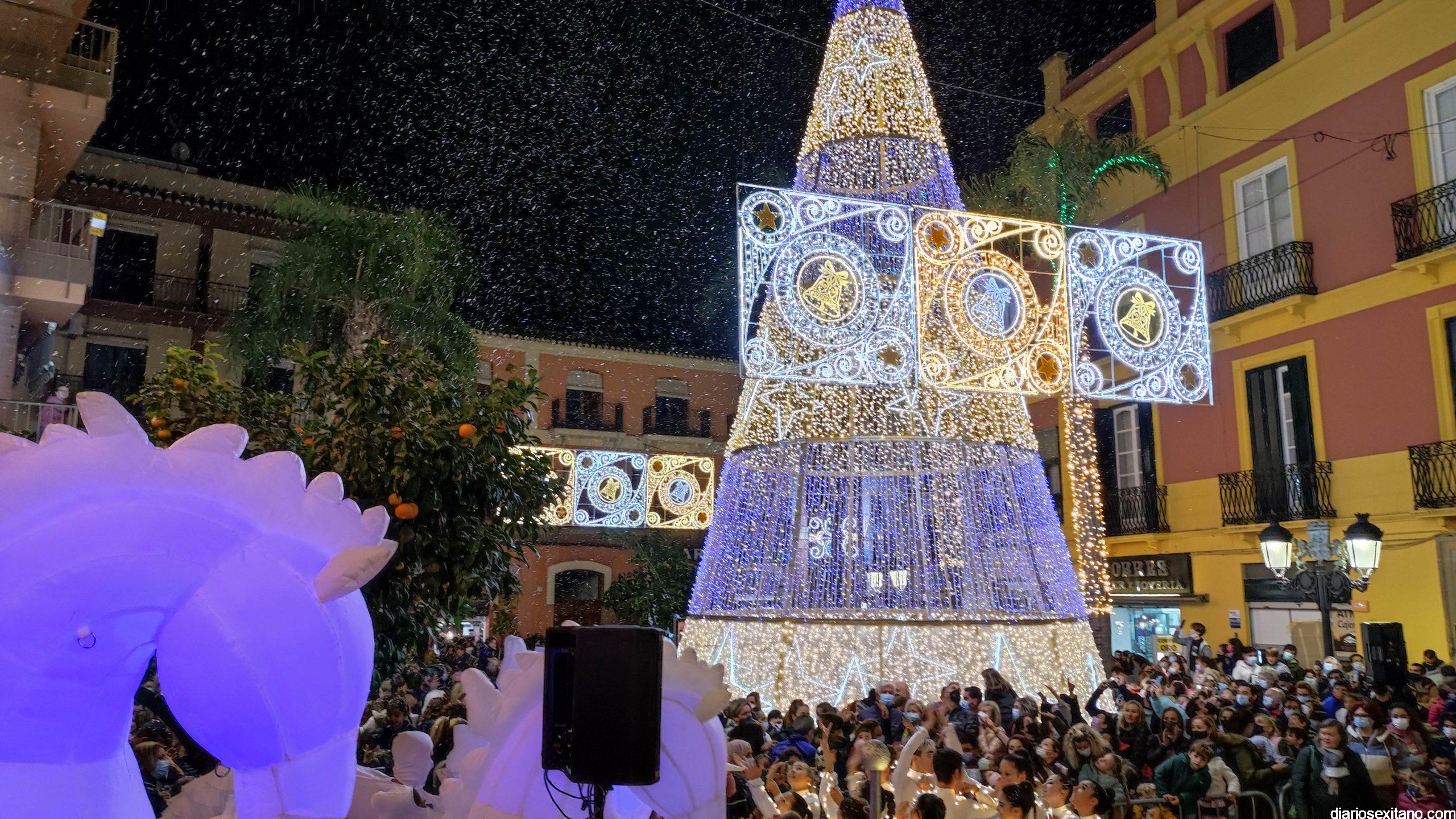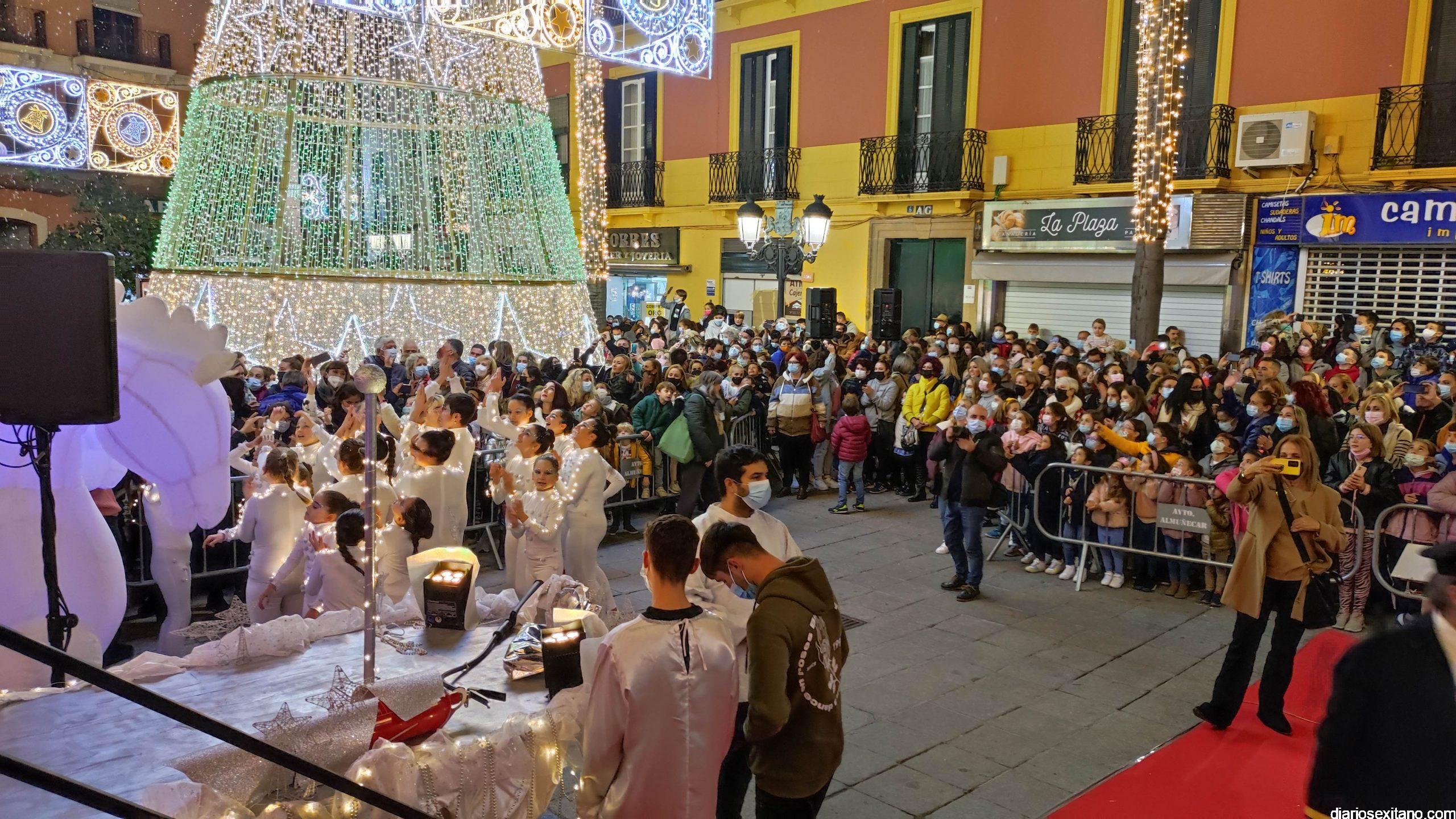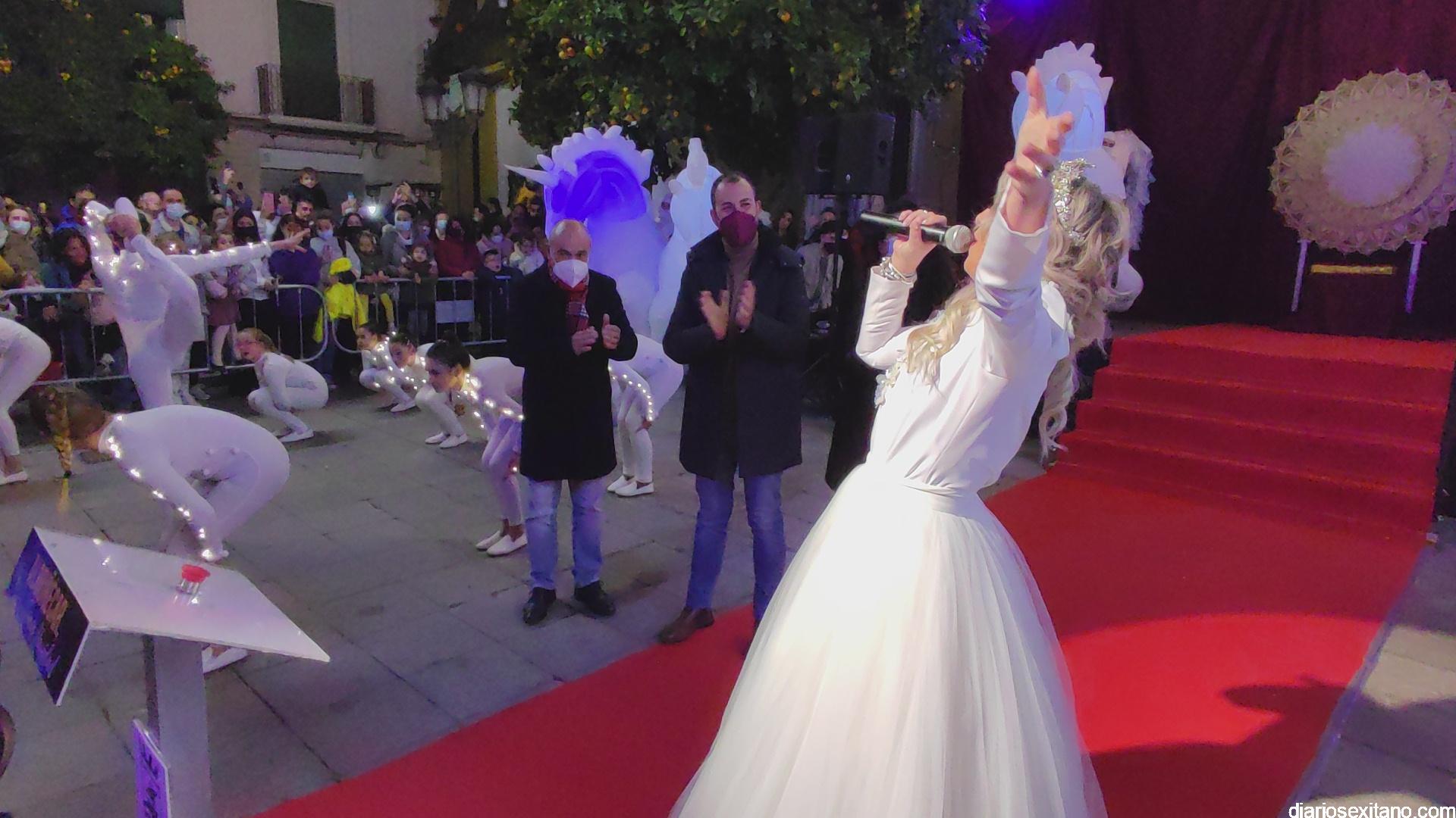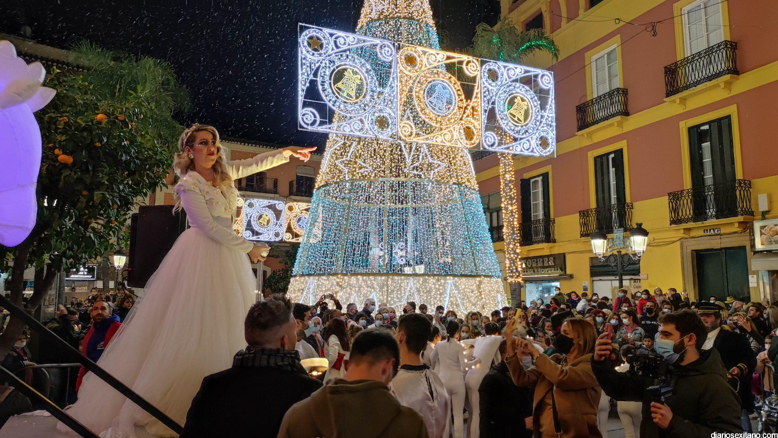 La “Navidad”, personalizada en la cantante sexitana de la Orquesta La Tentación. Araceli Valero, ha sido la encargada de apretar el botón que iluminaba el alumbrado navideño en la plaza de la Constitución, que se llenó de público, para saludar la Navidad 2021. Lo hizo mientras cantaba una canción y por sorpresa para todos.