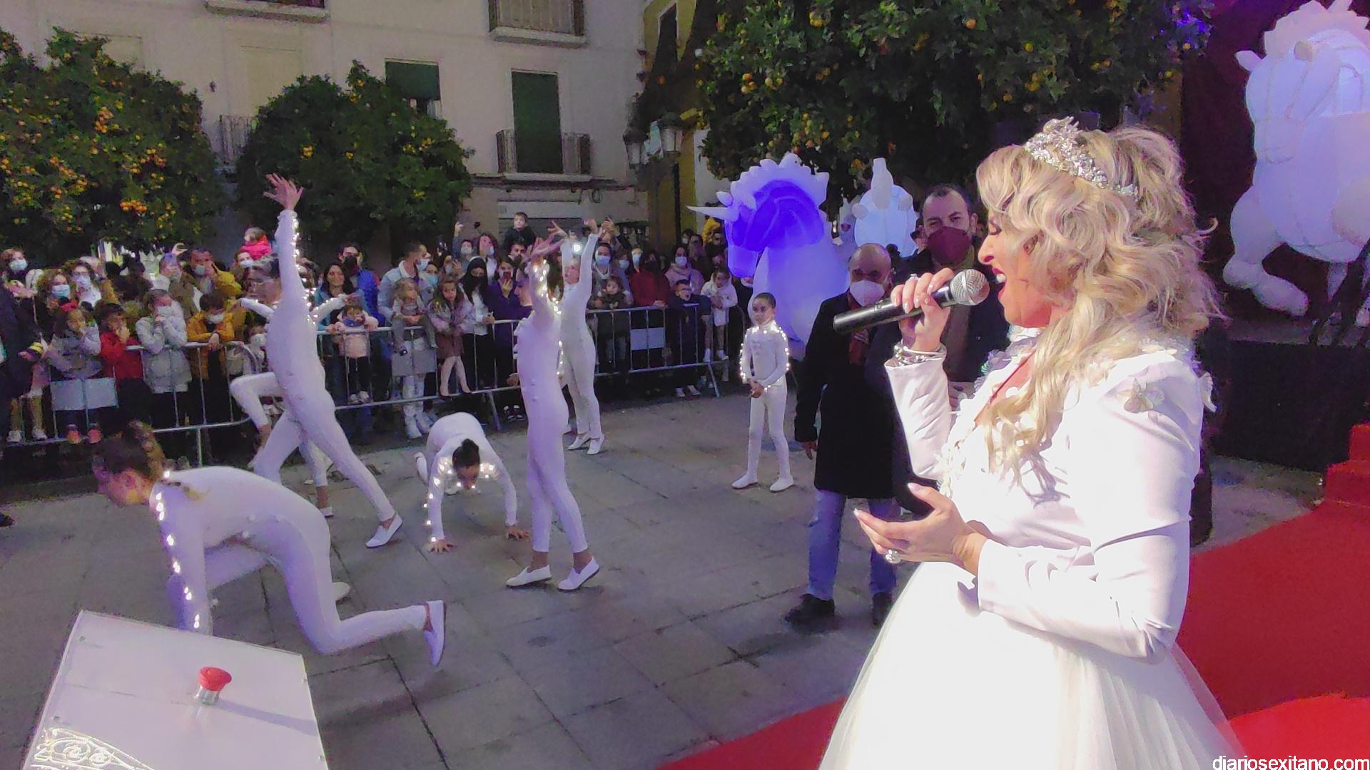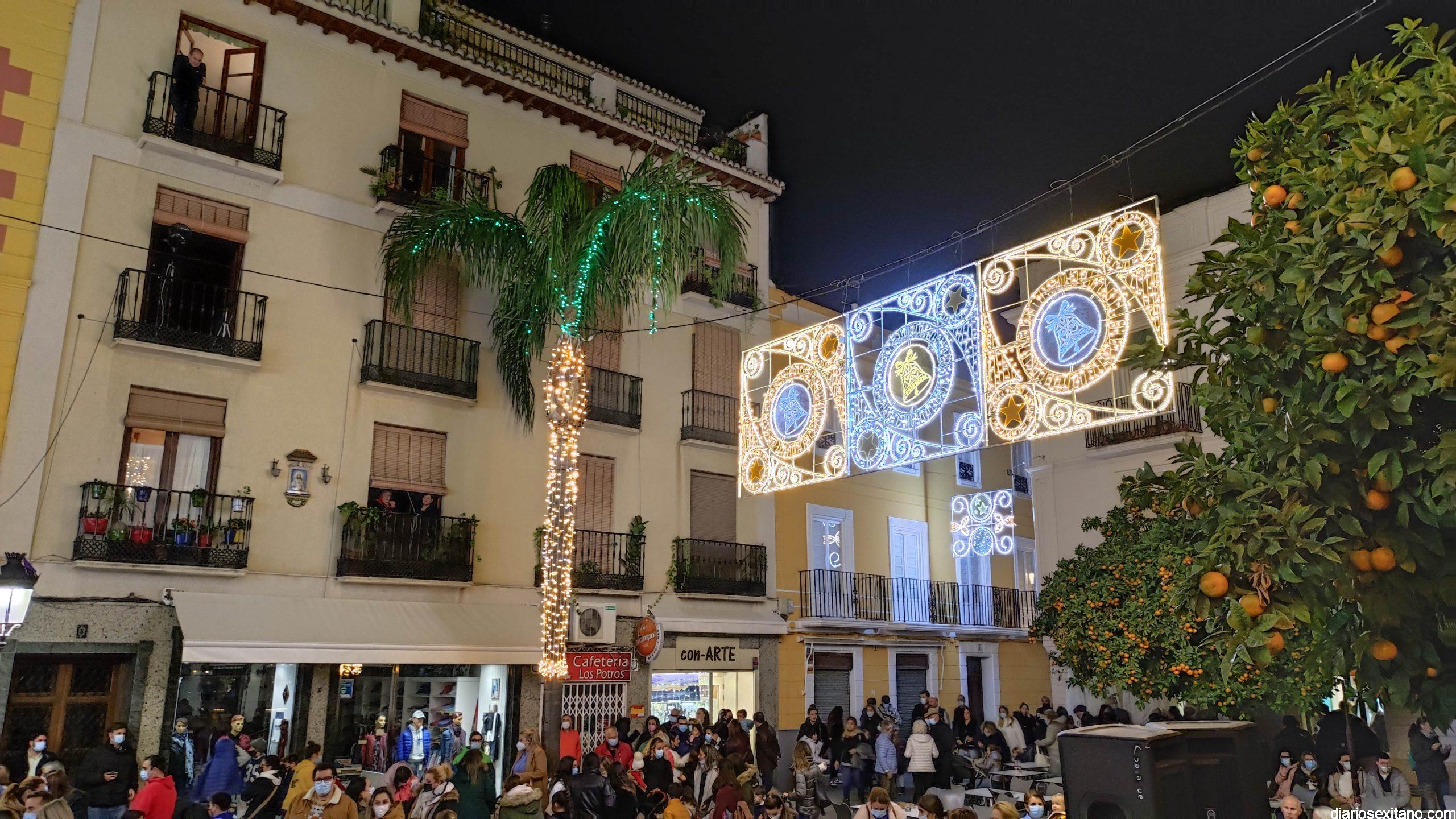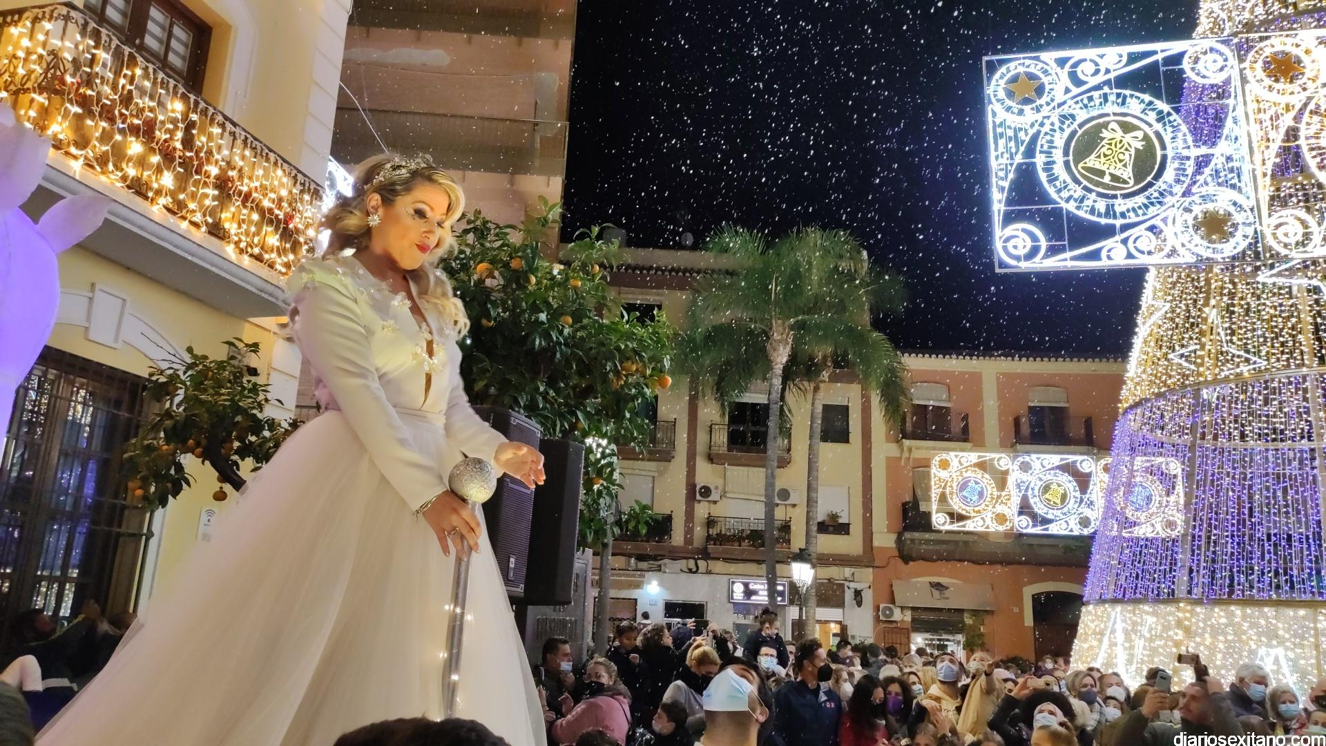 La “Navidad”, personalizada en la cantante sexitana de la Orquesta La Tentación. Araceli Valero, ha sido la encargada de apretar el botón que iluminaba el alumbrado navideño en la plaza de la Constitución, que se llenó de público, para saludar la Navidad 2021. Lo hizo mientras cantaba una canción y por sorpresa para todos.