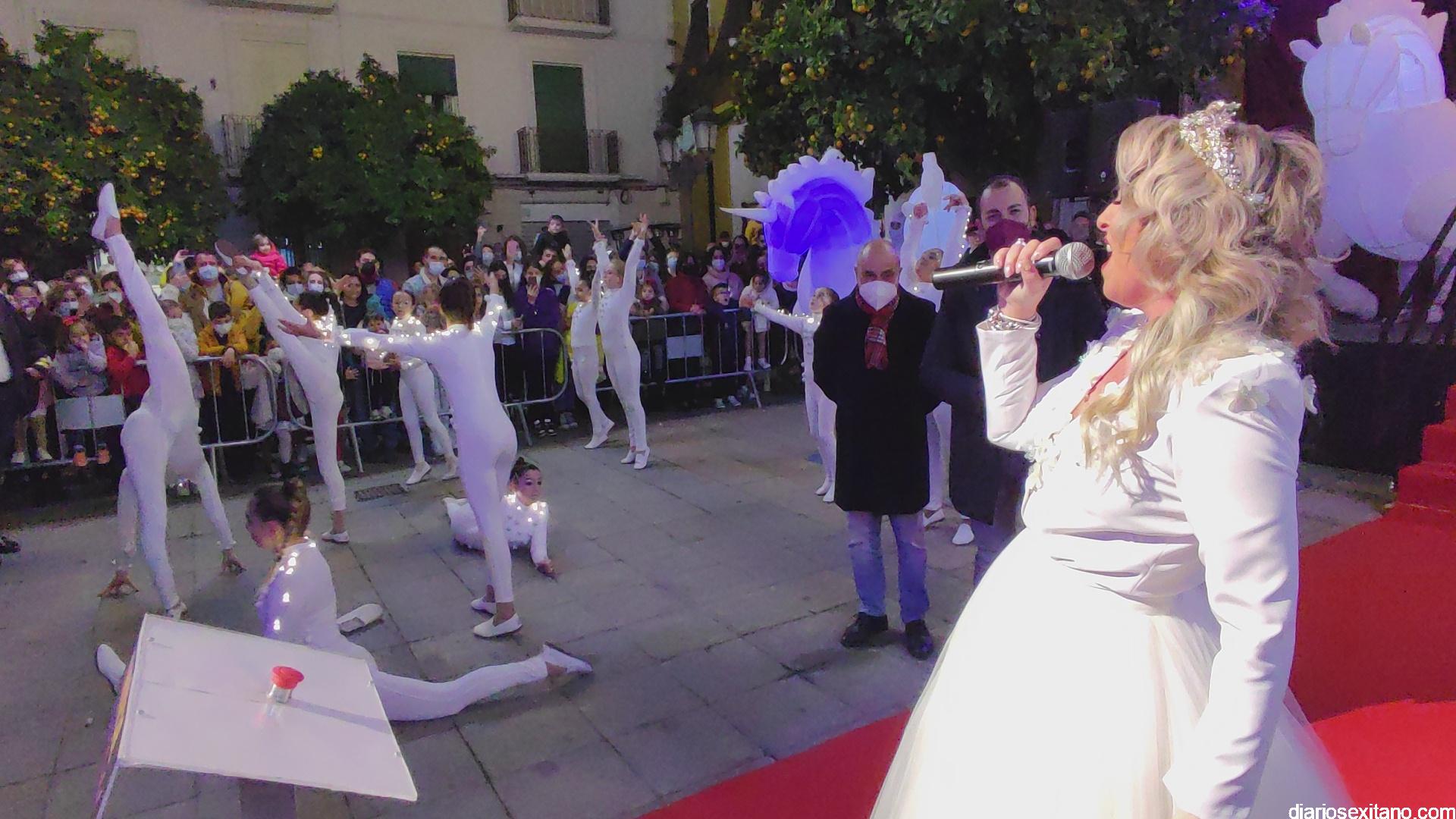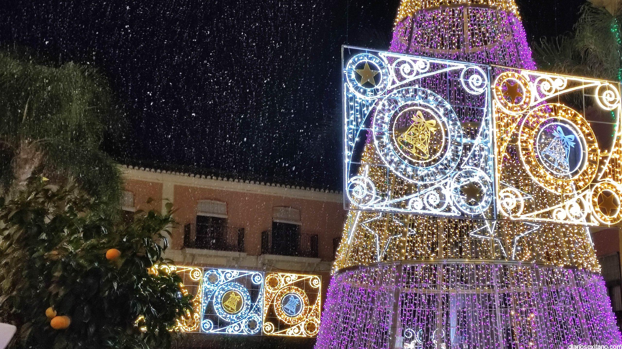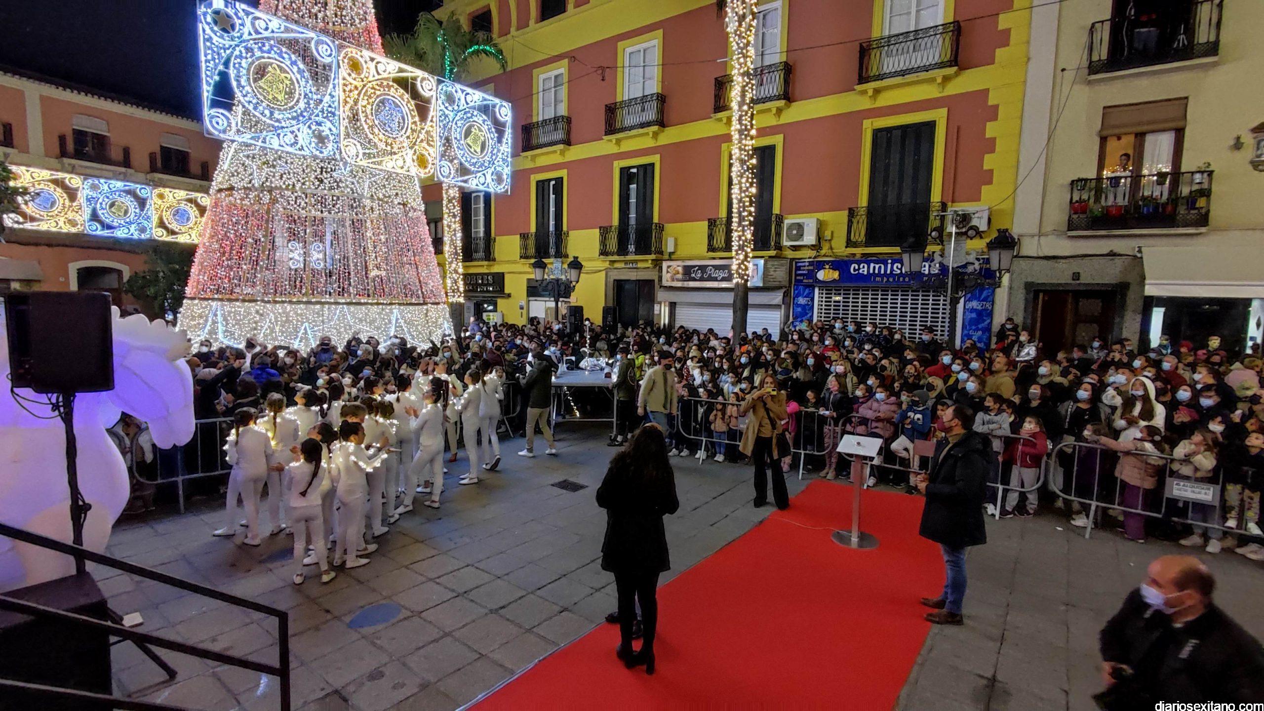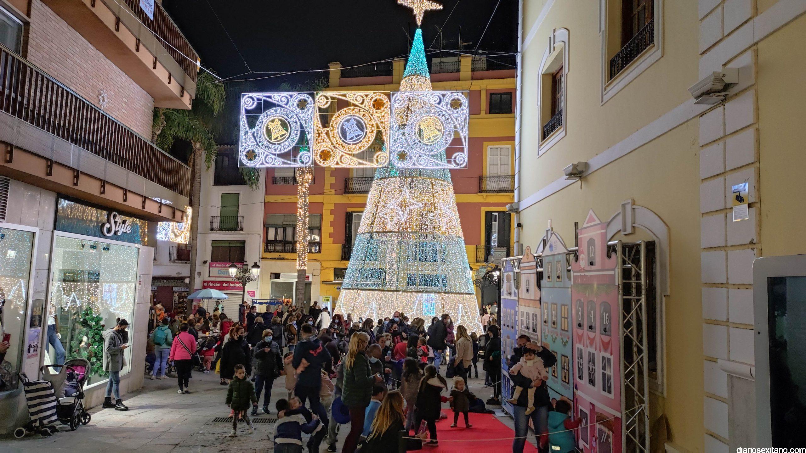 La “Navidad”, personalizada en la cantante sexitana de la Orquesta La Tentación. Araceli Valero, ha sido la encargada de apretar el botón que iluminaba el alumbrado navideño en la plaza de la Constitución, que se llenó de público, para saludar la Navidad 2021. Lo hizo mientras cantaba una canción y por sorpresa para todos.