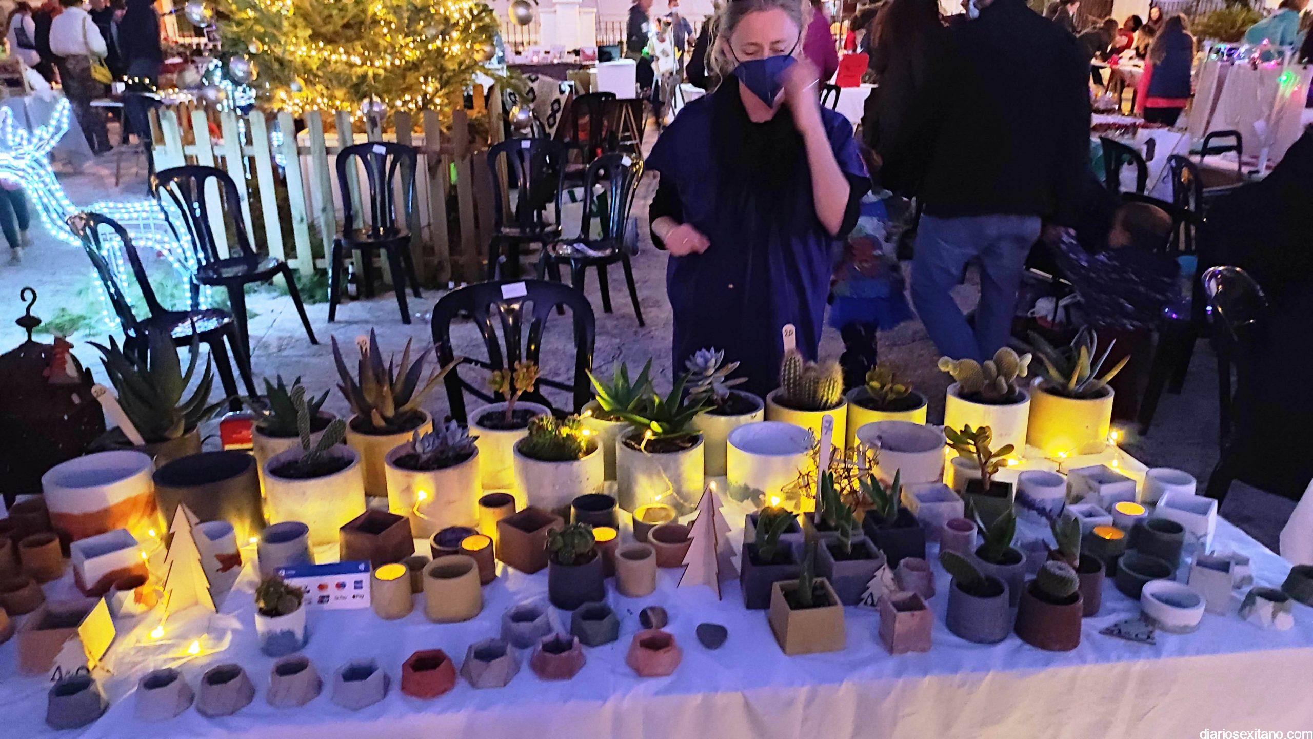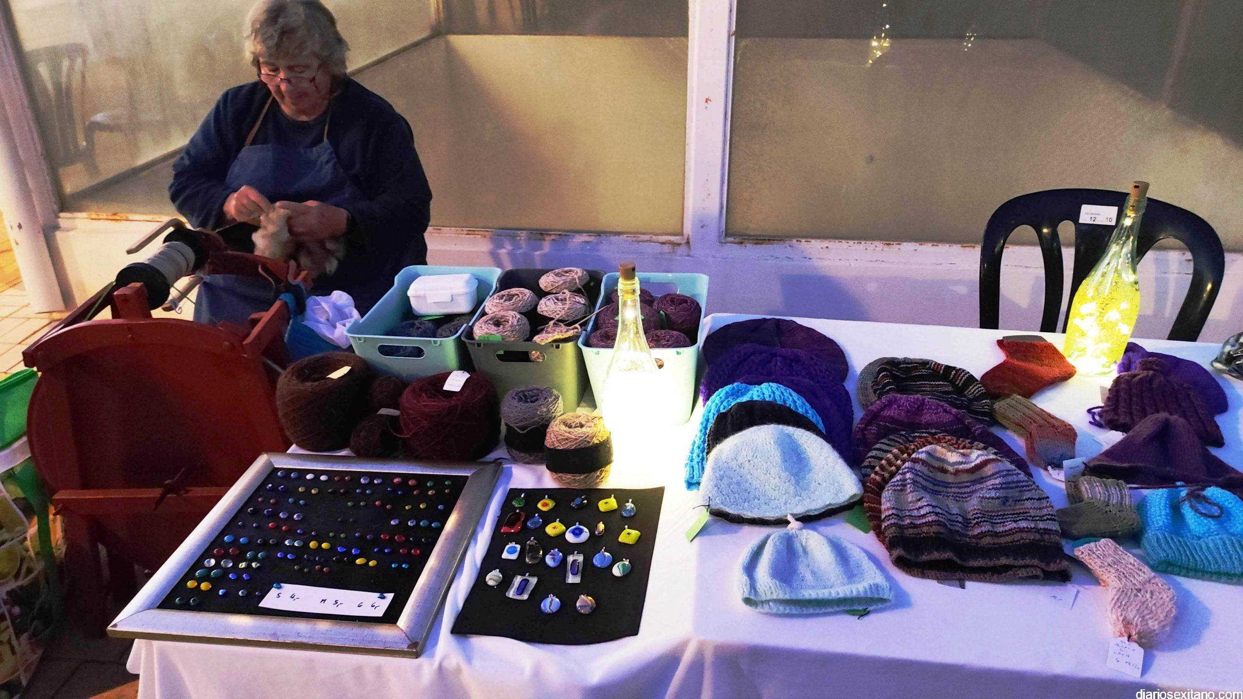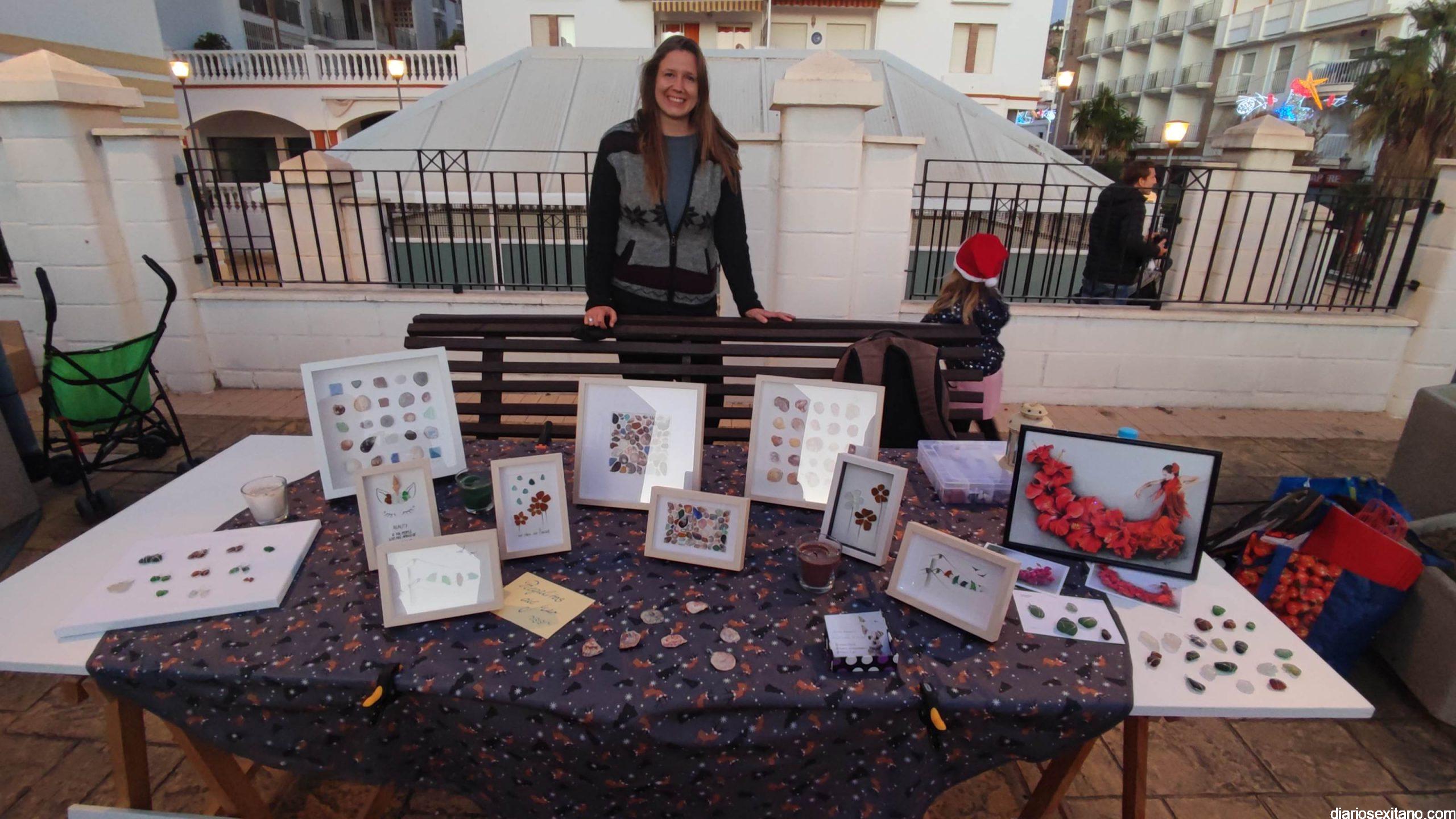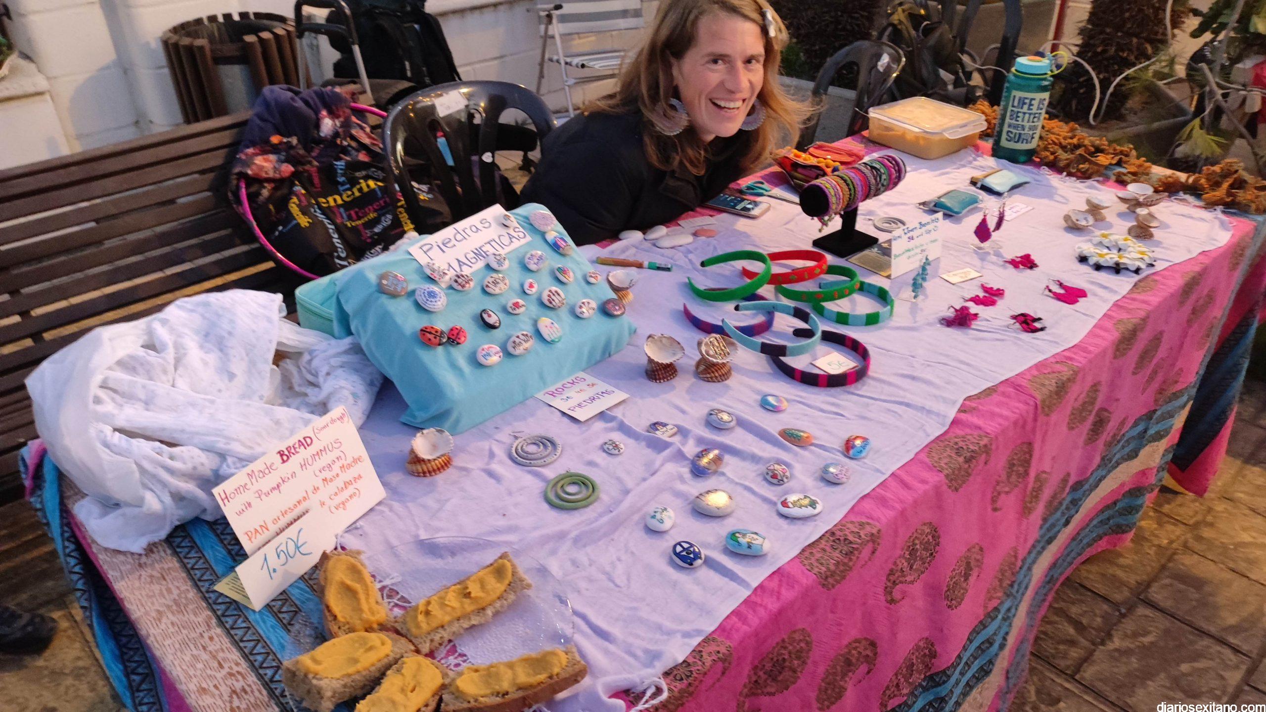 Entre la amplia oferta de stand estuvo la escultora residente en Almuñécar, Eva Jünger con la muestra de lanallocca (958633158); Franziska Straube con sus dibujos de retratos o cuadros y los productos elaborados dulces y salados, comida sana, por Ingridientes (659167908), entre otros.