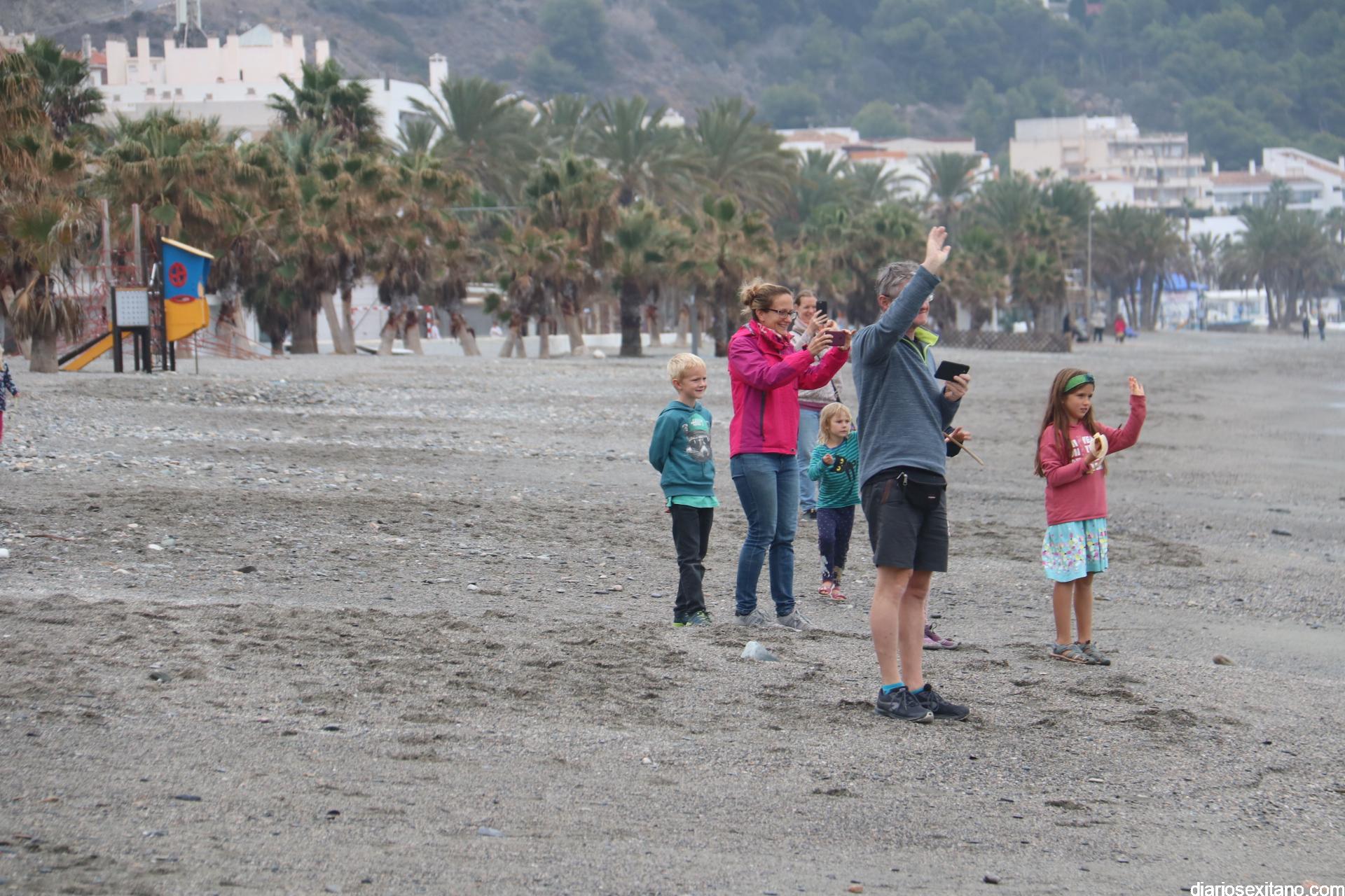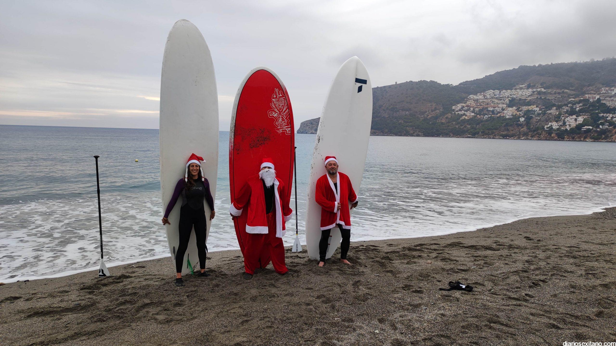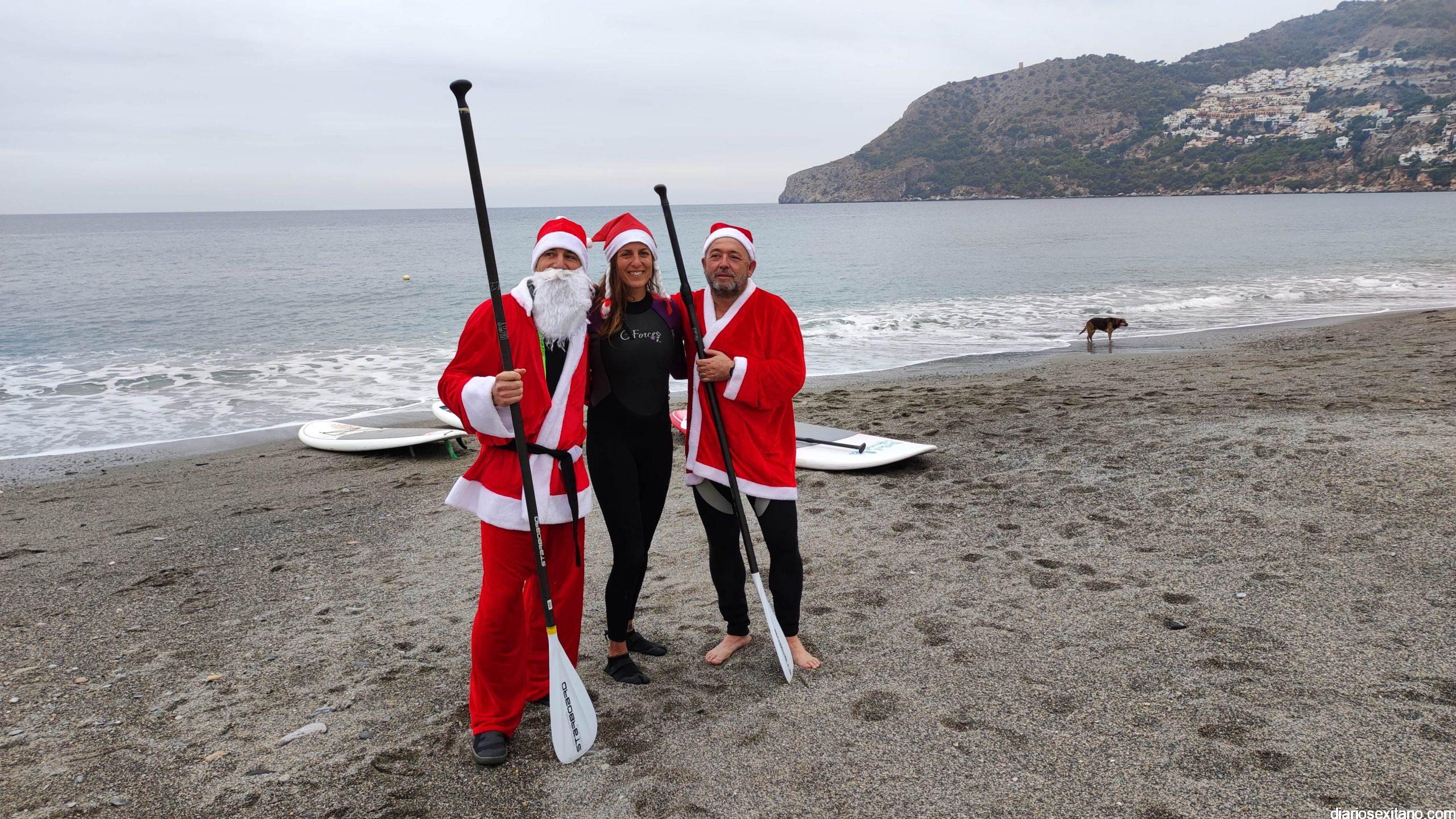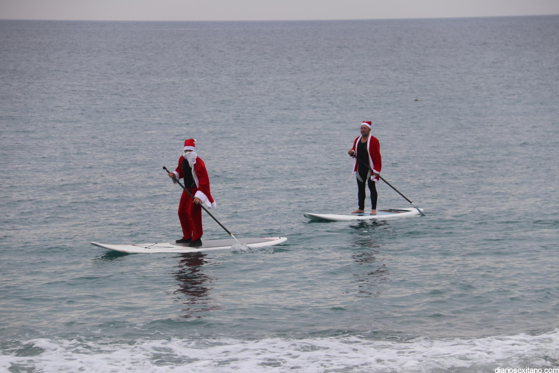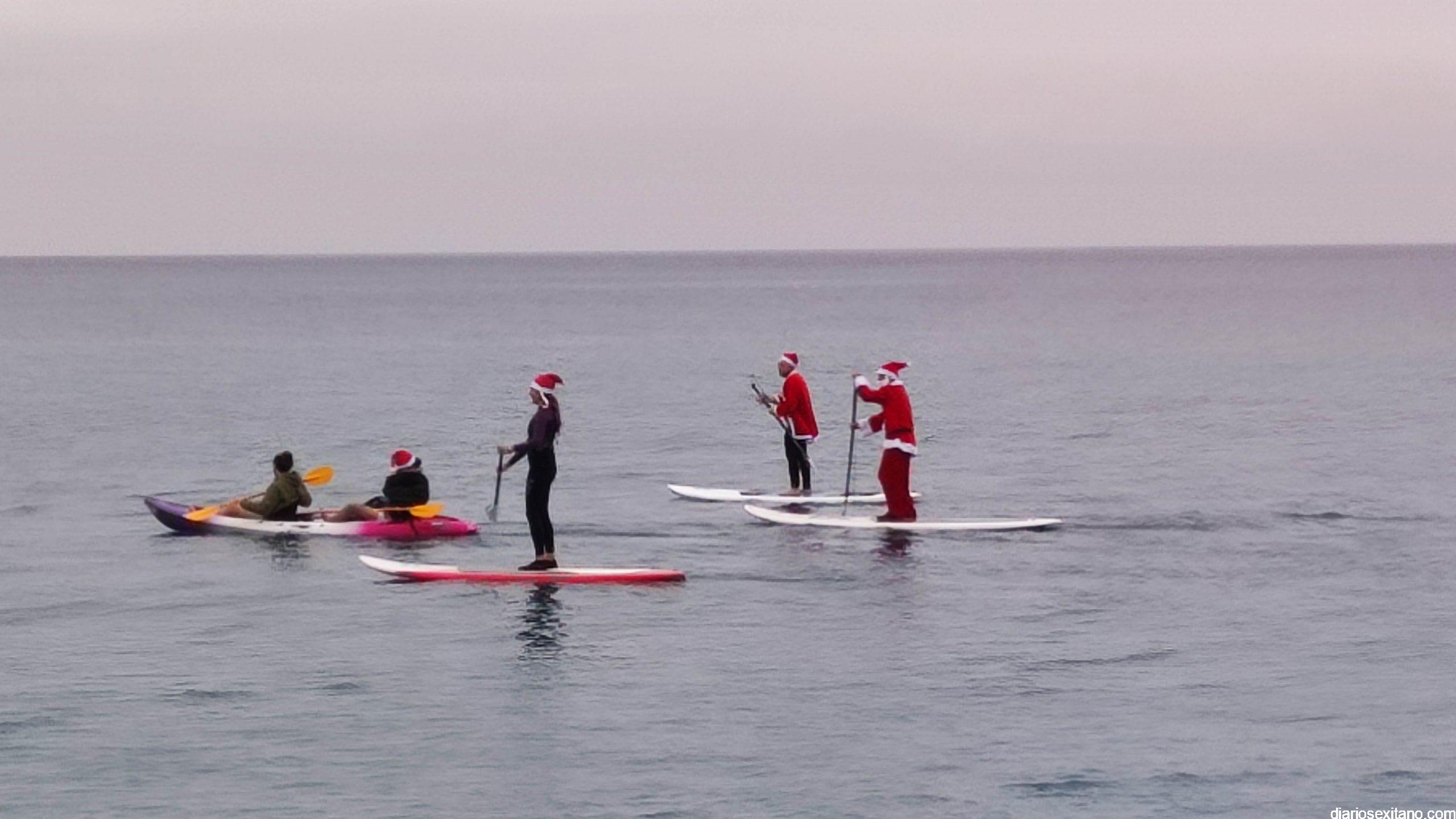 Esta tarde ha llegado Papa Noel a la playa de La Herradura en paddle surf. Las buenas condiciones del mar han permitido que tuviera un travesía tranquila sobre la bahía herradureña, tras una jornada de temporal de mar de fondo. Este jueves, a pesar de la tarde gris, algunos pequeños se acercaron hasta la orilla para saludar al famoso personaje navideño que repartirá los regalos en las próximas horas. En la playa le esperaba Manuela de Windsurf La Herradura que le facilitó, como ya hiciera el pasado año, la estancia durante el tiempo que permanecerá en la localidad.