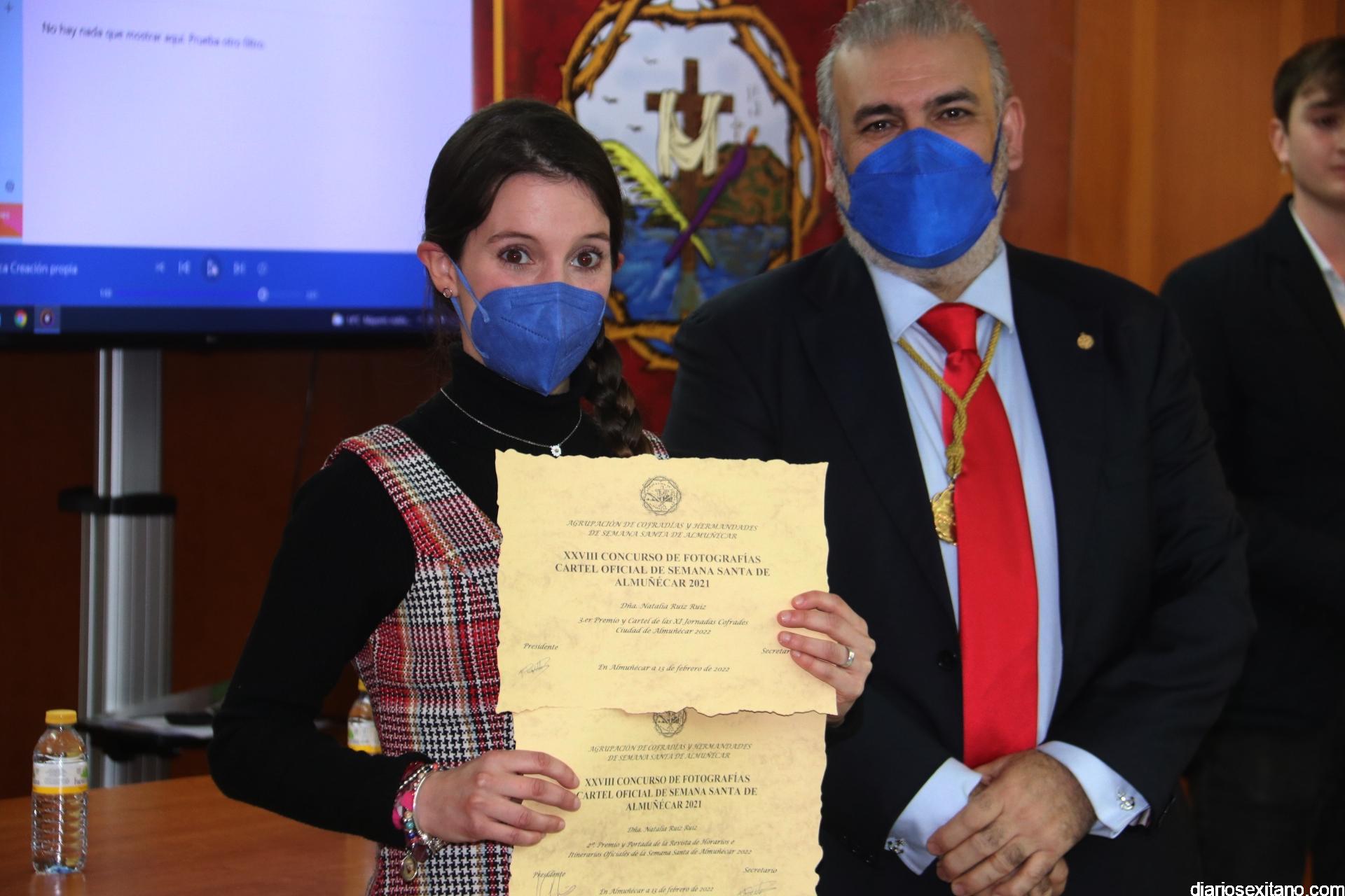 El cartel ha sido elegido por la Agrupación de Cofradías y Hermandades de Semana Santa de Almuñécar, tras un concurso celebrado al efecto y que ganó el fotógrafo sexitano, José Luis Martín Martos. Precisamente, tras la presentación del cartel oficial se hizo entrega de los premios del citado concurso, donde la joven almuñequera, Natalia Ruiz, fue galardonada con el segundo y tercer premio, y que han sido y serán portada para difundir éstas Jornadas Cofrades y el programa de mano de horarios e itinerarios de las cofradías y hermandades durante la Semana de Pasión.